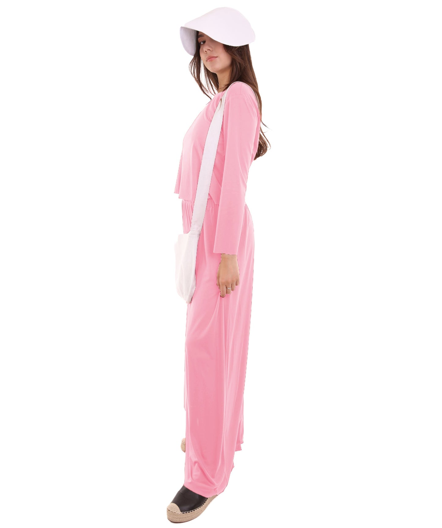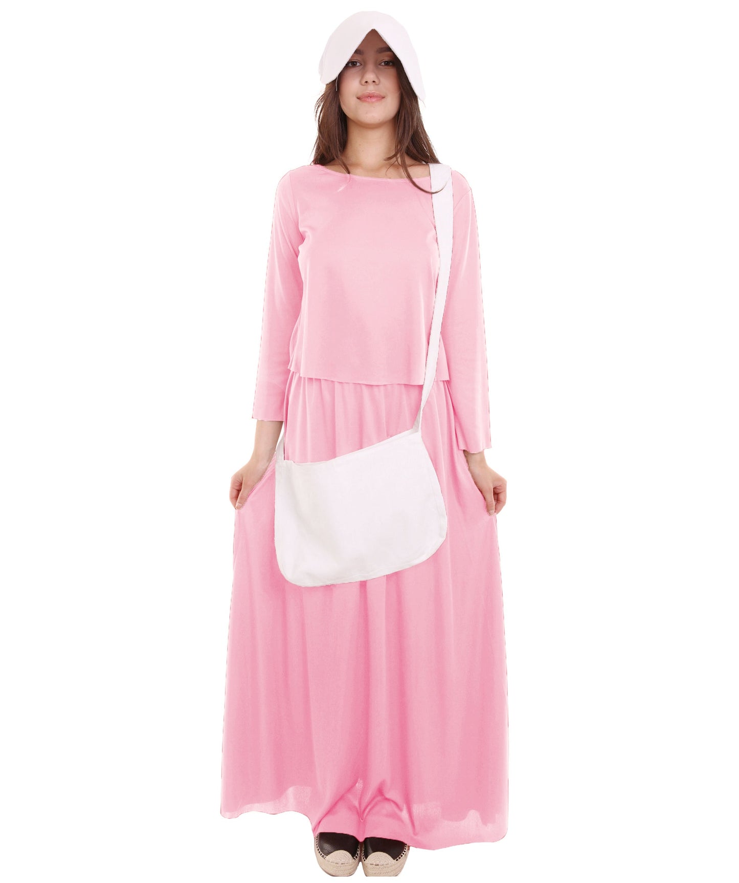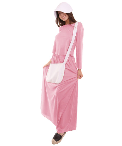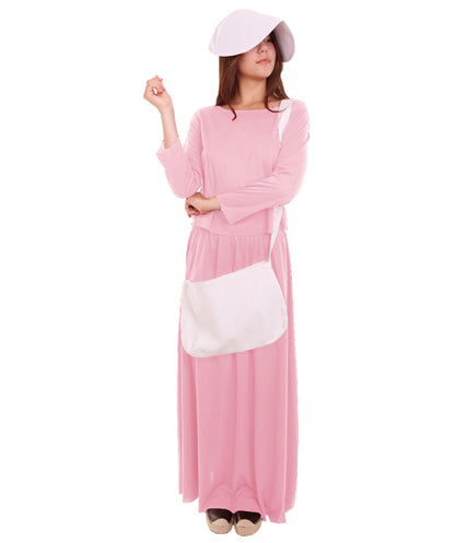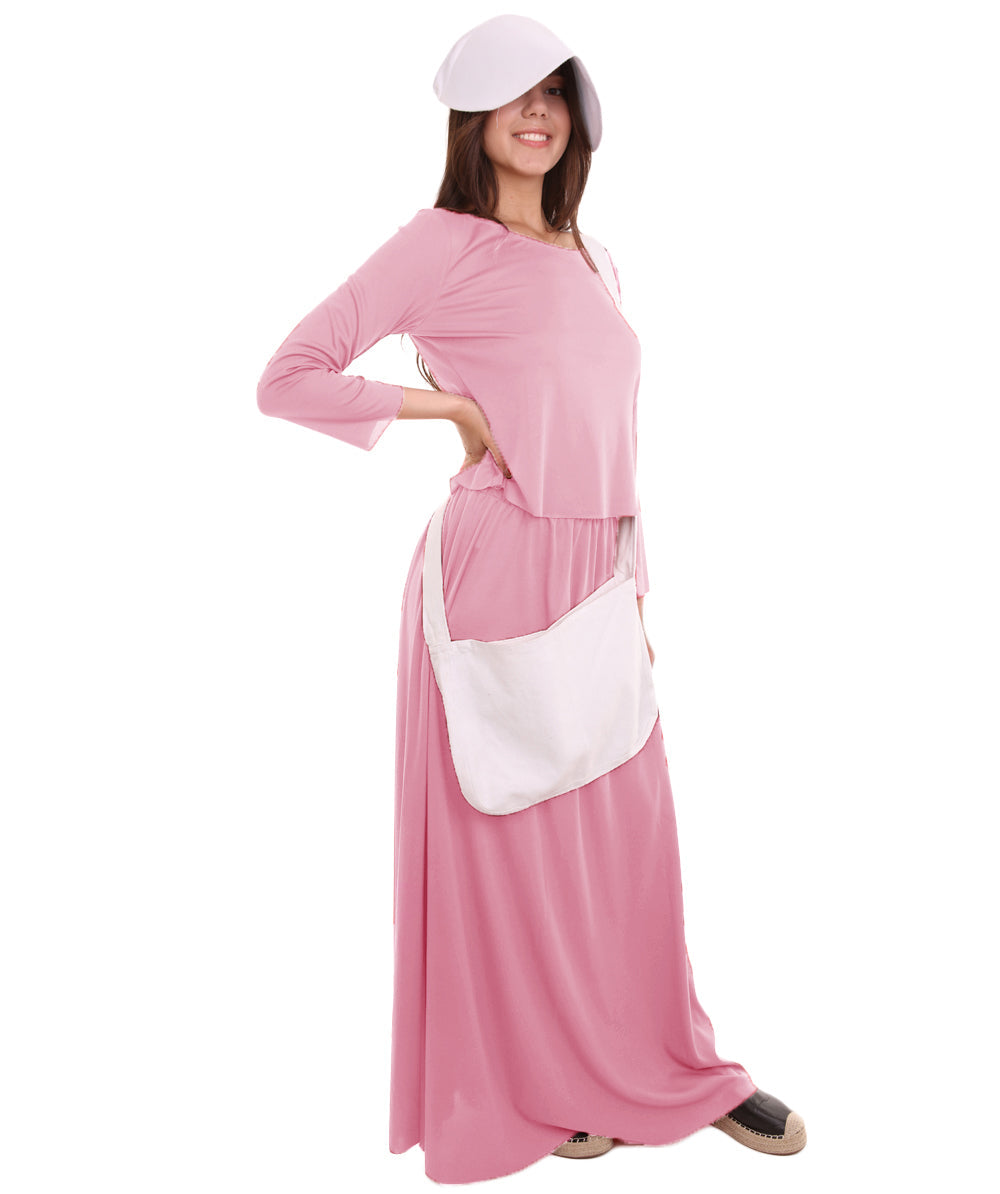 Women's Dress Handmaid Costume with Bag and Bonnet | Pink Fancy Costume