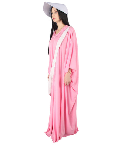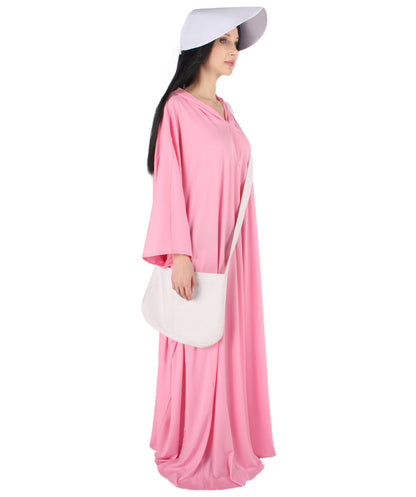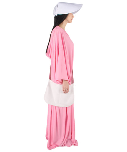 Women's Robe Handmaid with Bag and Bonnet Costume | Pink Fancy Costume