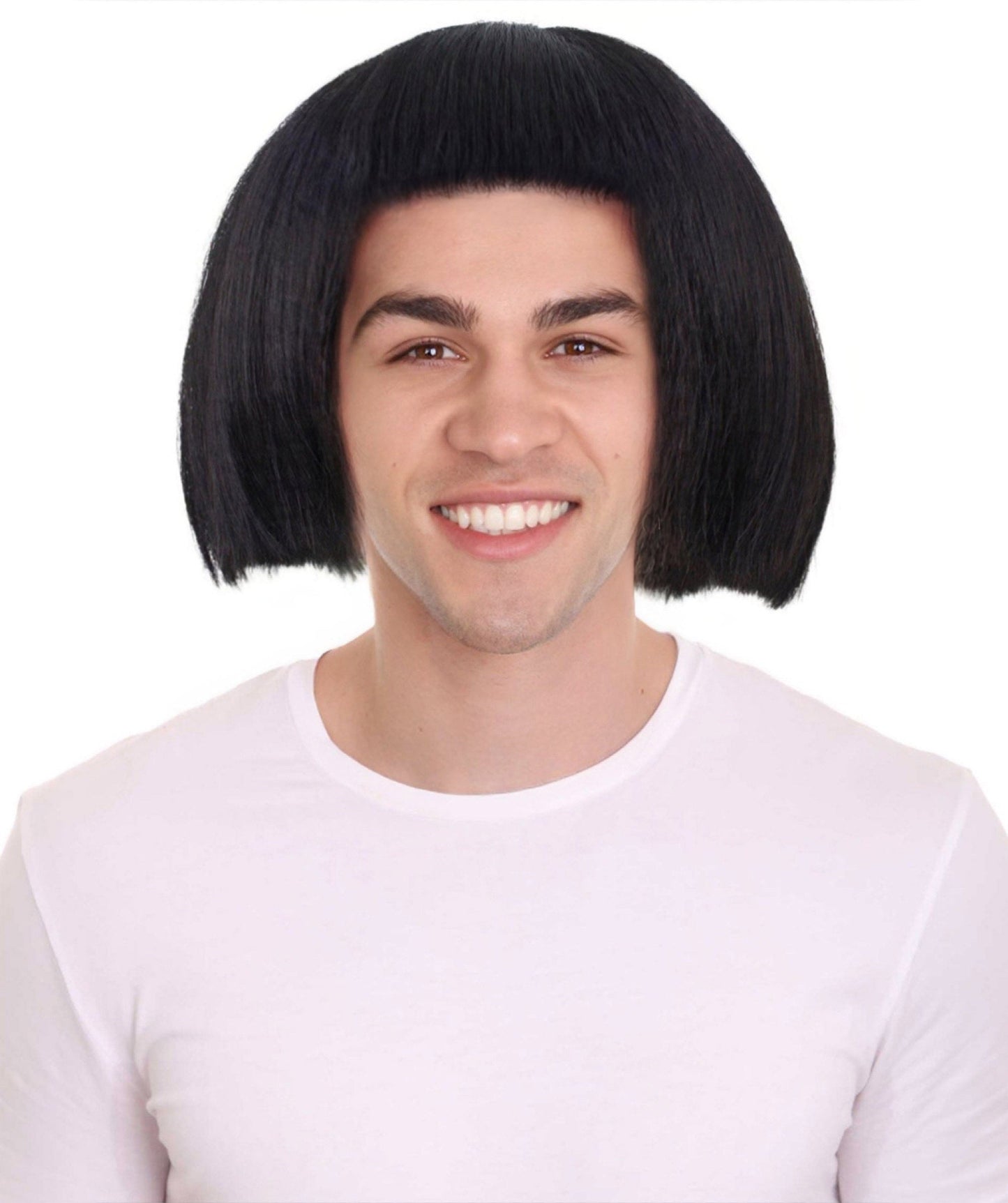 Men’s Children’s Book Animated Movie Villian Black Bob Wig, Perfect for Halloween, Flame-retardant Synthetic Fiber