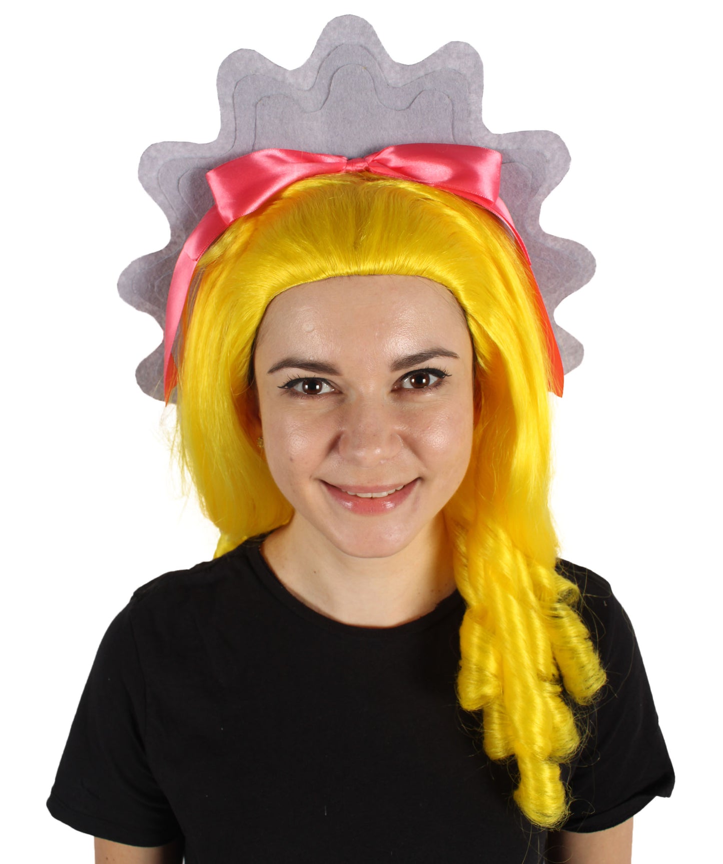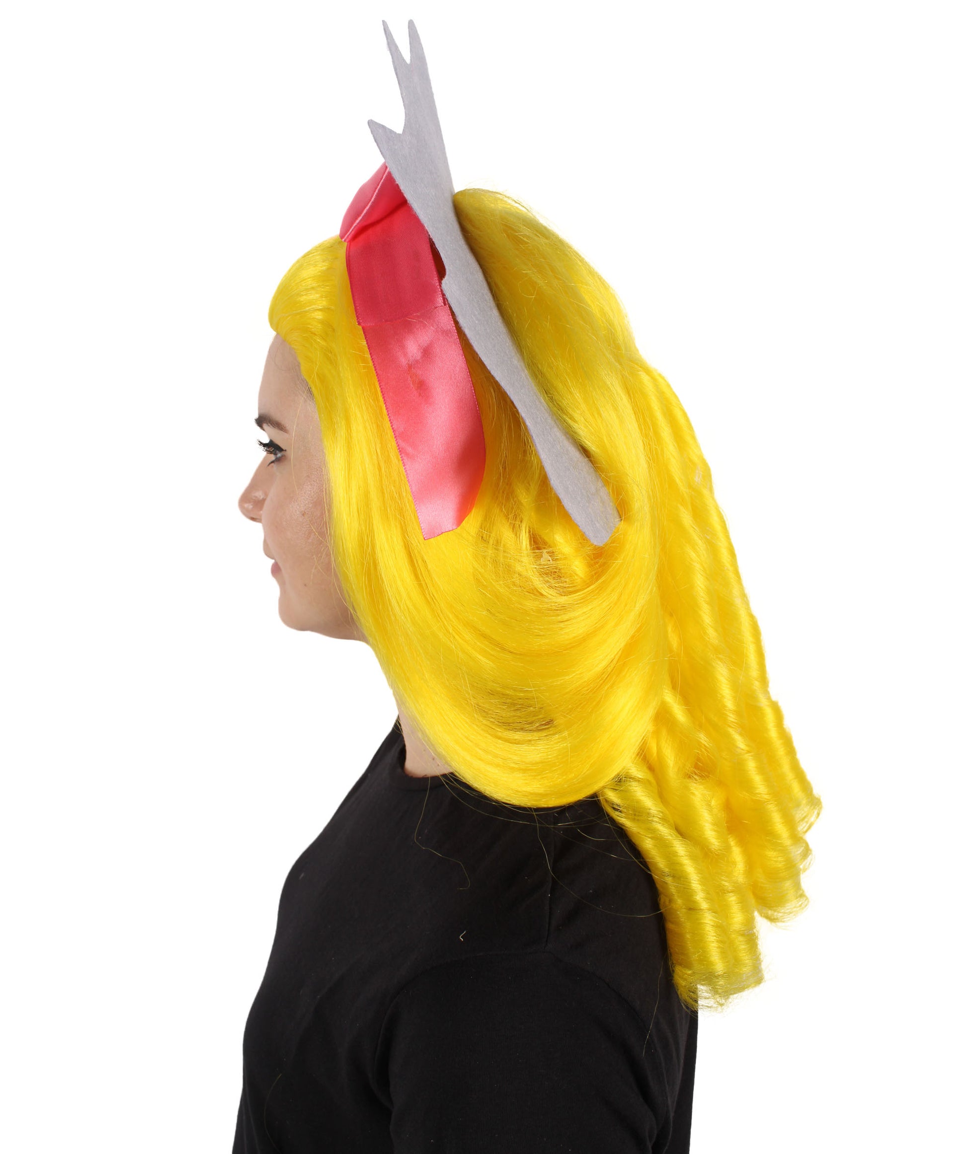 Our Pouf Wig is a perfect piece for creating a dramatic and sophisticated look. It is a medium-length yellow base Pouf Wig where something like a crown is added for extra volume. You can complete your overall look with this Pouf Wig and it will give you a chance to get so many good compliments.