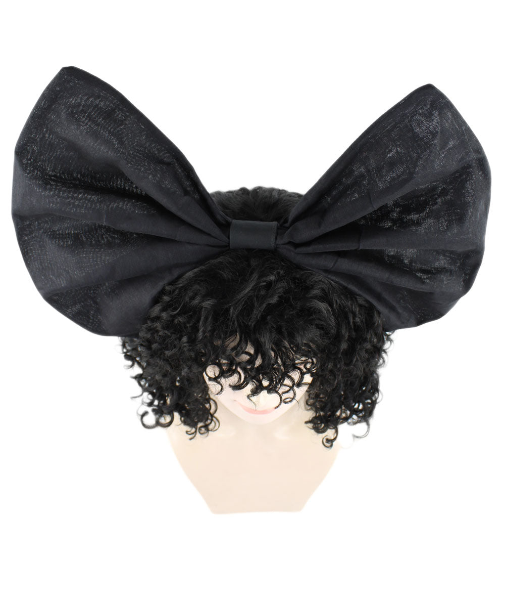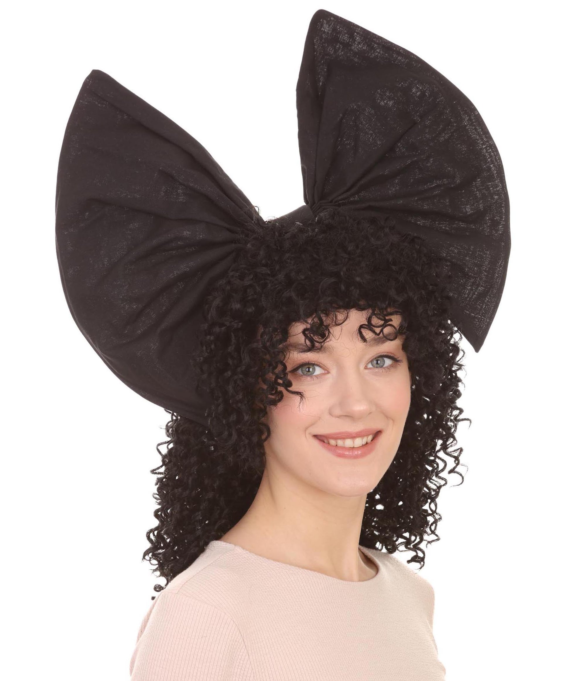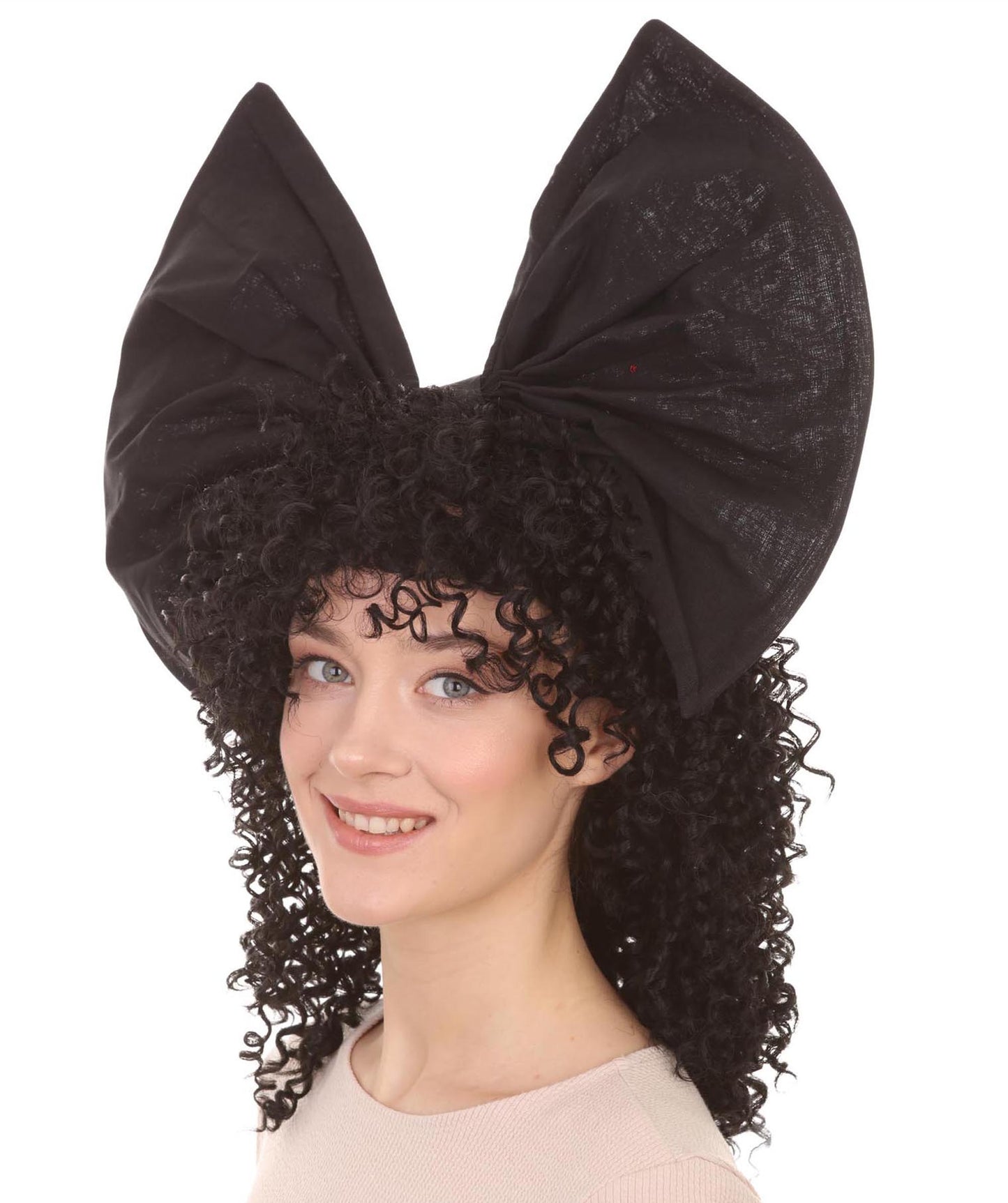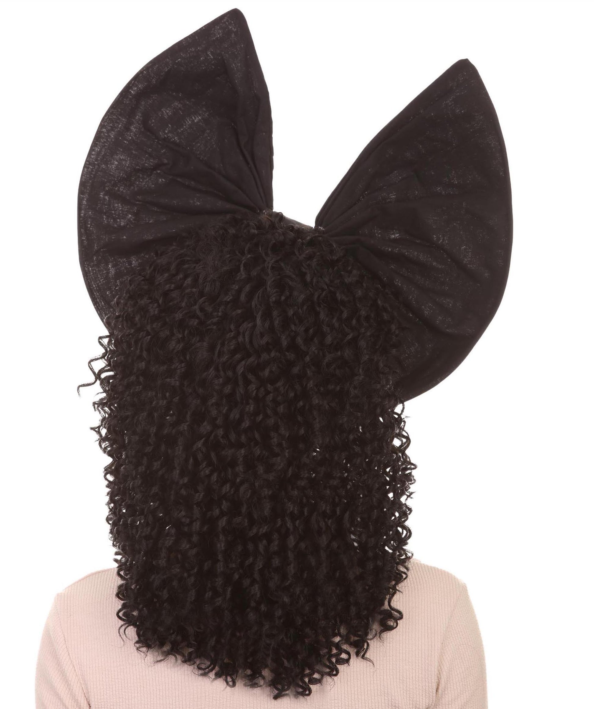 Australian Singer Curly Womens Wig | Large Black Bow Halloween Wig | Premium Breathable Capless Cap