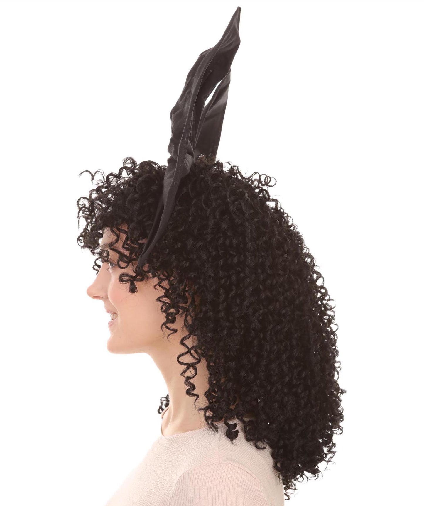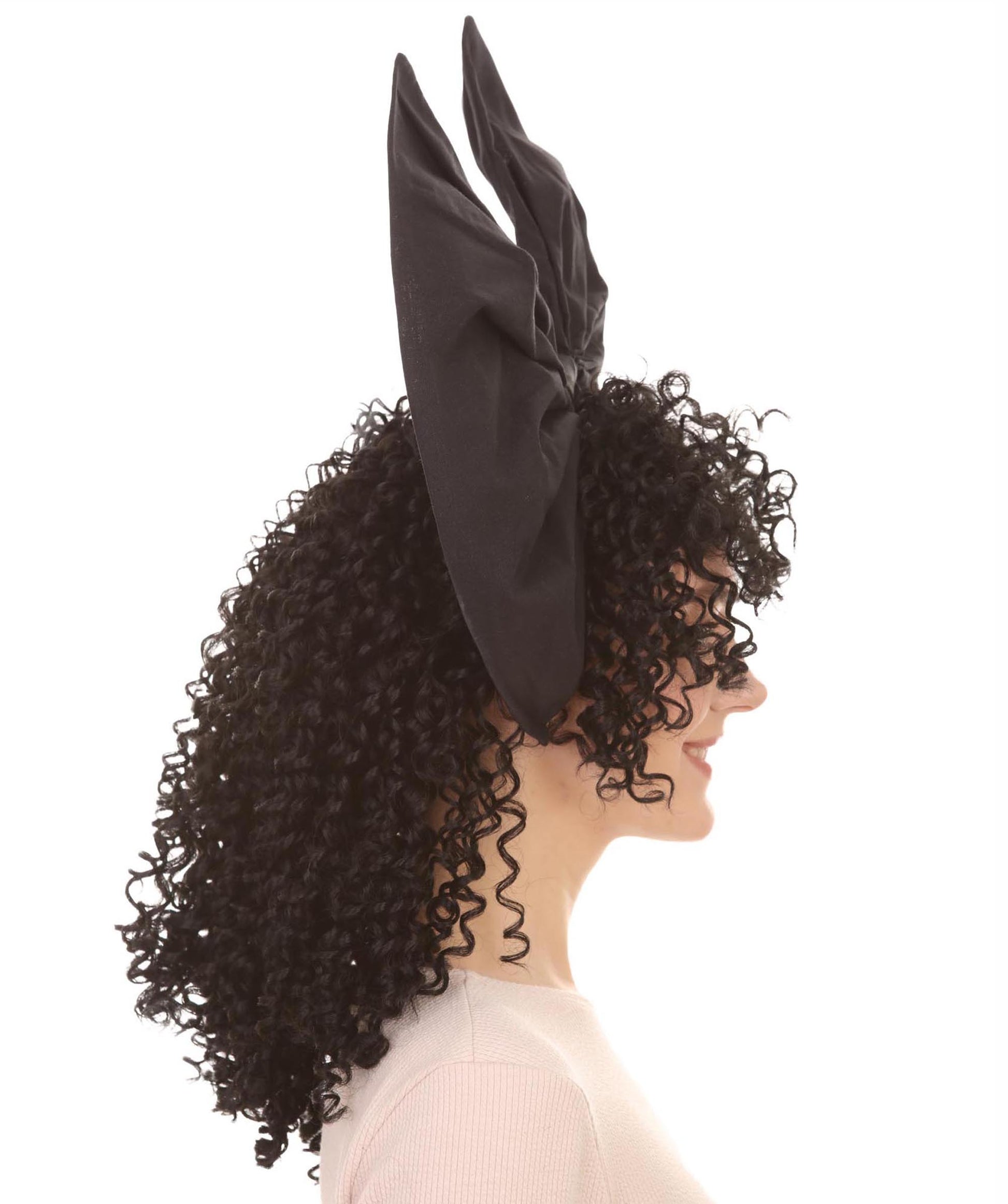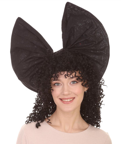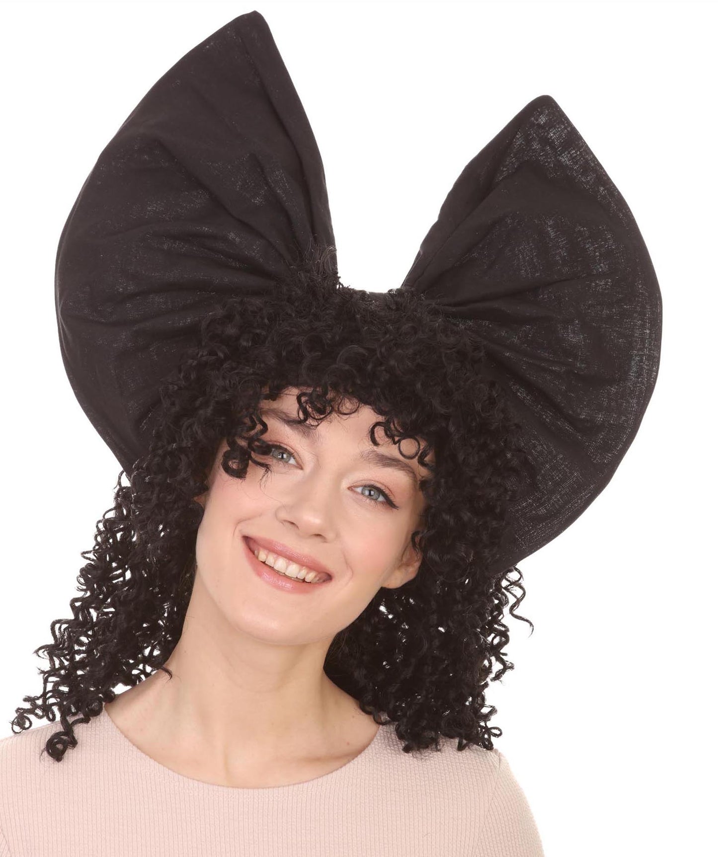 Australian Singer Curly Womens Wig | Large Black Bow Halloween Wig | Premium Breathable Capless Cap
