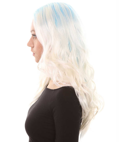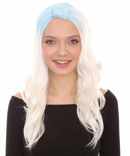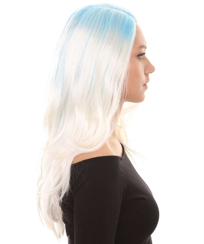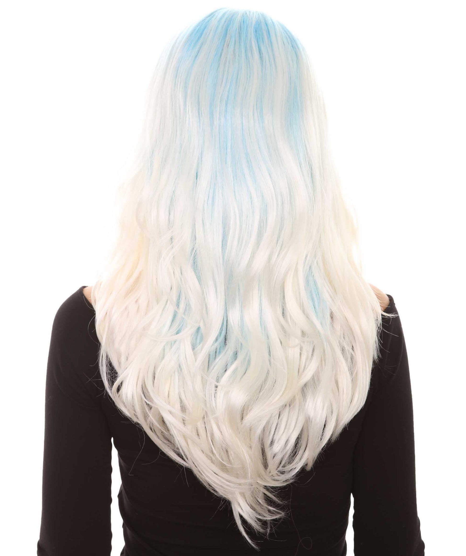 Womens Long Wavy Two-tone Wig | Blue & White Colorful Wigs | Premium Breathable Capless Cap
