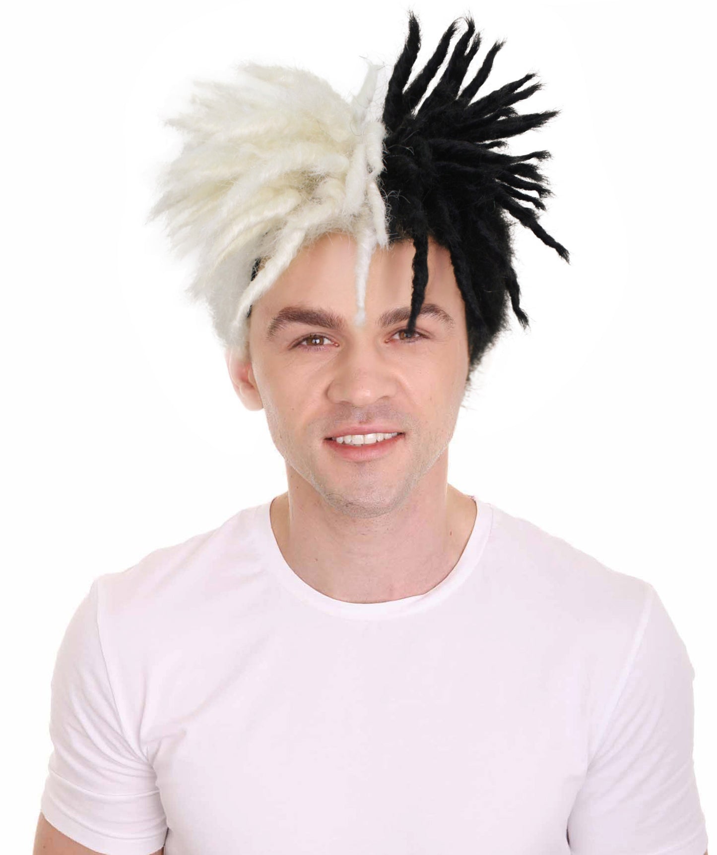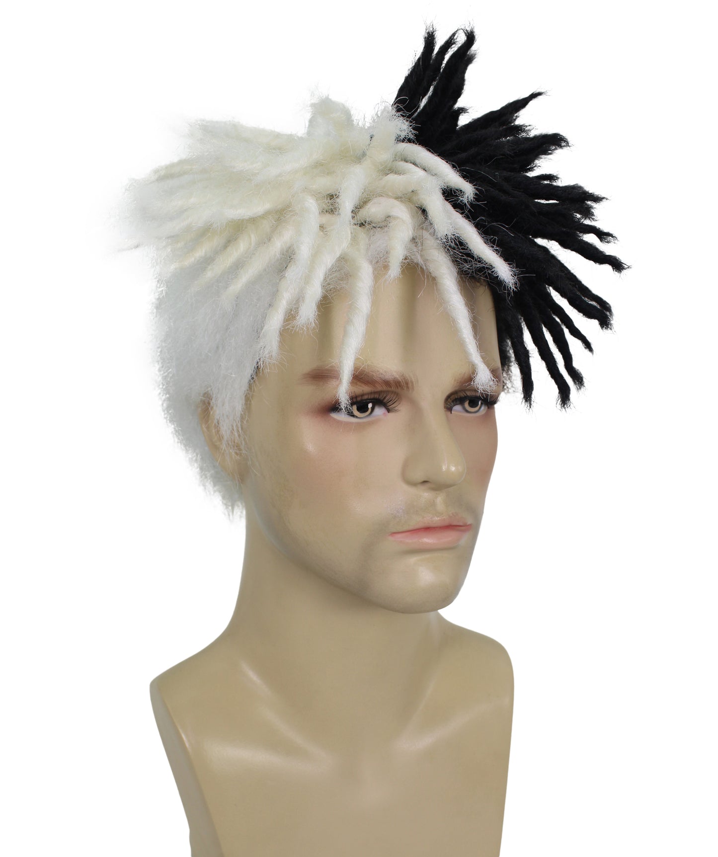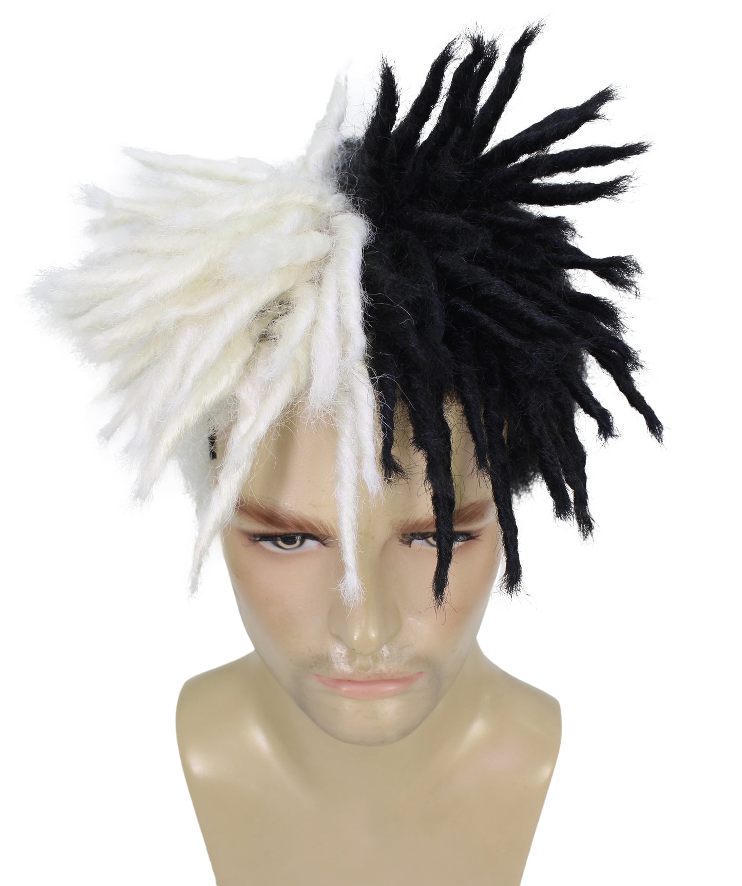 HPO Men’s American Rapper Half-colored Multiple Colors Dreadlock Updo Wig, Non-flammable Synthetic Fiber Wig