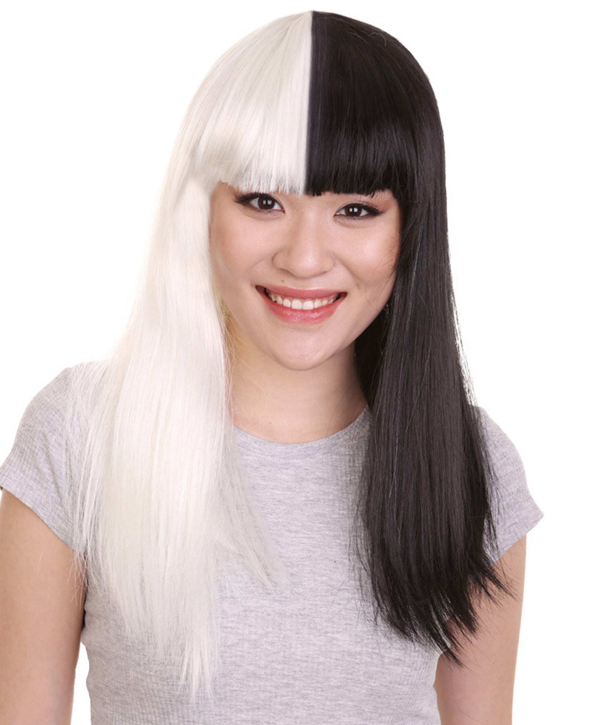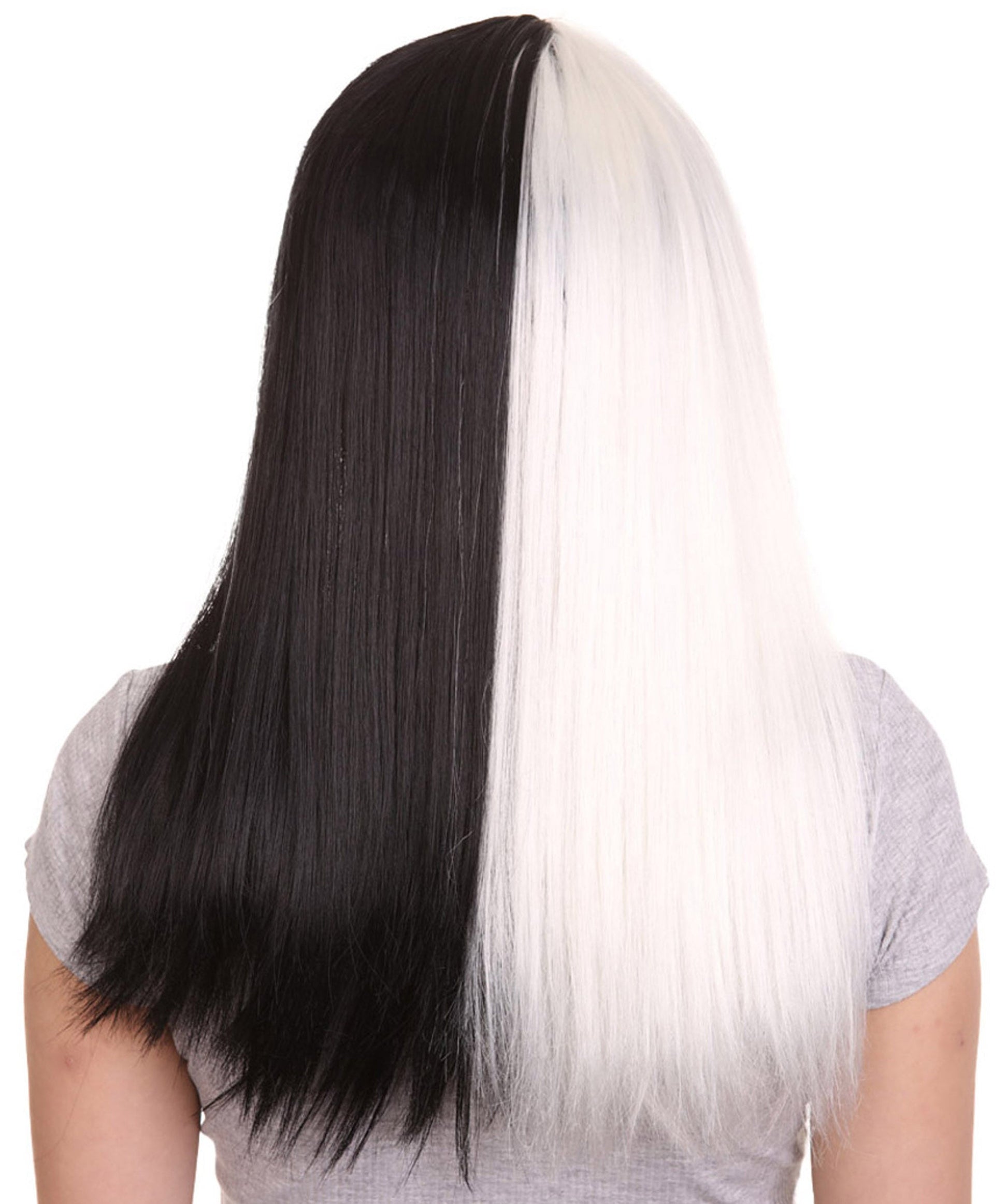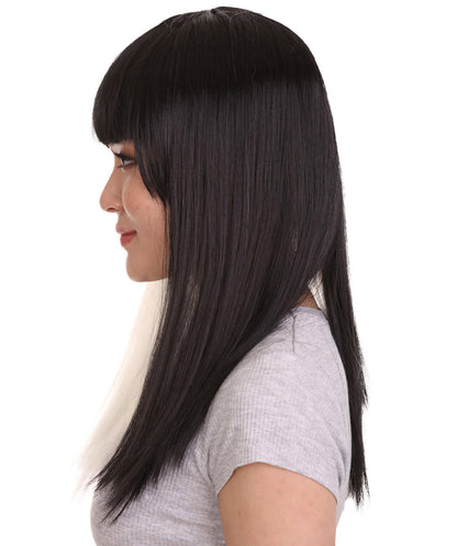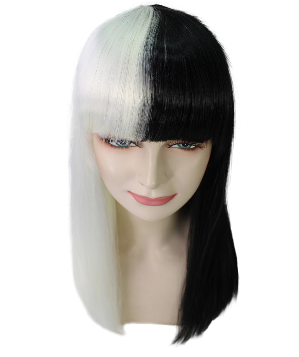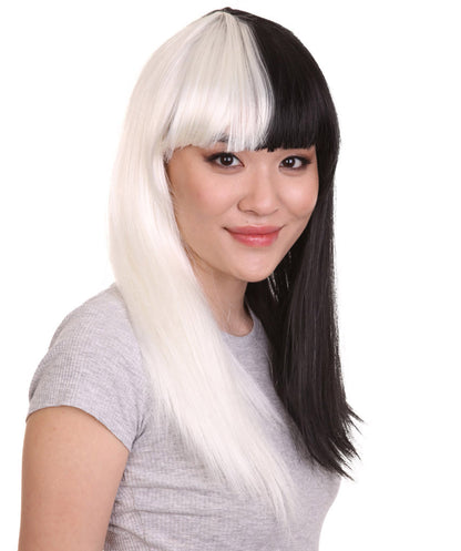 Black and White Long Womens Wig | Half And Half Fancy Halloween Wig | Premium Breathable Capless Cap