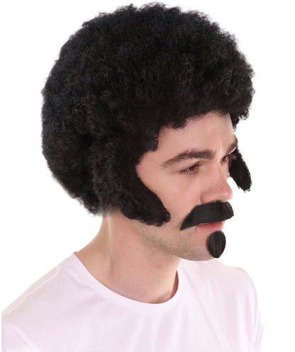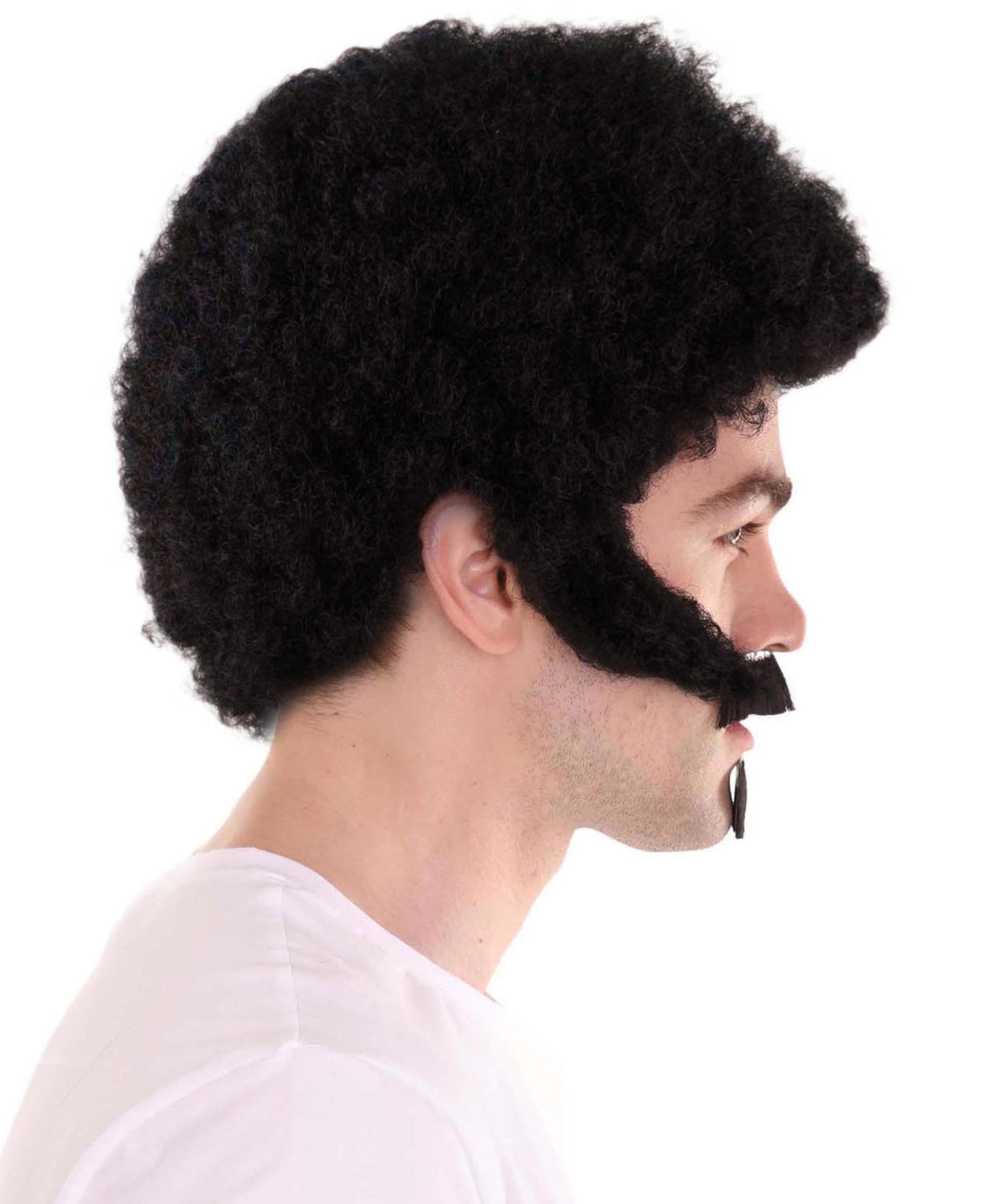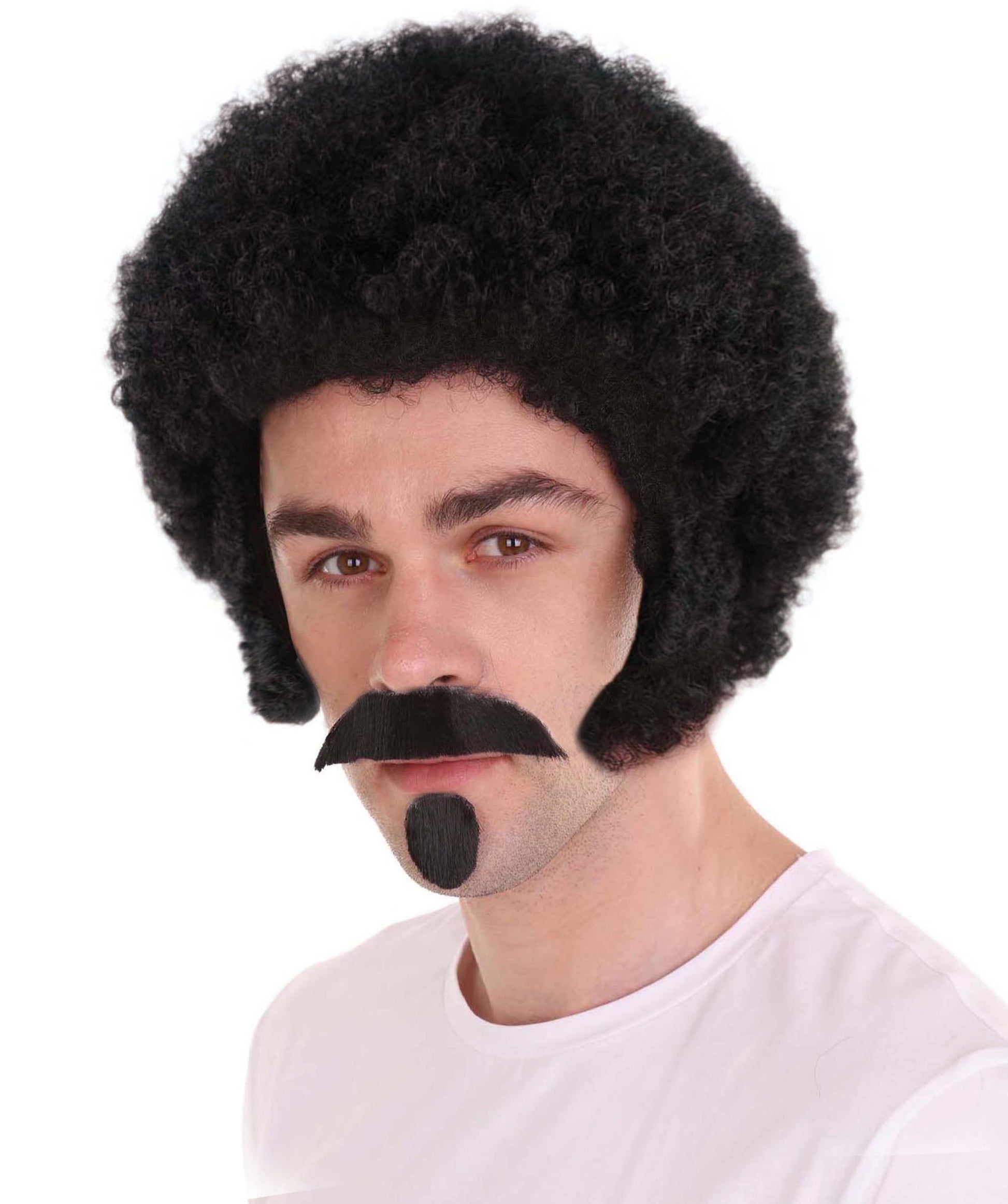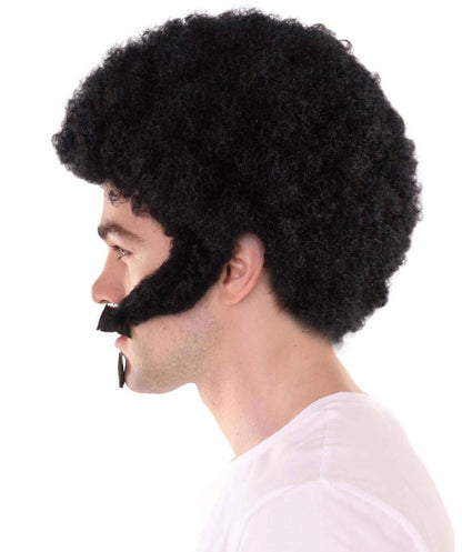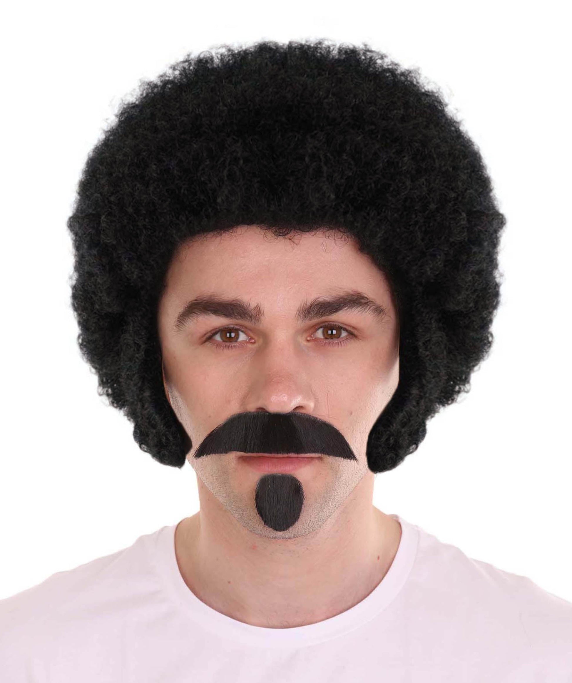 Rapper Men's with Mustache & Chin Patch | Black Halloween Wig | Premium Breathable Capless Cap