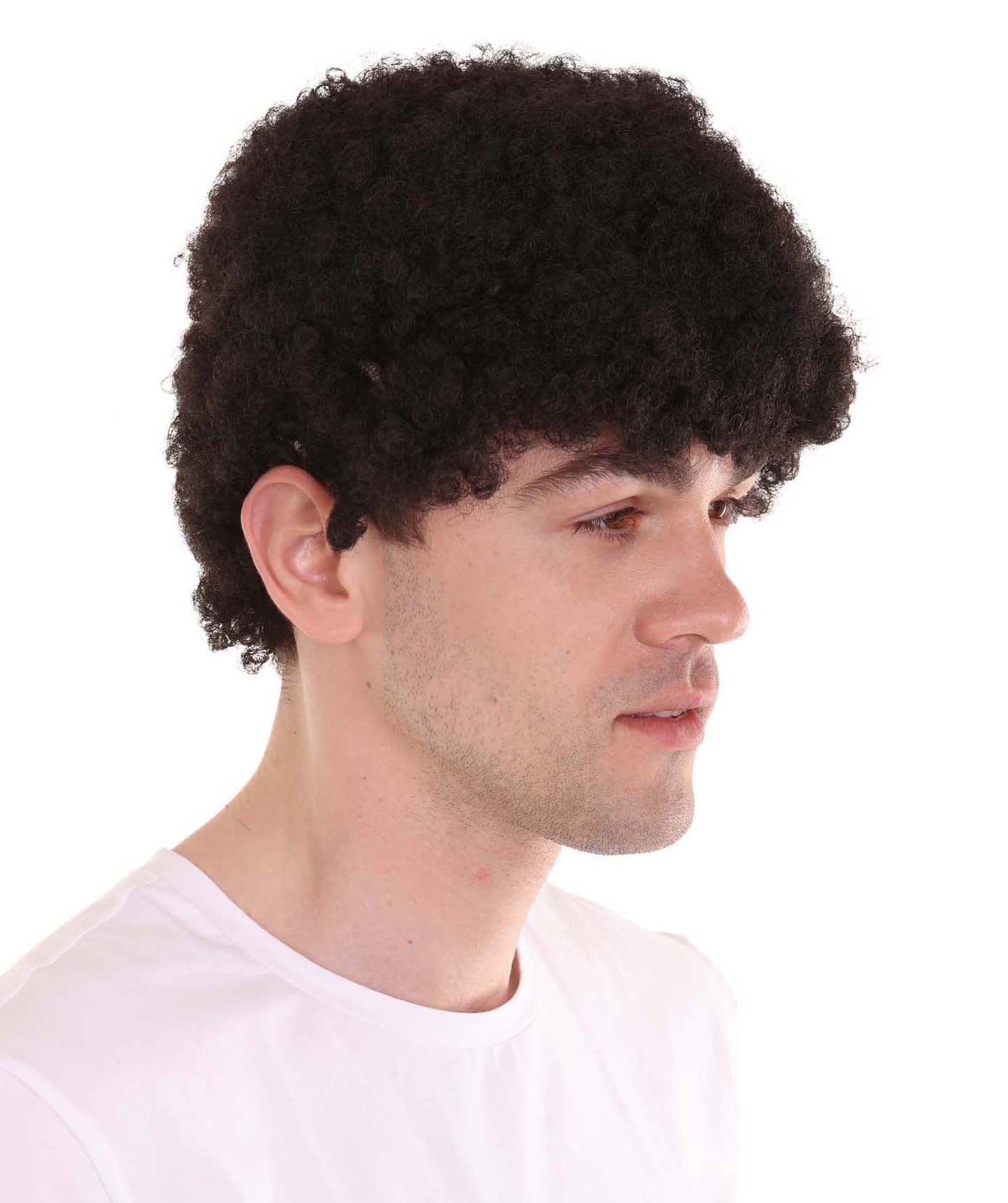 Celebrate the 60s or 70s in style in our afro wig. Both male and female club goers in the mid 1960s and early 1970s immortalized this hairdo at nightclubs and house parties. Now you too can capture the look with one of our wigs, especially when paired with one of our 70s style costumes like our gold disco jumpsuit. All that's left for you to is learn to 'Bump' or 'Hustle'