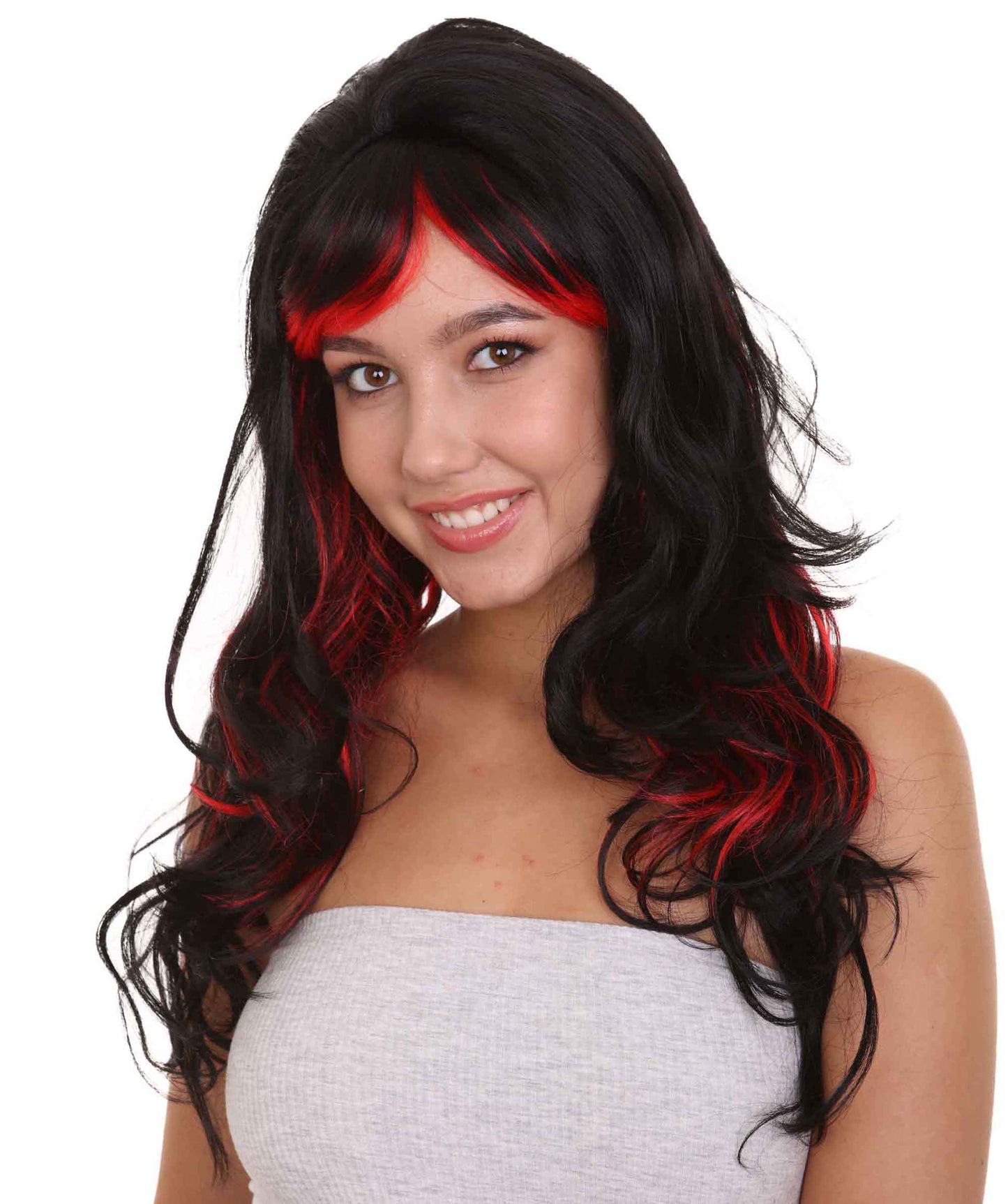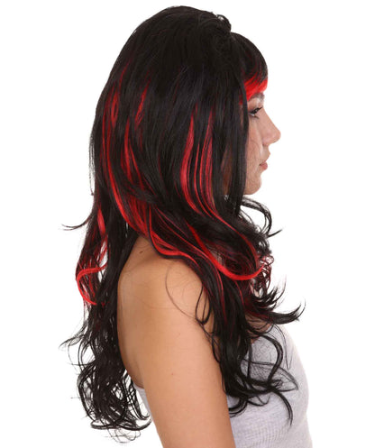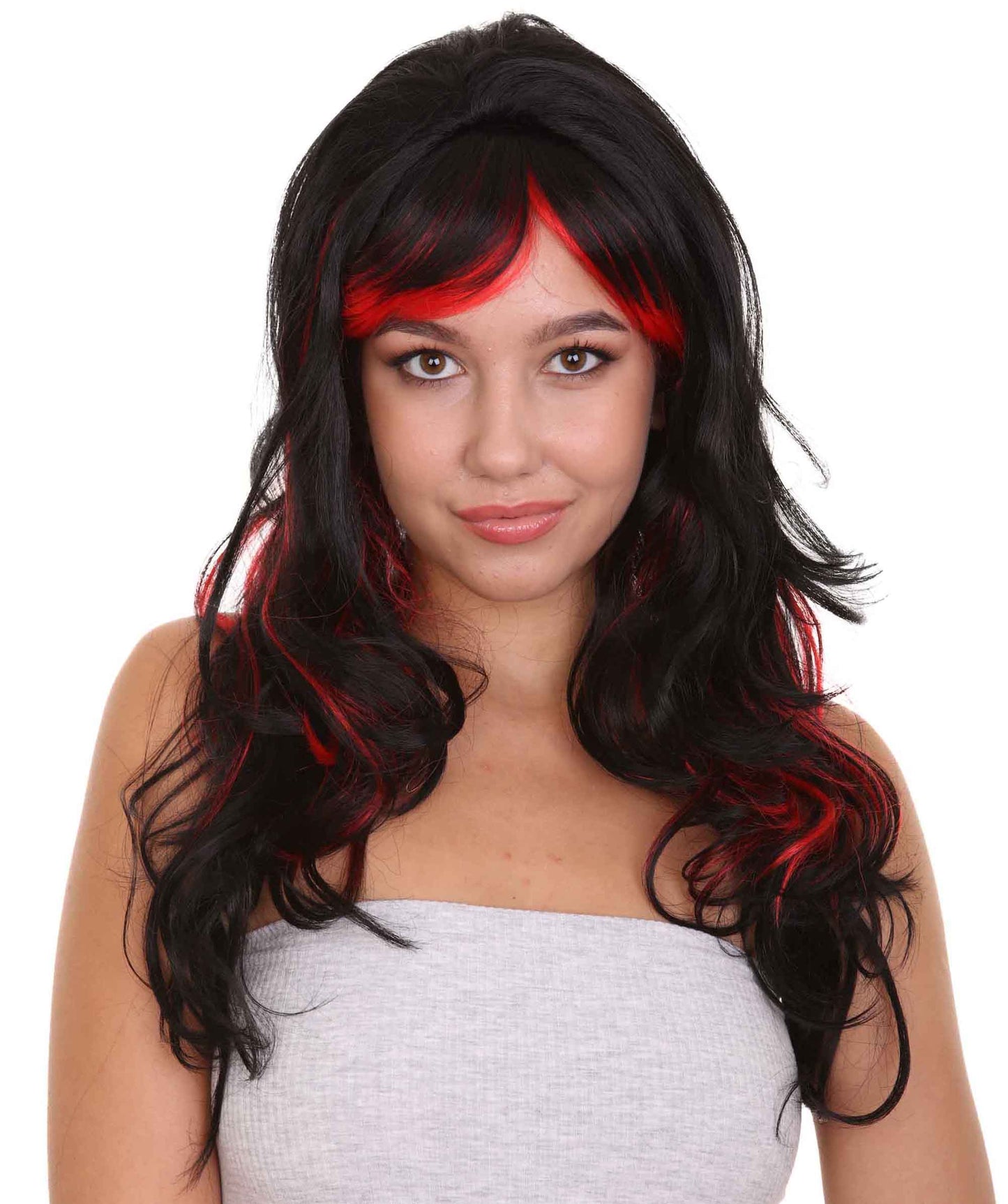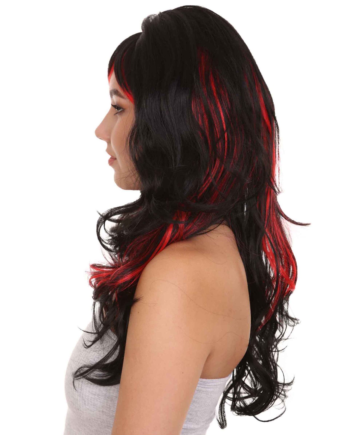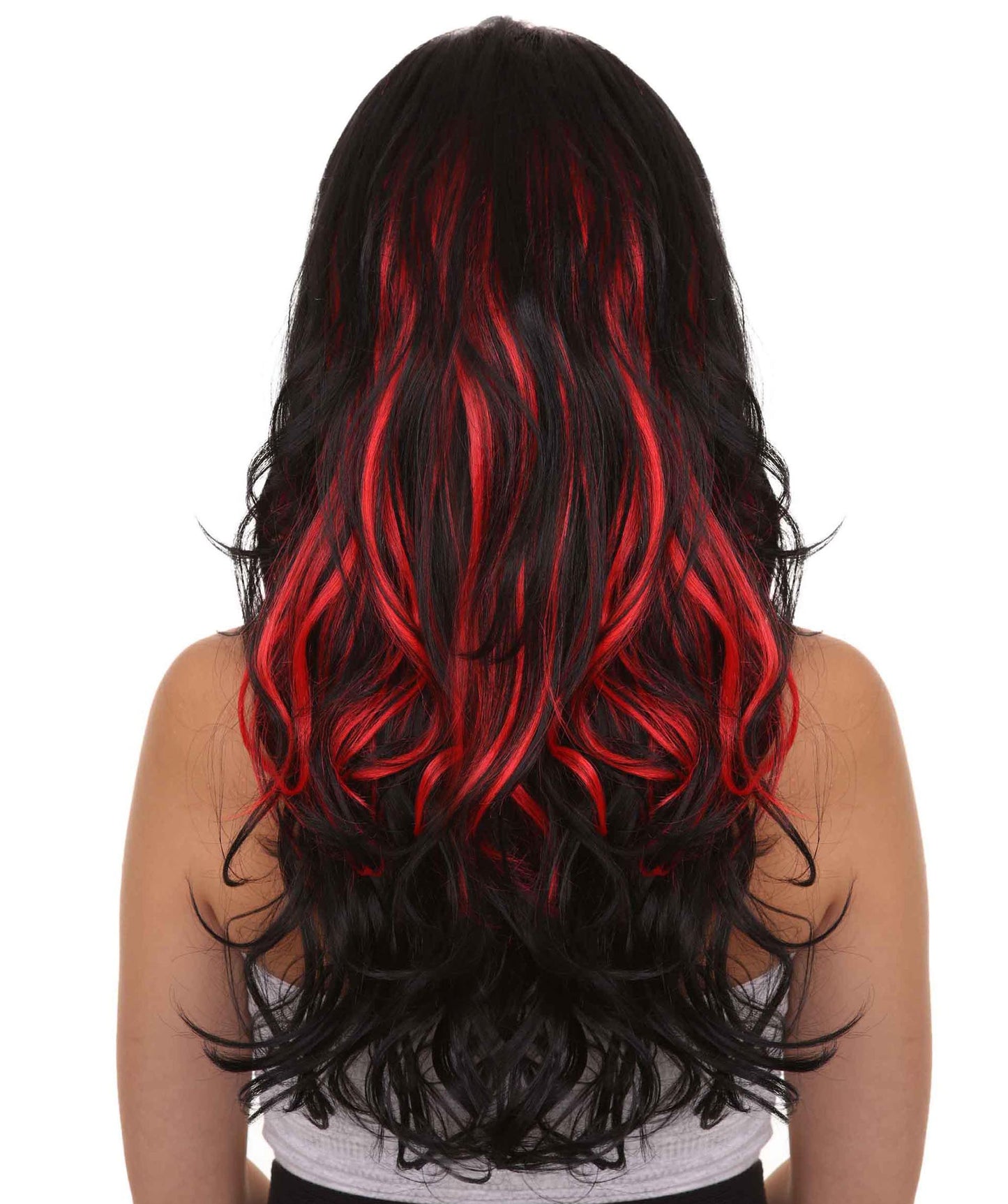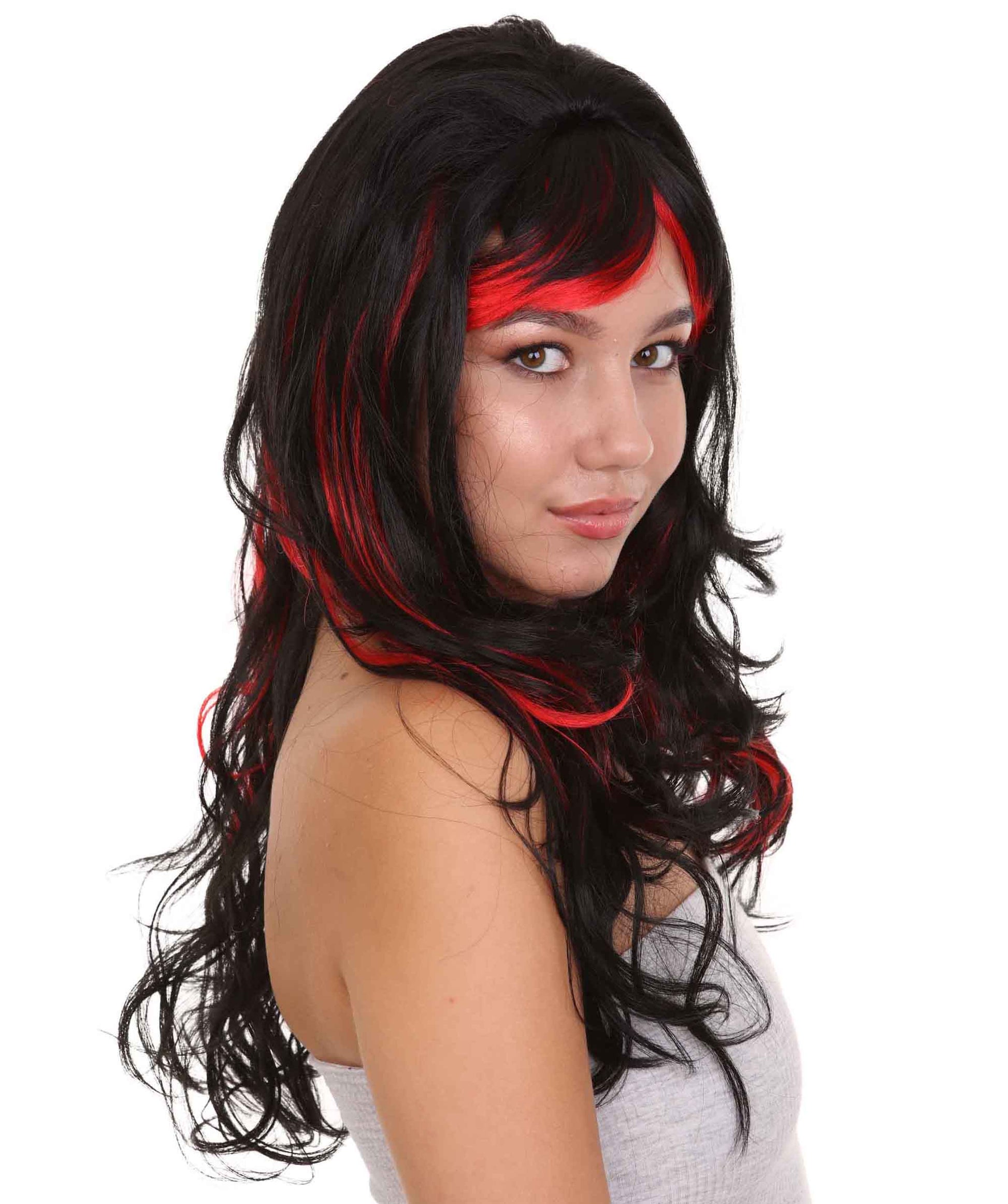 Black & Red Seduction Womens Wig | Long Curly Fashion Fancy Halloween Wig | Premium Breathable Capless Cap