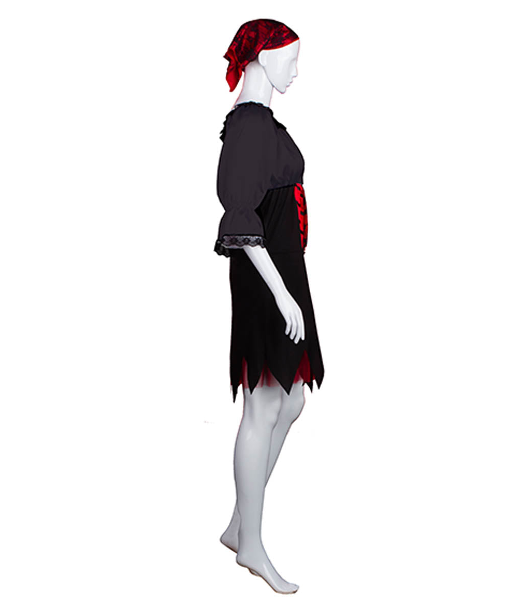 Prepare to sail the treacherous seas in style with our Black Pirate Costume, specially designed for Halloween and cosplay. Unleash your inner pirate temptress and captivate all who cross your path with this captivating ensemble, featuring a sultry dress and a head scarf.