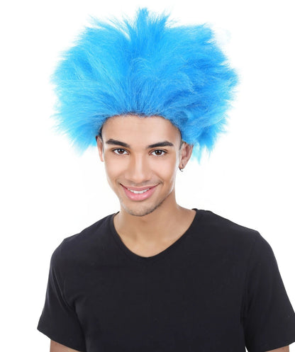 HPO Men Blue Wig Spiky Hair perfect for Halloween | Premium Breathable Capless Cap