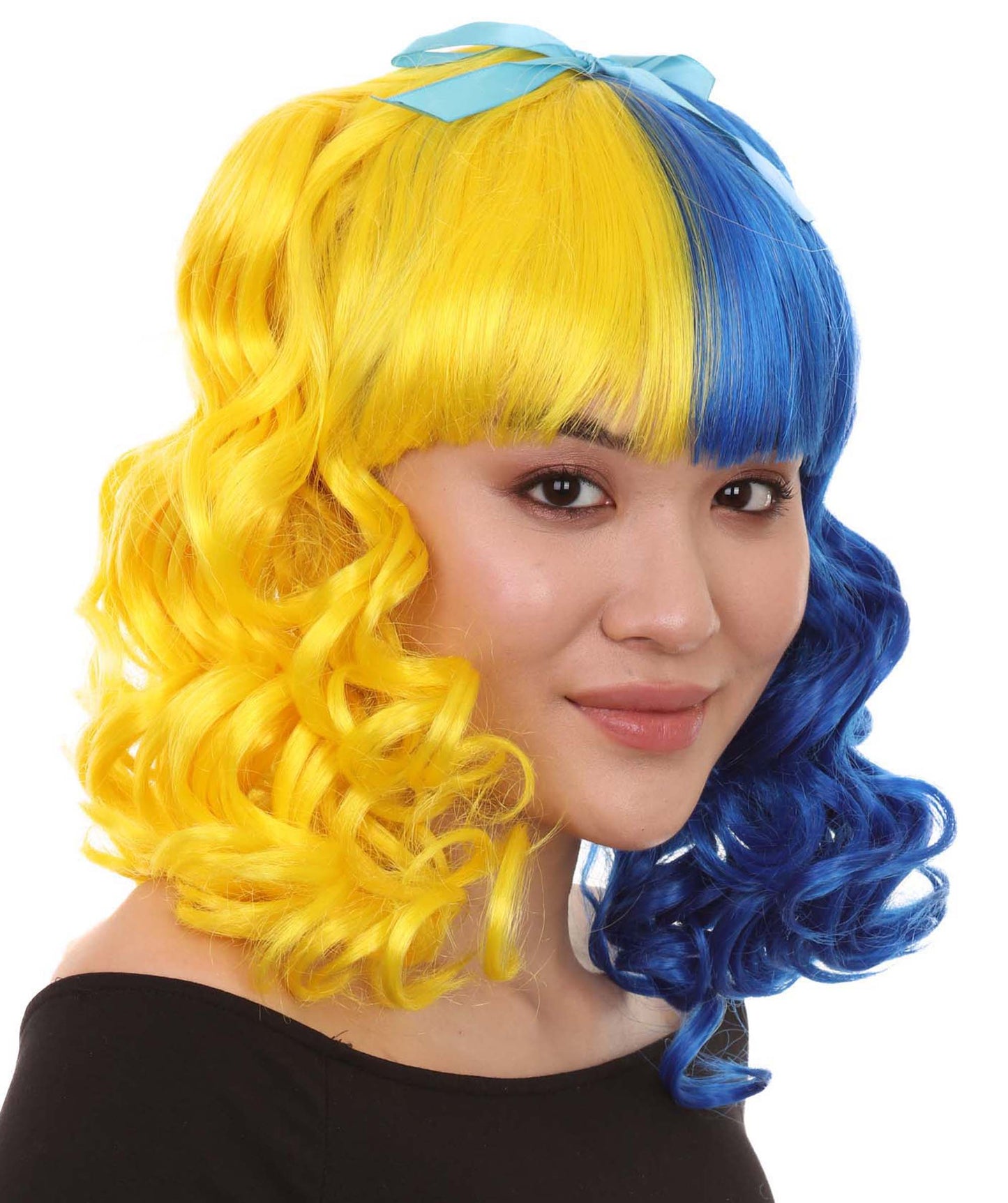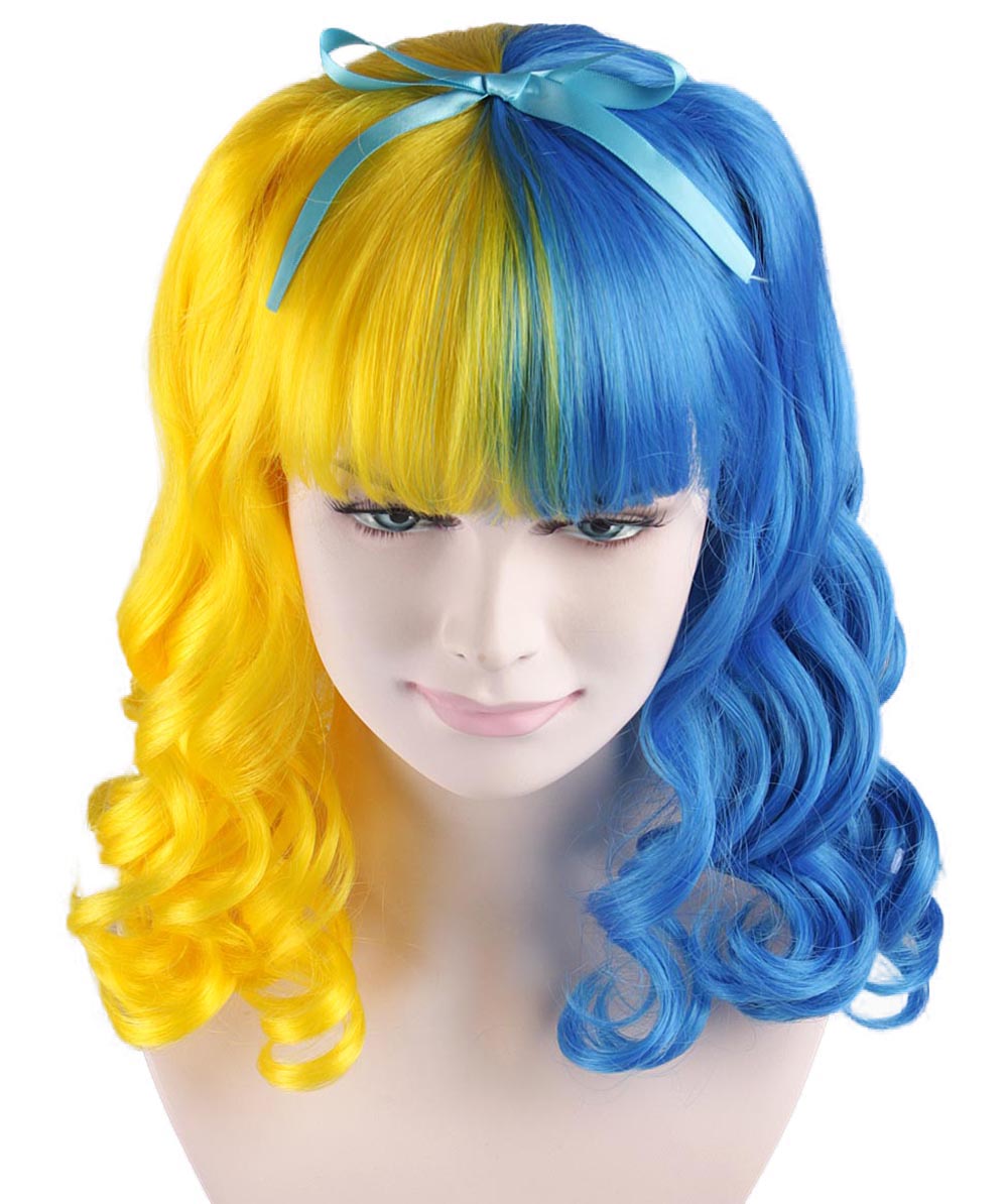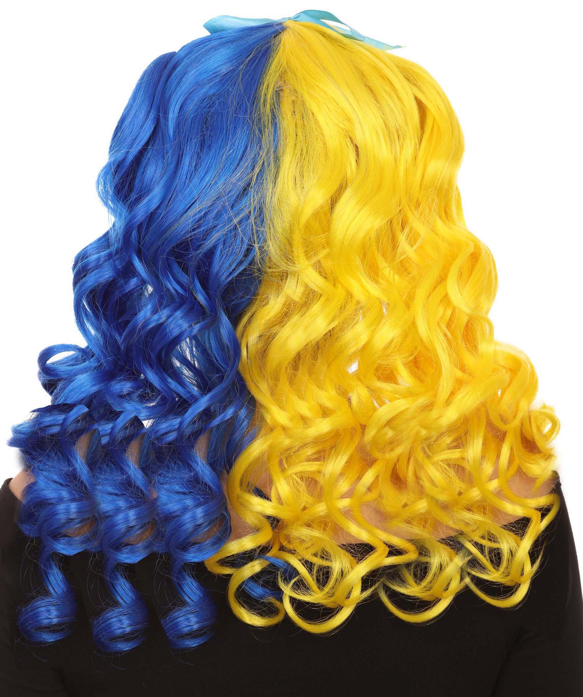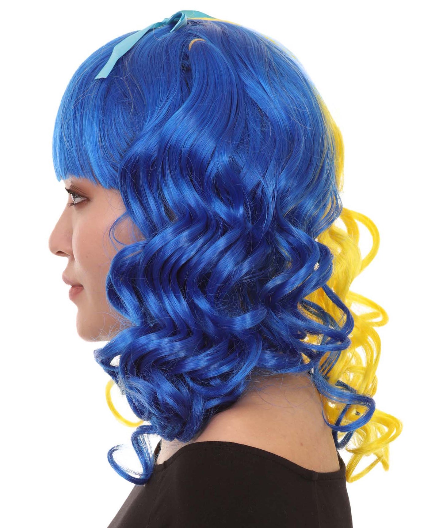 Bright Night Wig | Blue Yellow Curly Halloween Wig | Premium Breathable Capless Cap
