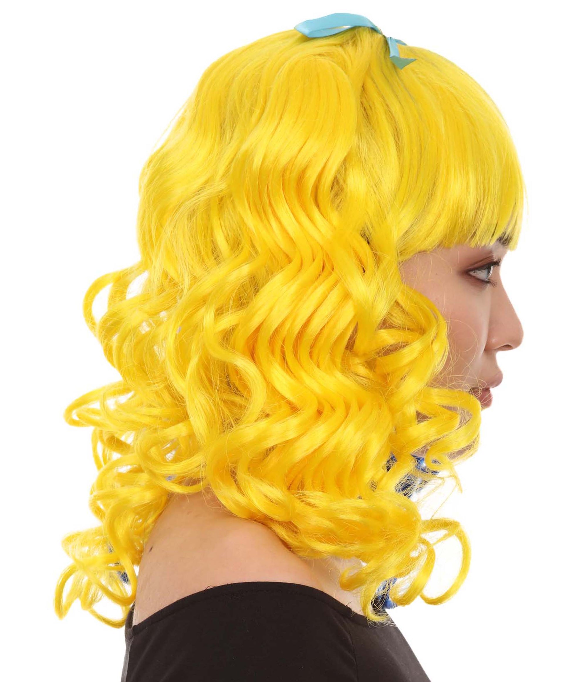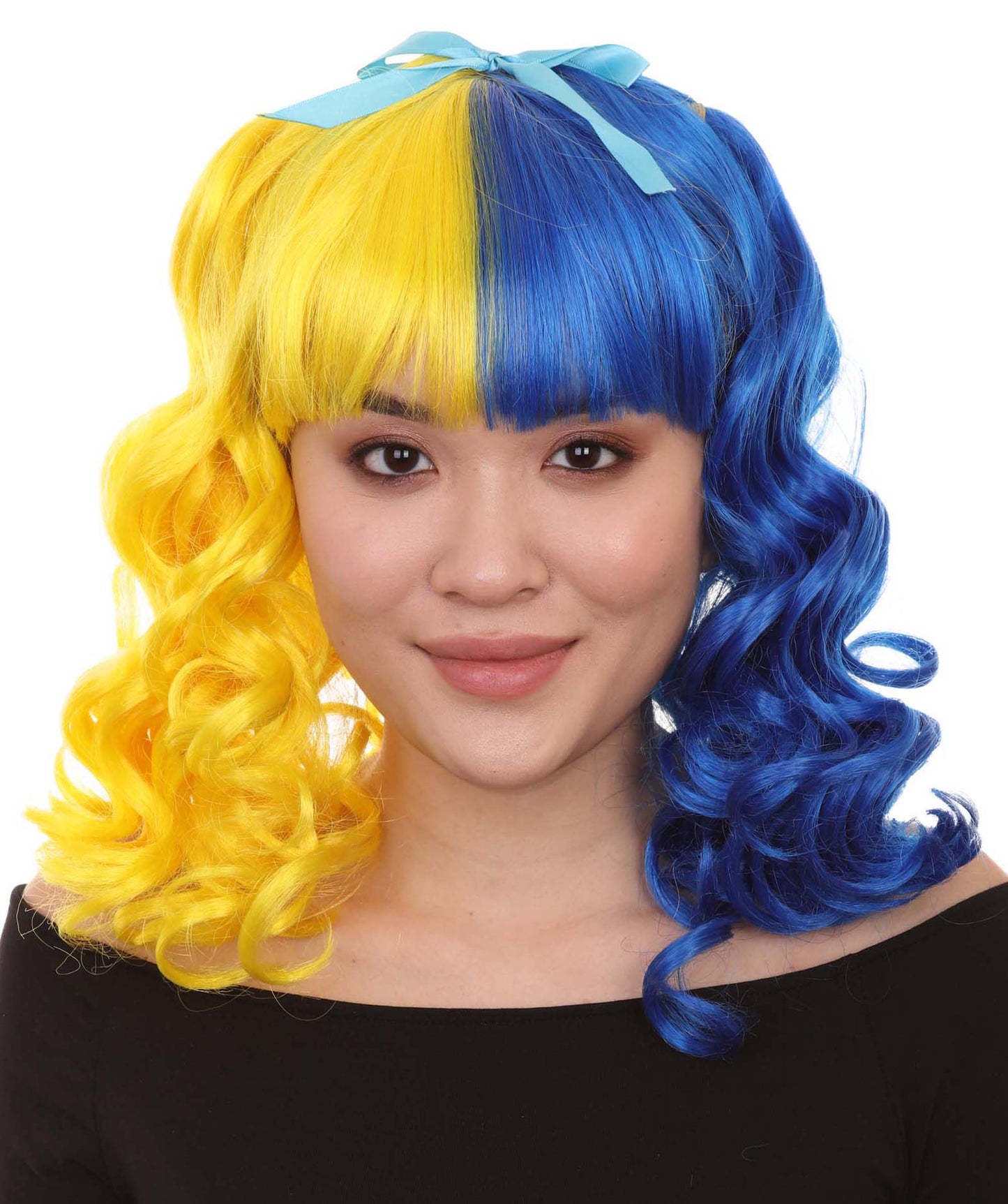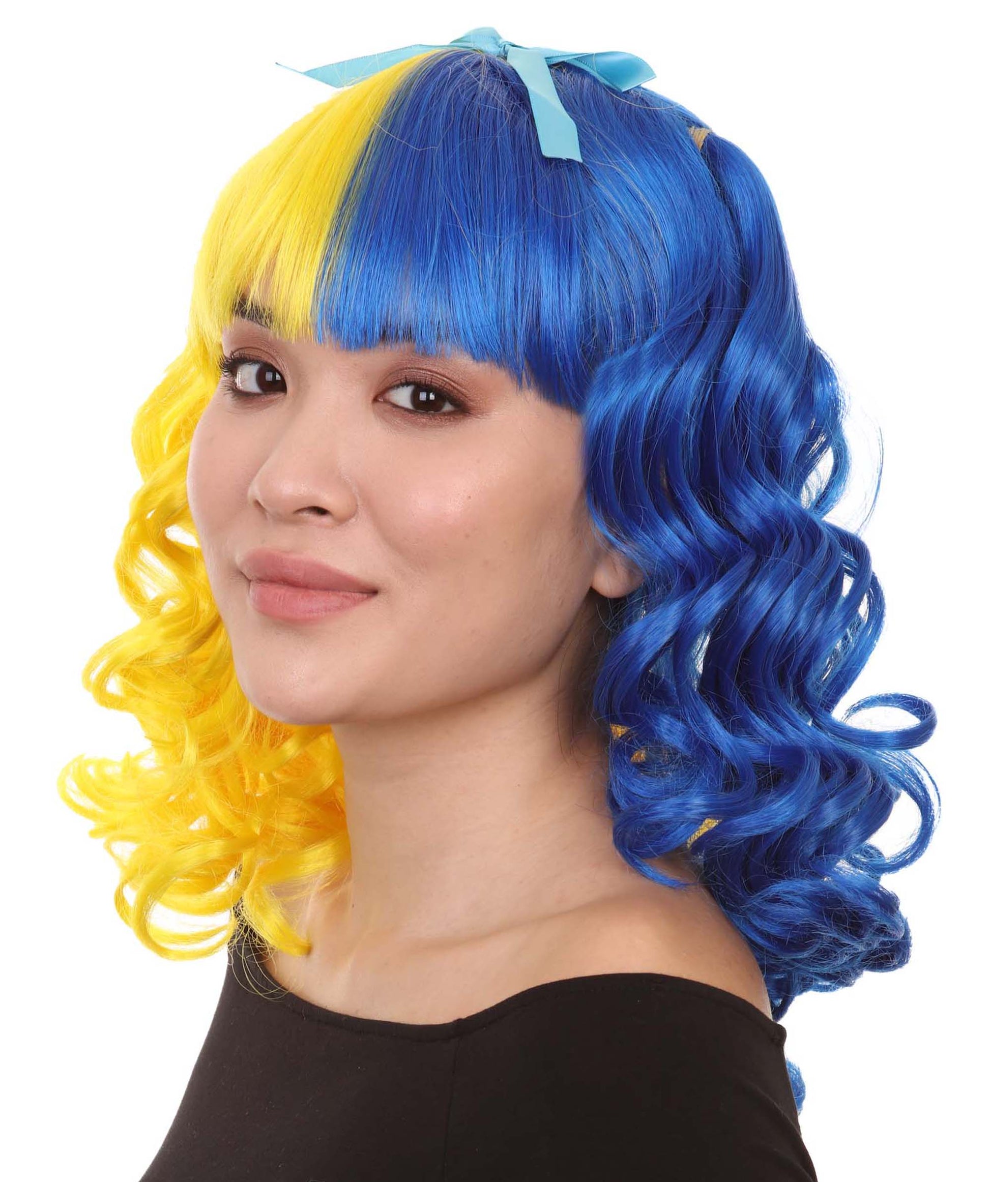Bright Night Wig | Blue Yellow Curly Halloween Wig | Premium Breathable Capless Cap