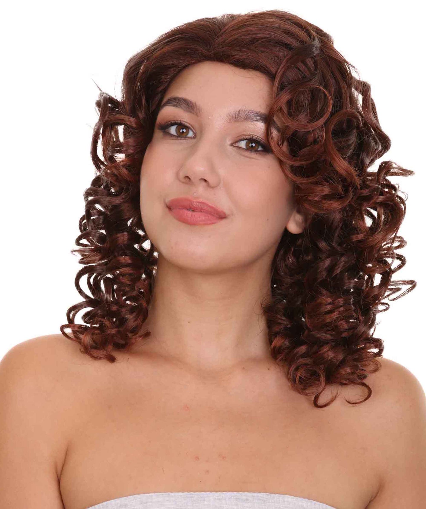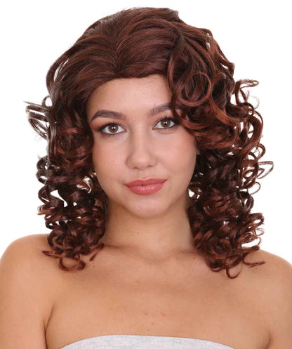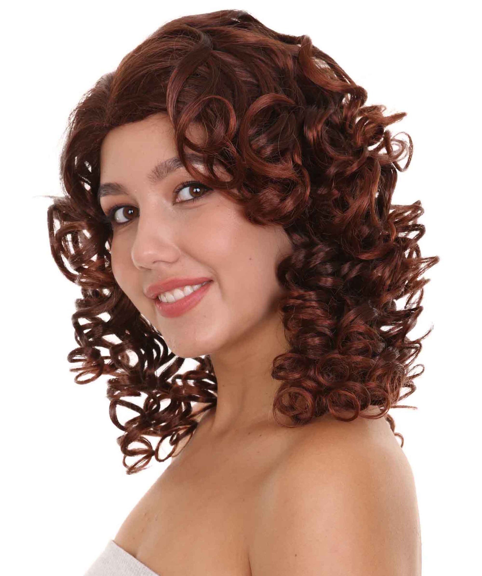 Dancing Queen Womens Wig | Brown Curly Character Fancy Halloween Wig | Premium Breathable Capless Cap