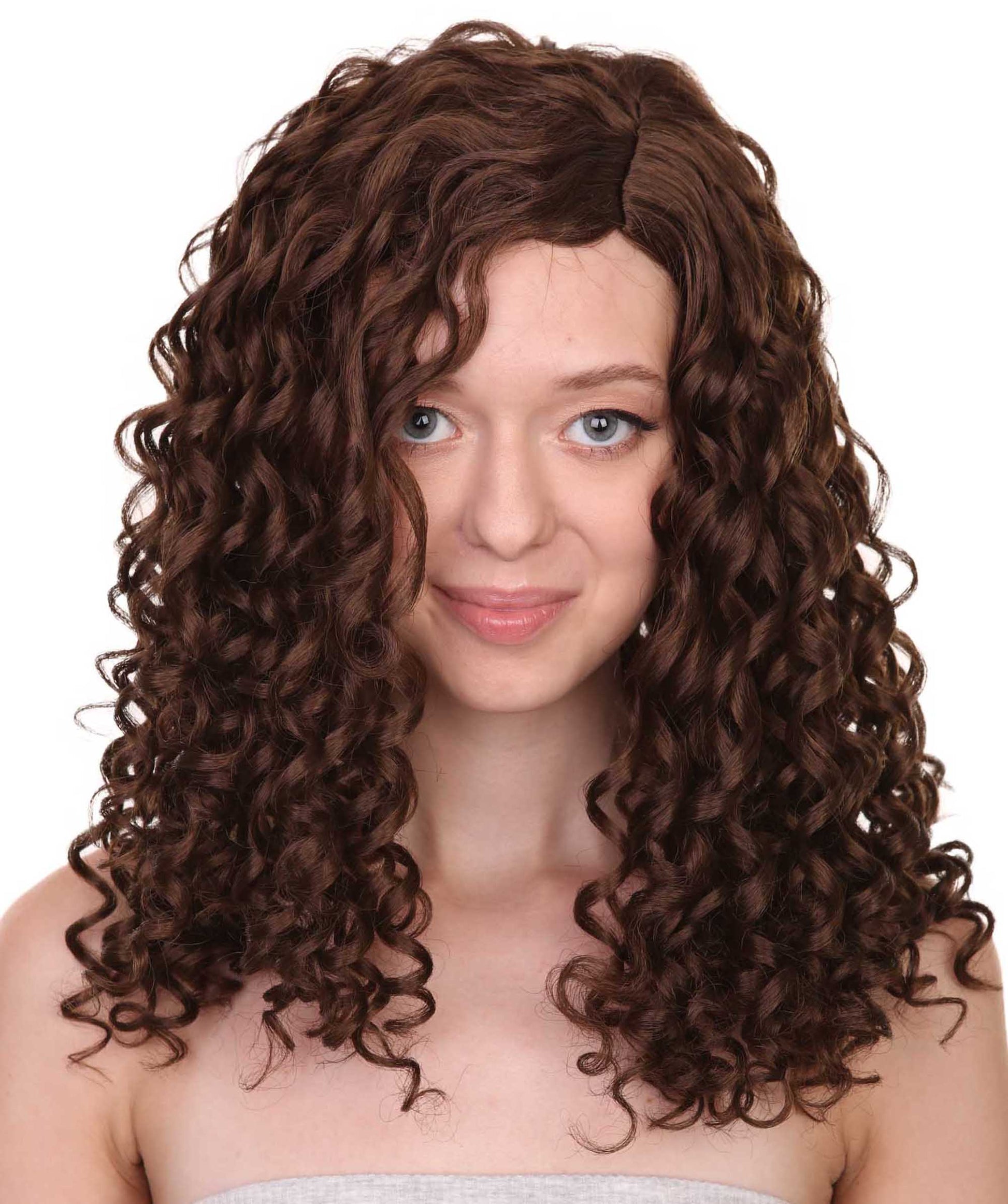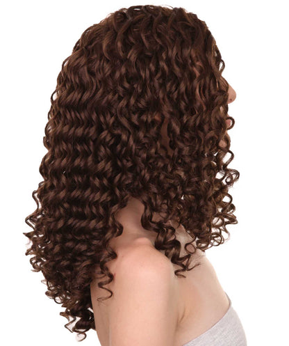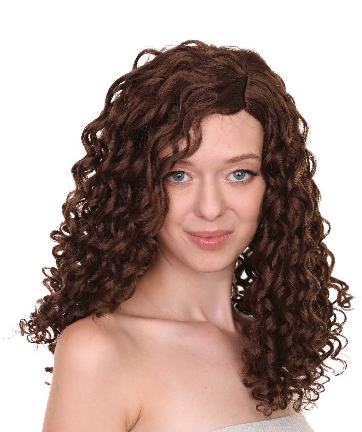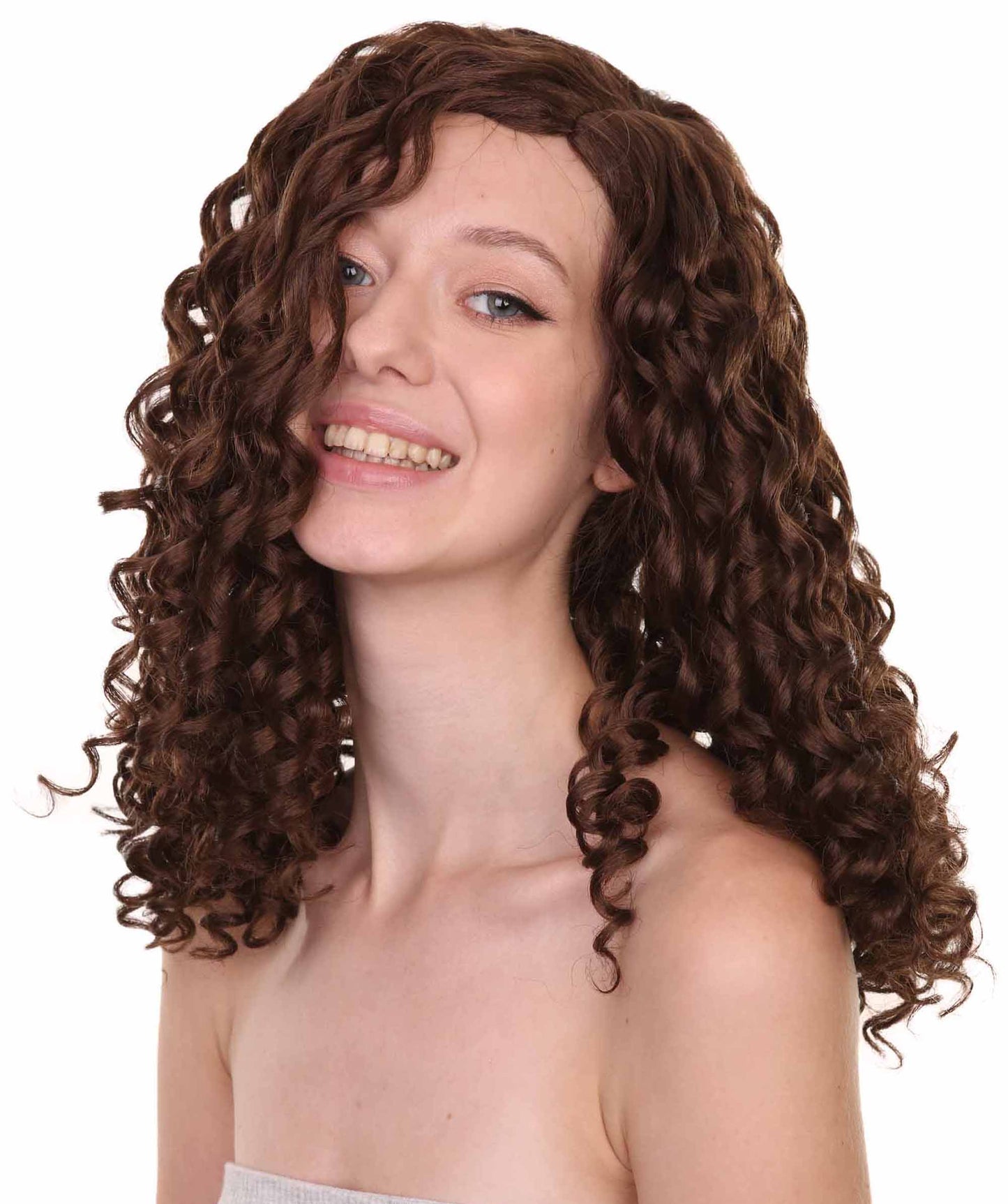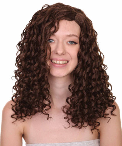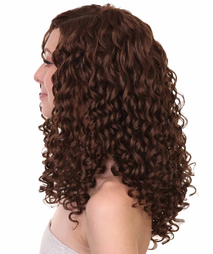 Womens Brown Curly Wig | Medium Halloween Wig | Premium Breathable Capless Cap