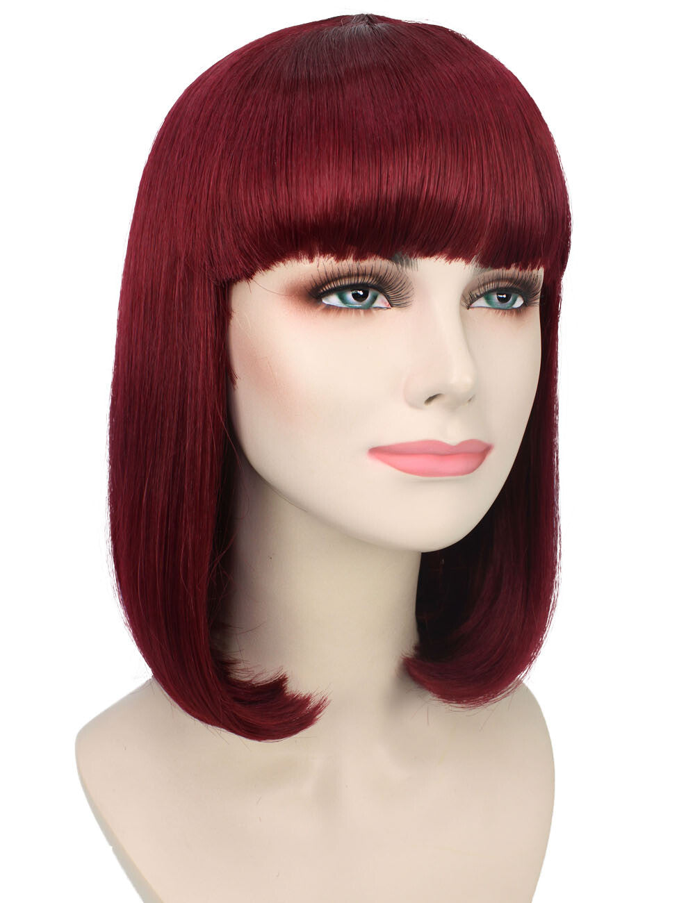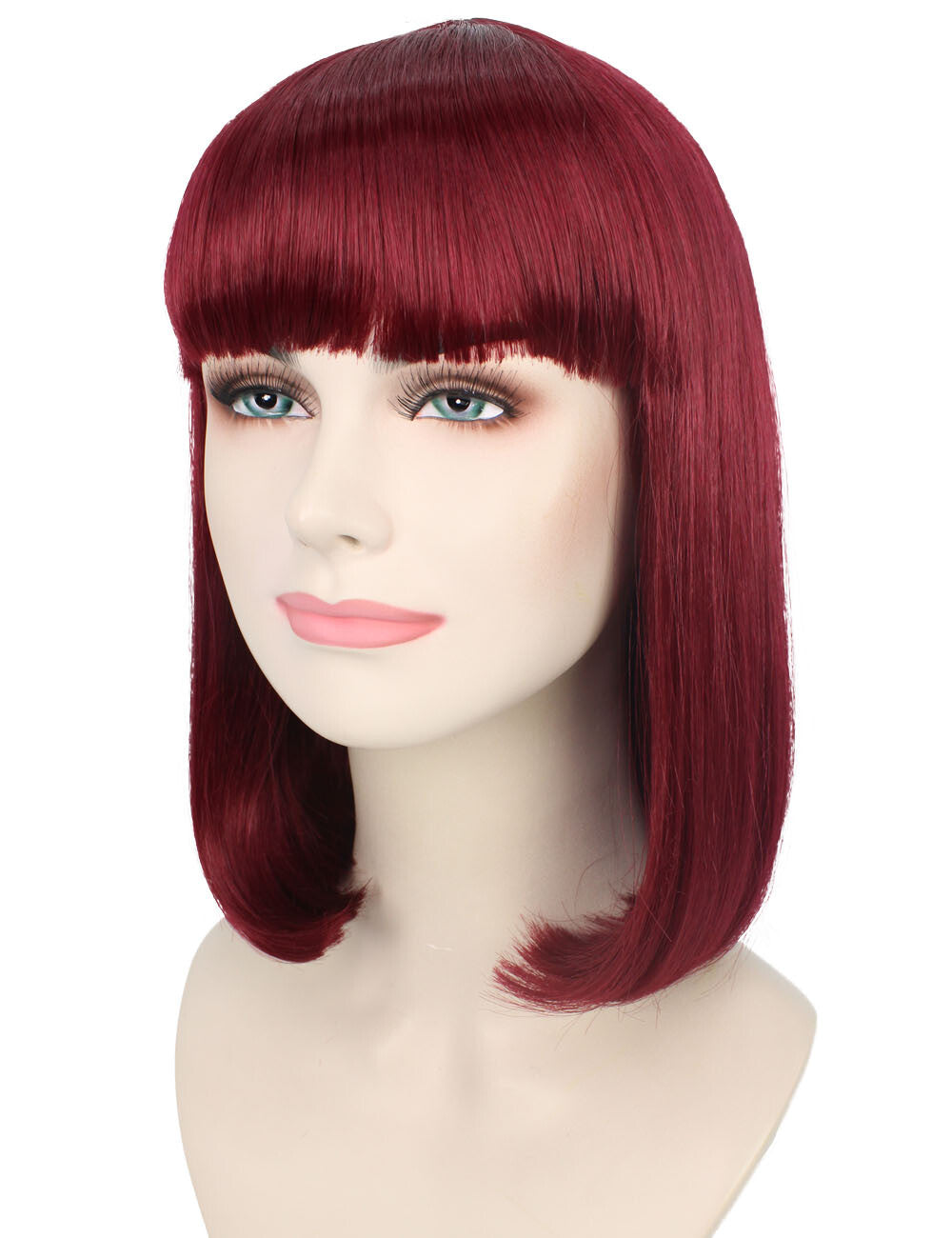 Women's Burgundy Straight Short Bob Wig with Bangs | Perfect for | Flame-retardant Synthetic Fiber