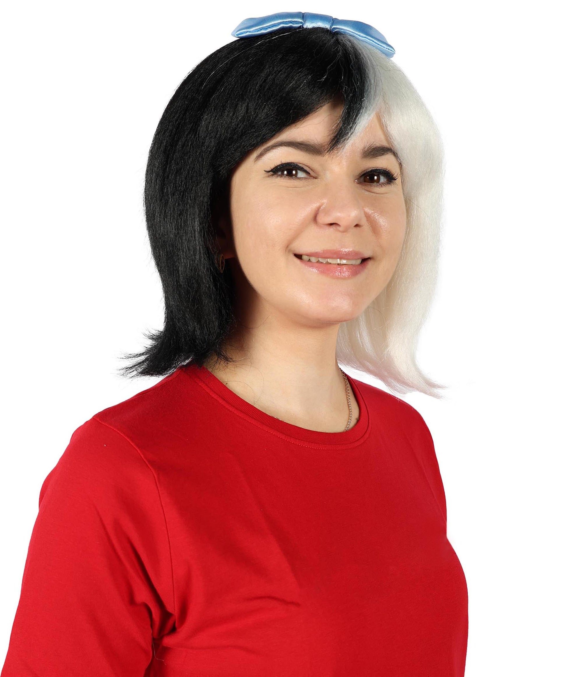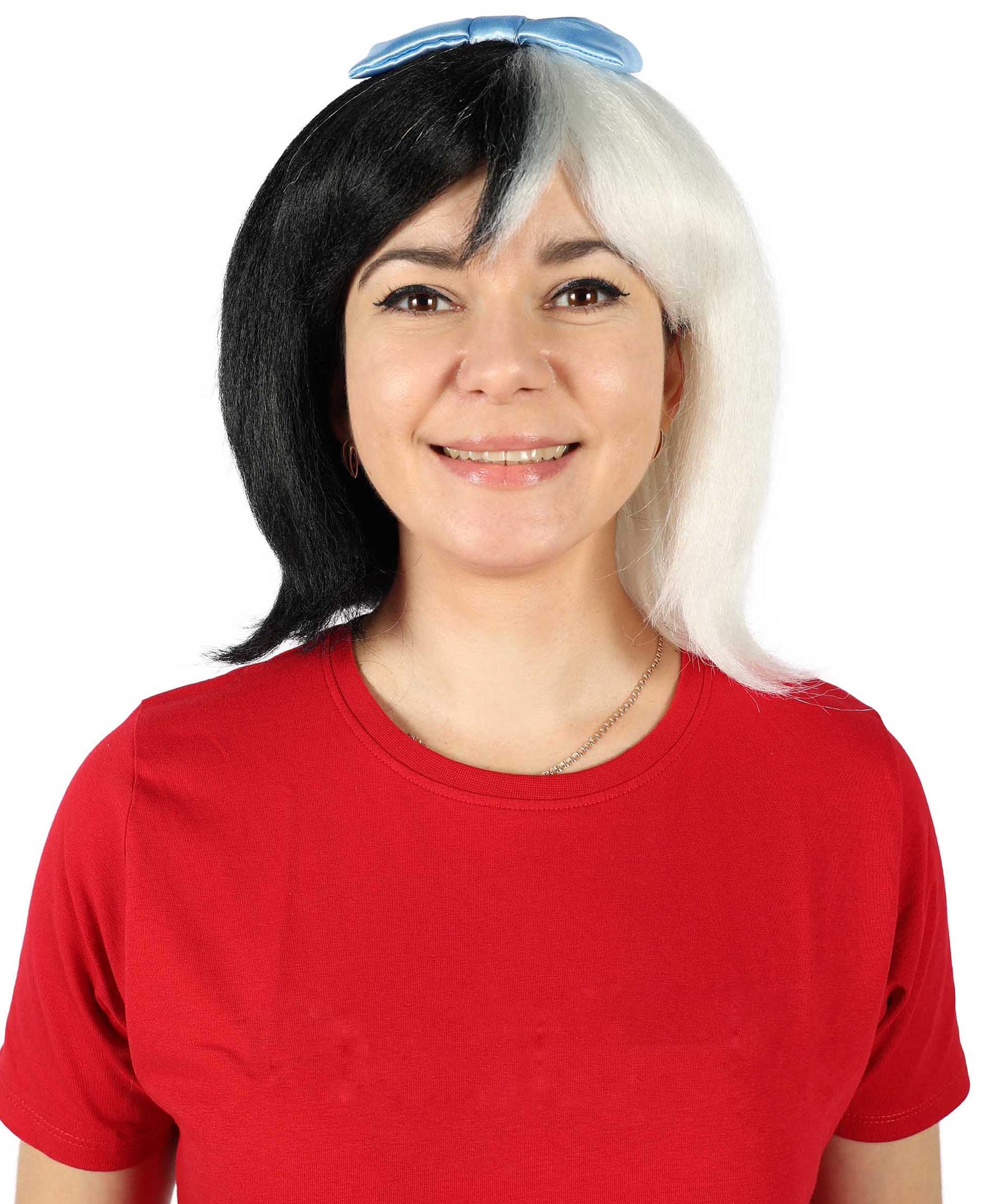 Womens Cavewoman Wig with Bow , Black TV/Movie Wigs , Premium Breathable Capless Cap