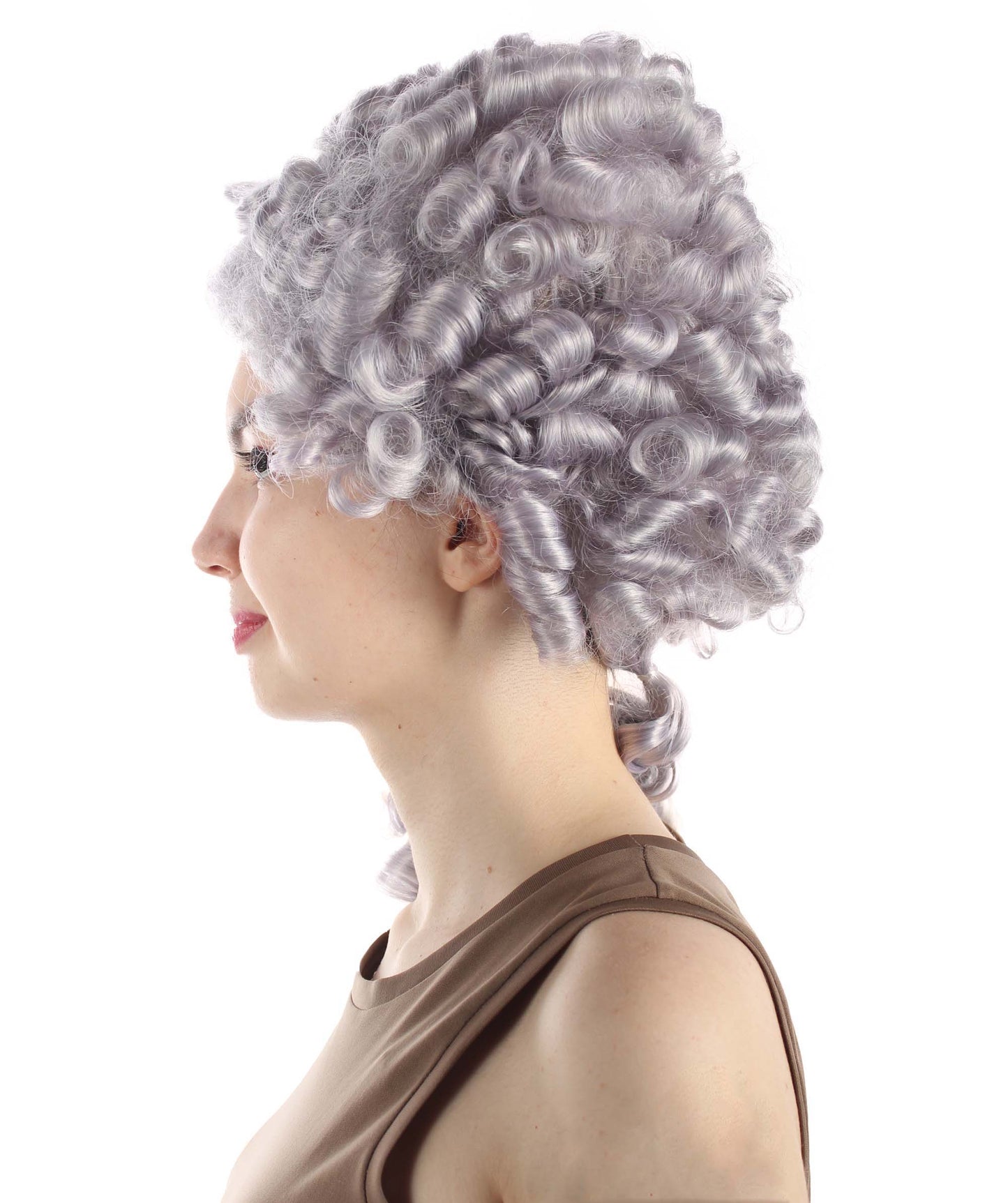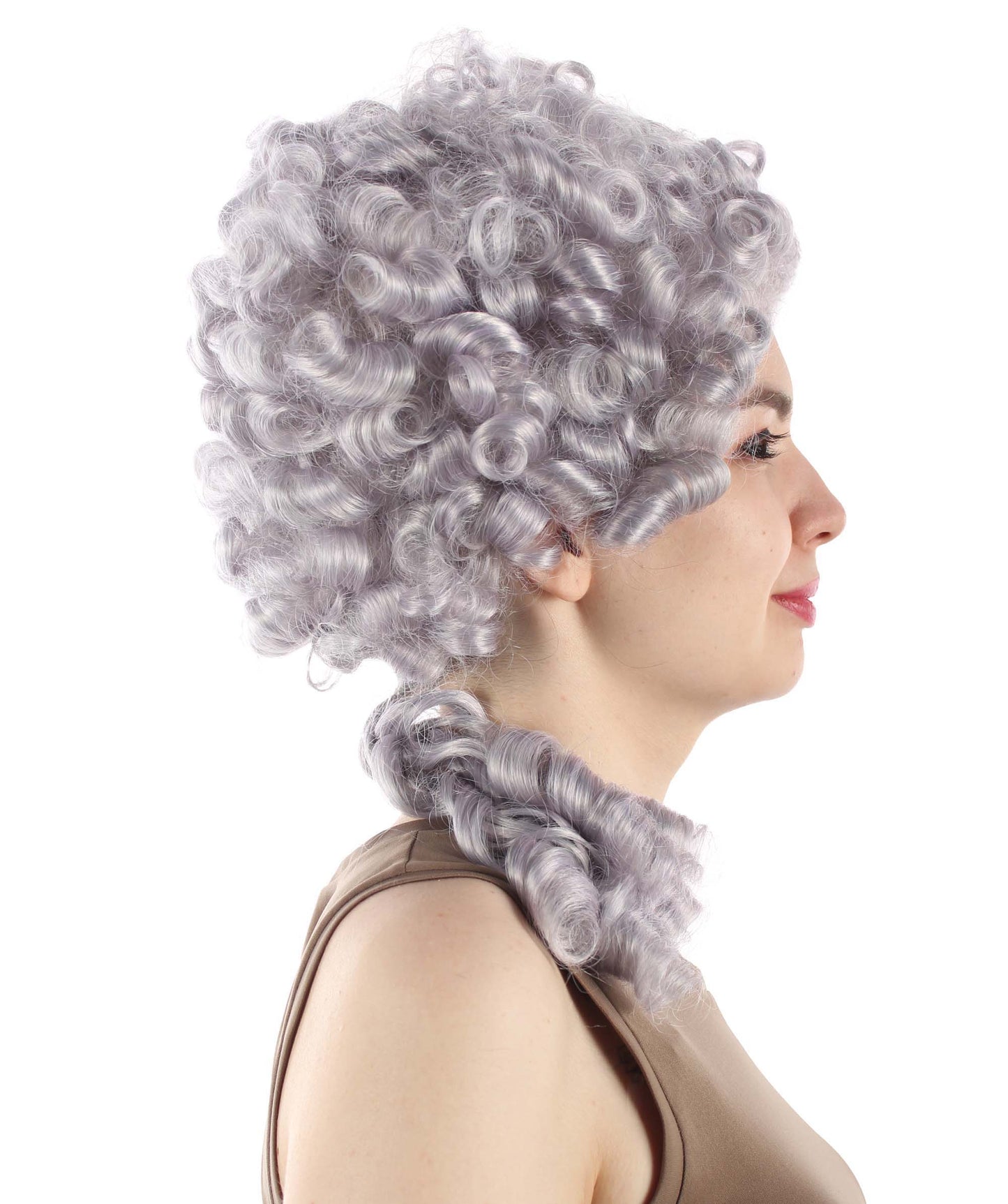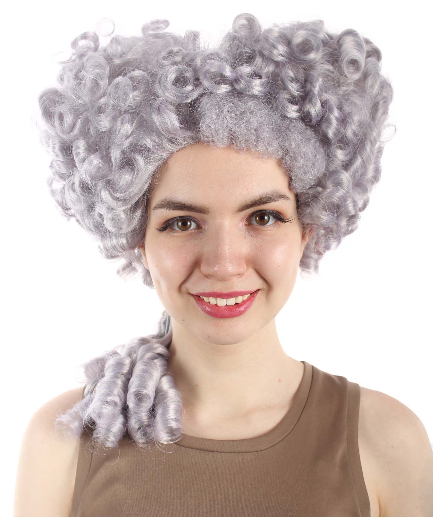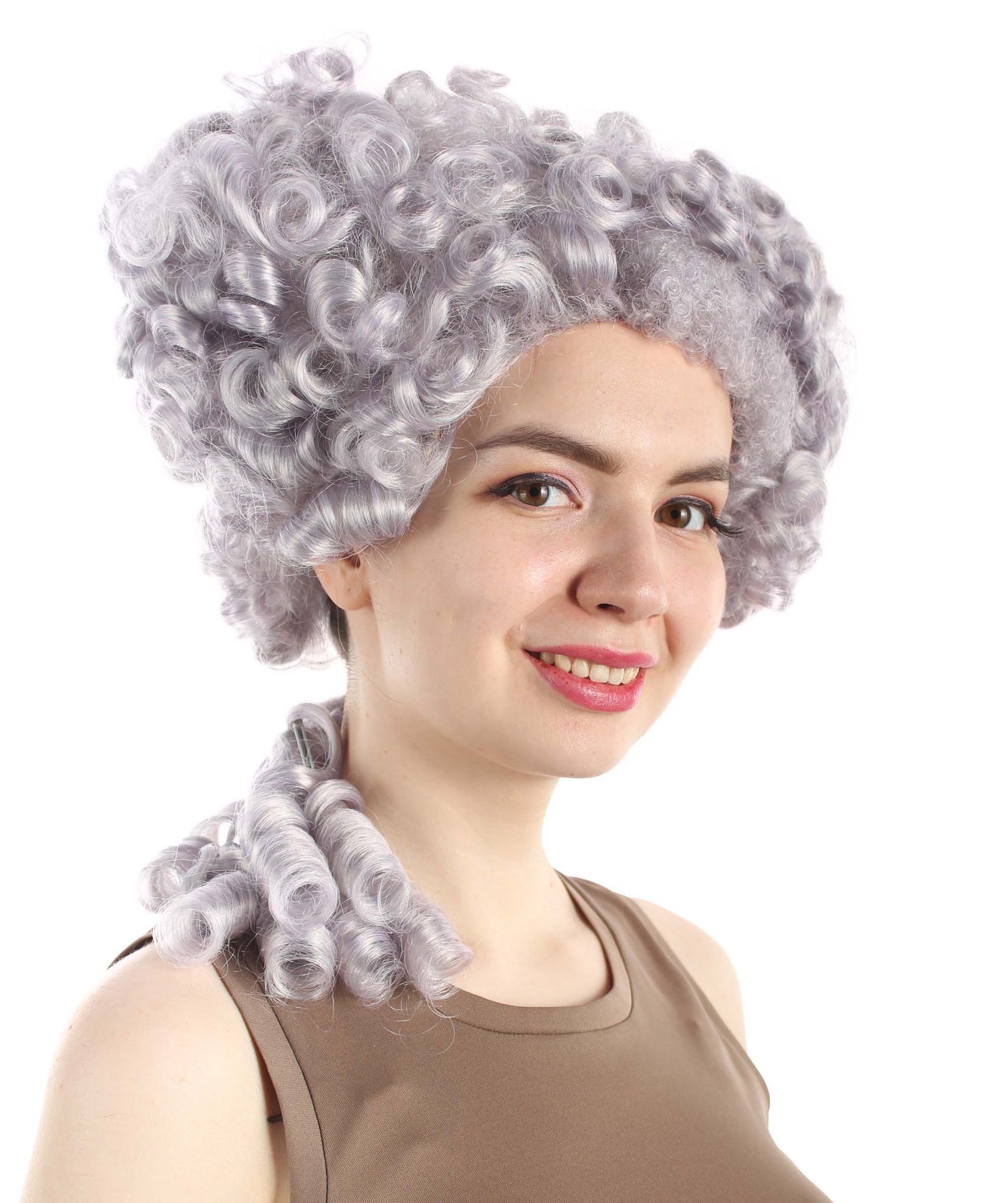 The Queen Charlotte Curly Grey Wig from HPO is a show-stopping addition to any costume or Fancy ensemble. This synthetic wig is designed to mimic the iconic 18th-century colonial hairstyle that was popular among royal families, making it the perfect accessory for those looking to emulate the regal elegance of a queen.