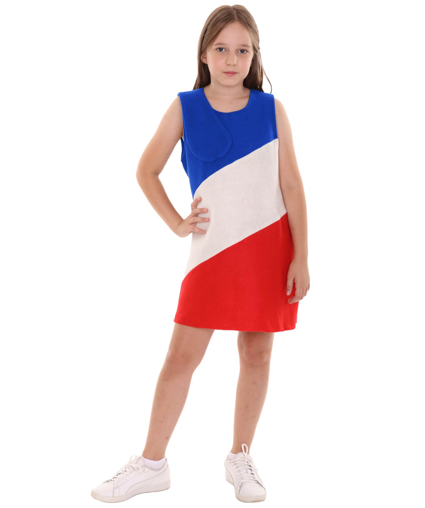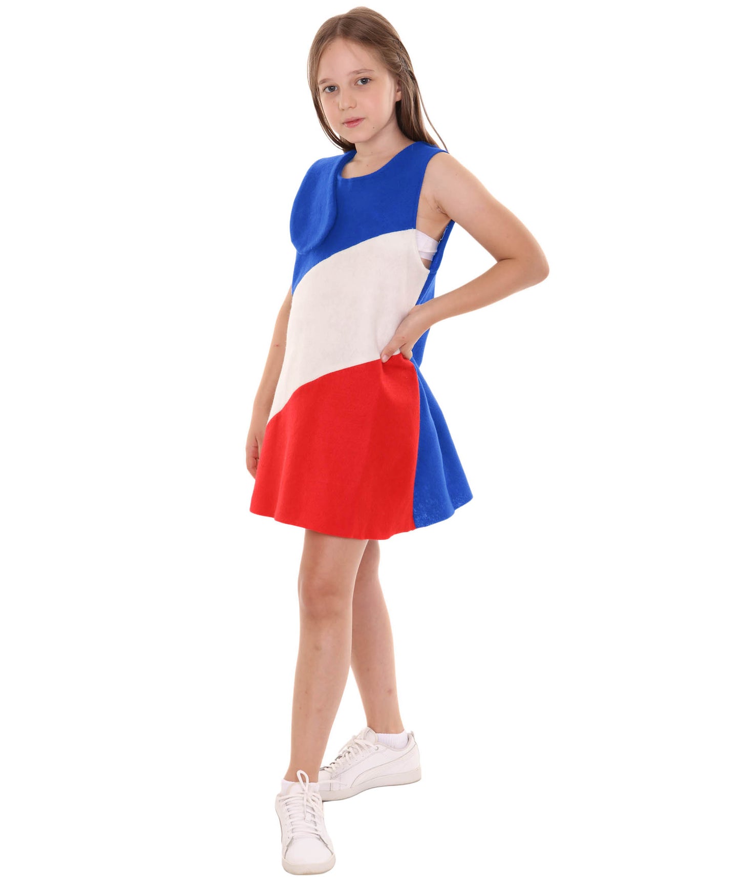 Child's Girl Patriotic Celebratory French Flag Troll Dress Costume | Tricolor Fancy