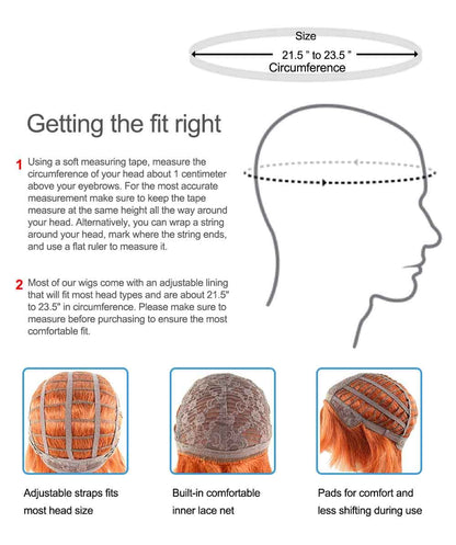 Constructed from flame-retardant synthetic fibers, this wig is safe for extended wear and designed with your comfort in mind. The capless cap design is breathable and features an adjustable strap, making it easy to find the perfect fit for your head size, up to 23.5 inches in circumference.