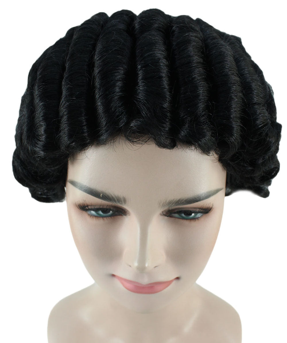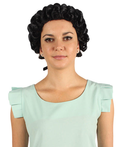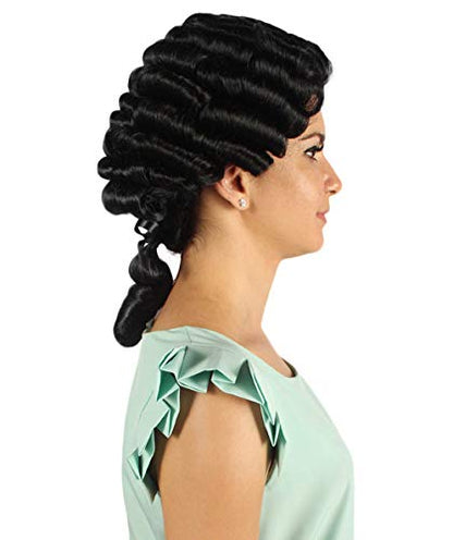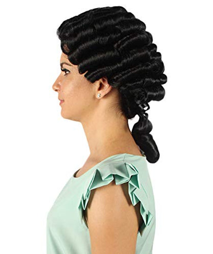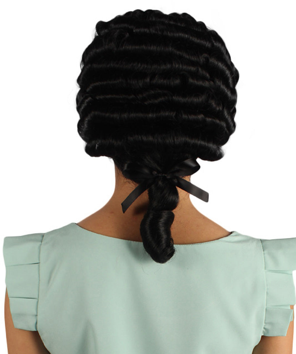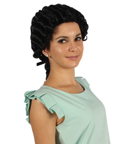 Womens Colonial Lady Curly Black Historical Wig | Premium Breathable Capless Cap