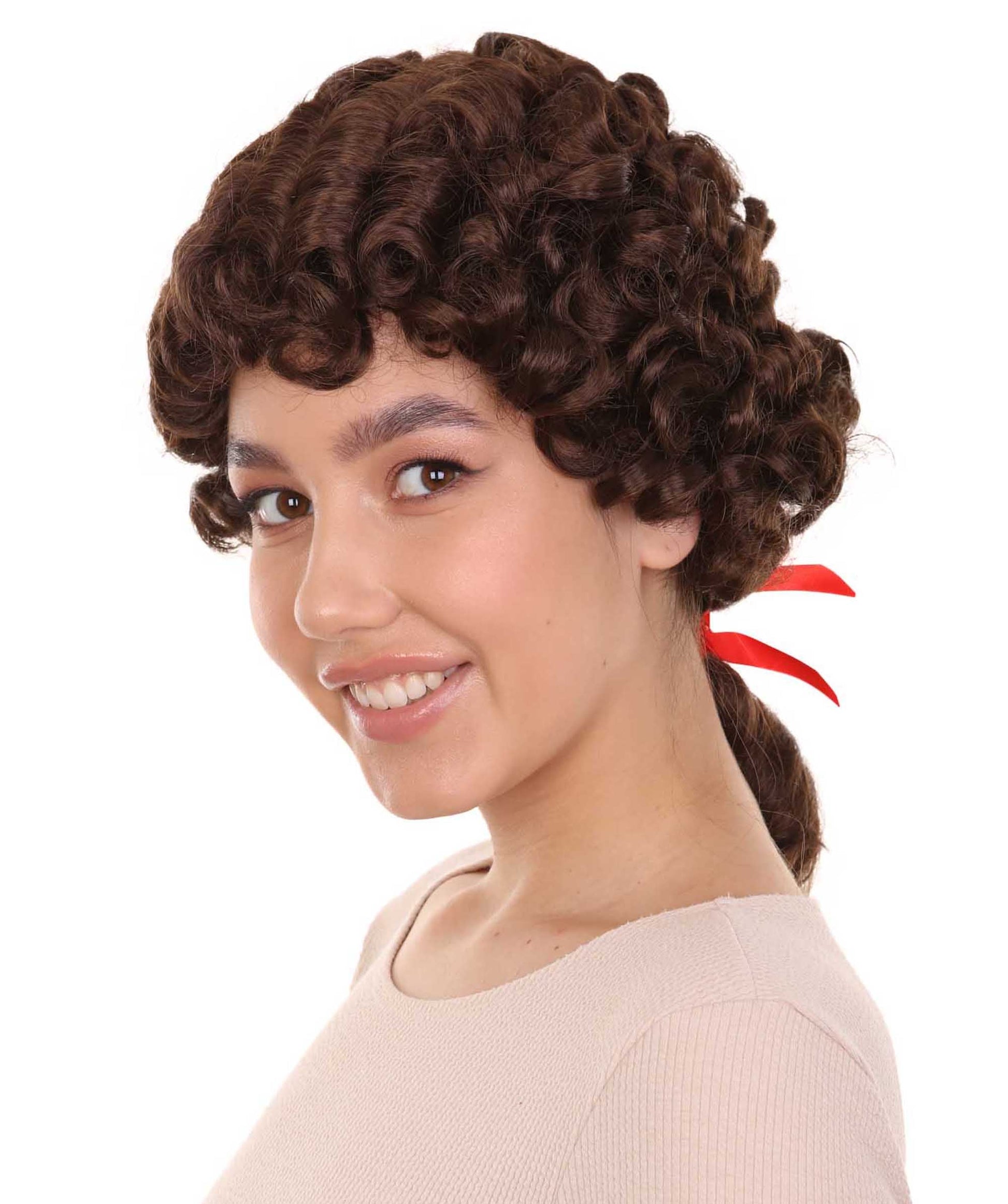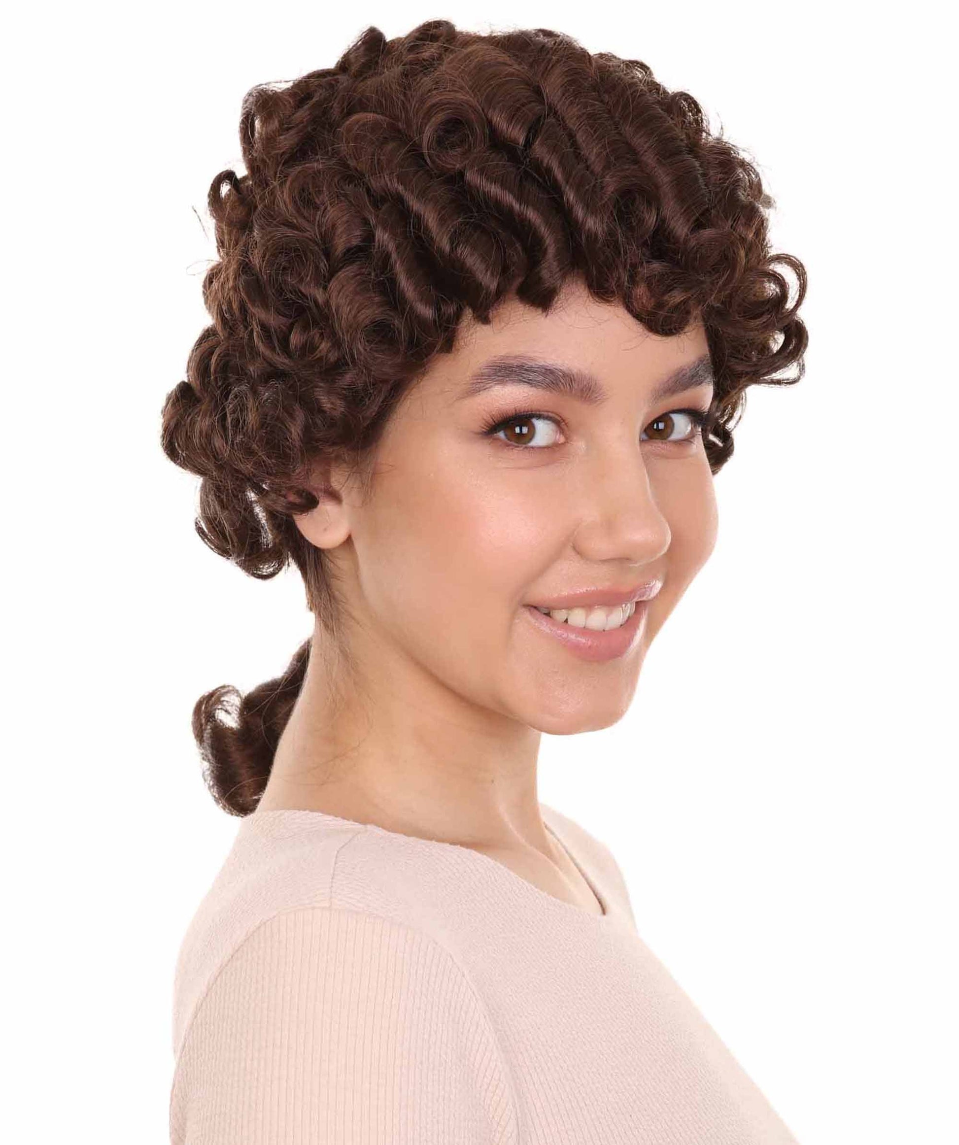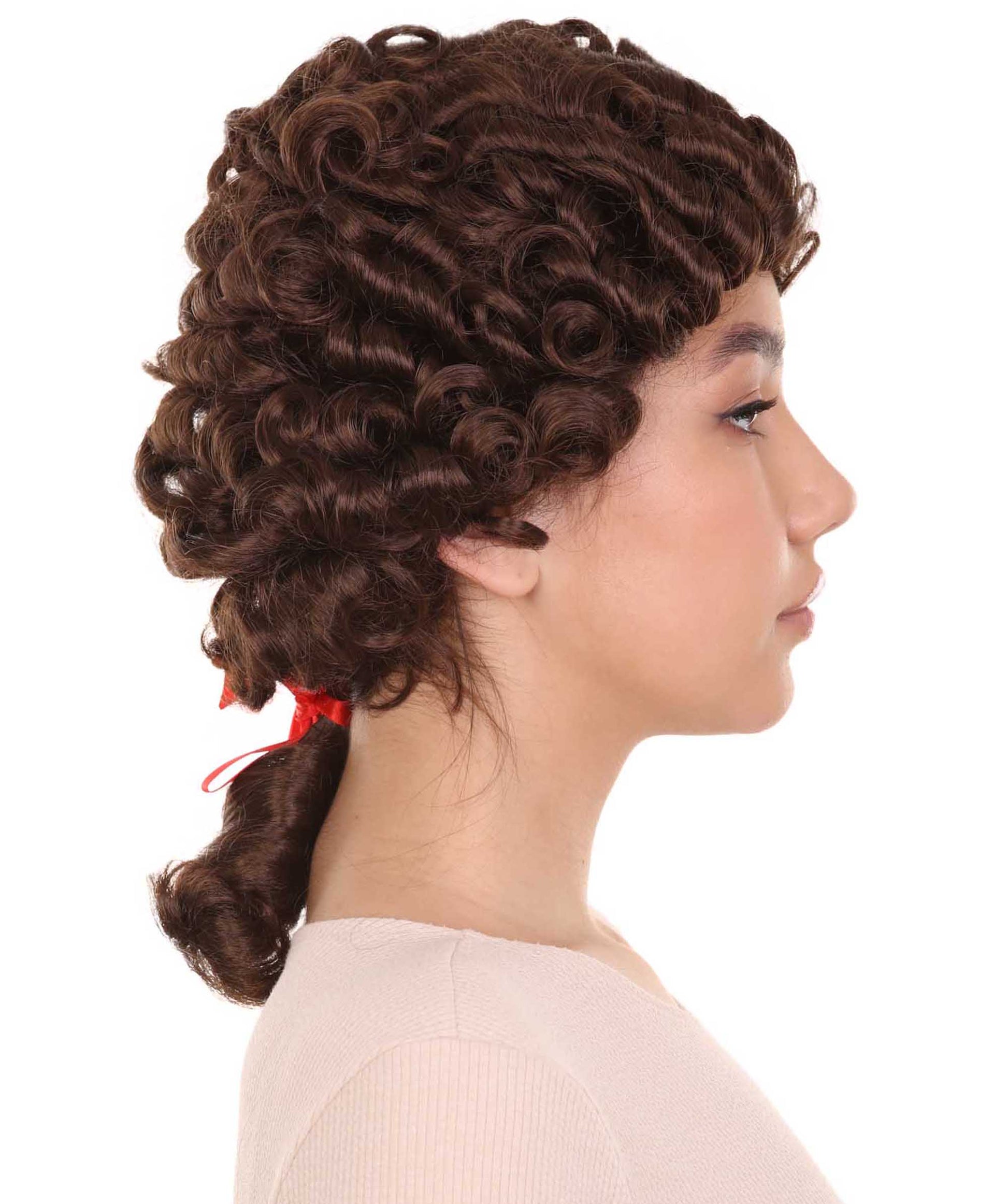 Womens Colonial Lady Curly Black Historical Wig | Premium Breathable Capless Cap