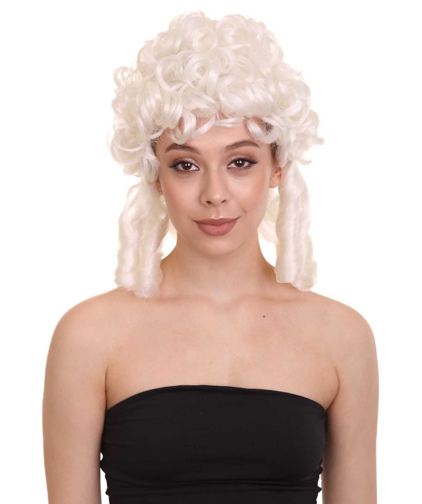 Womens Colonial Lady Curly Wig | White Historical Wig | Premium Breathable Capless Cap