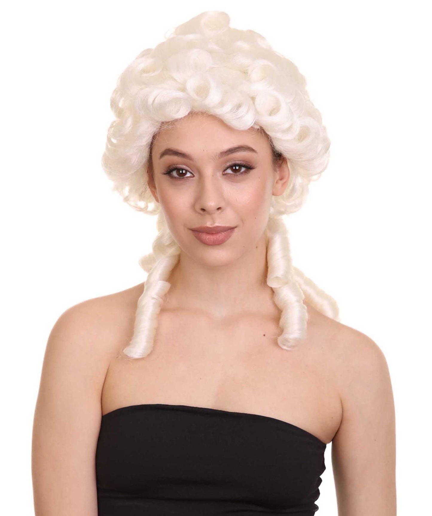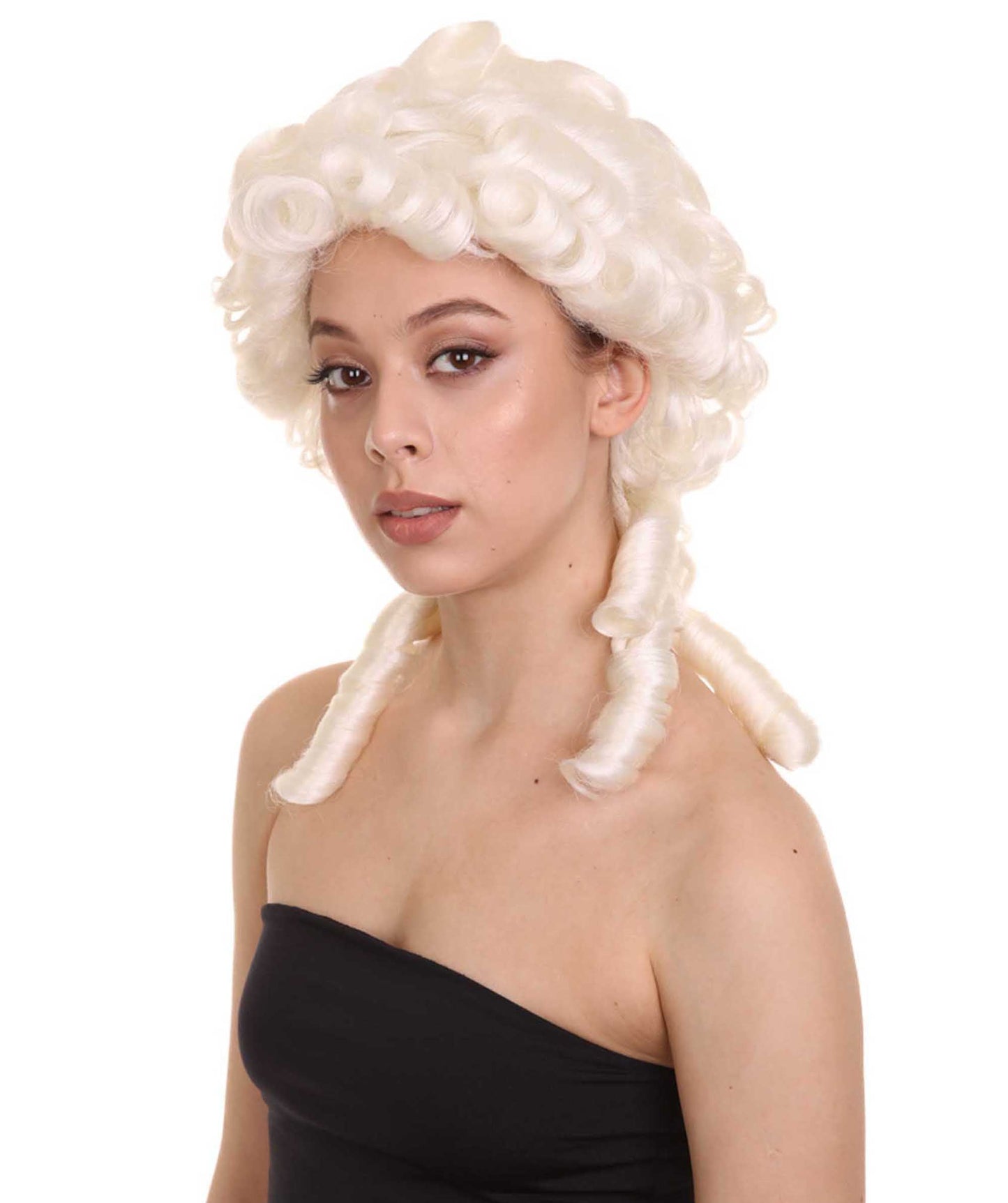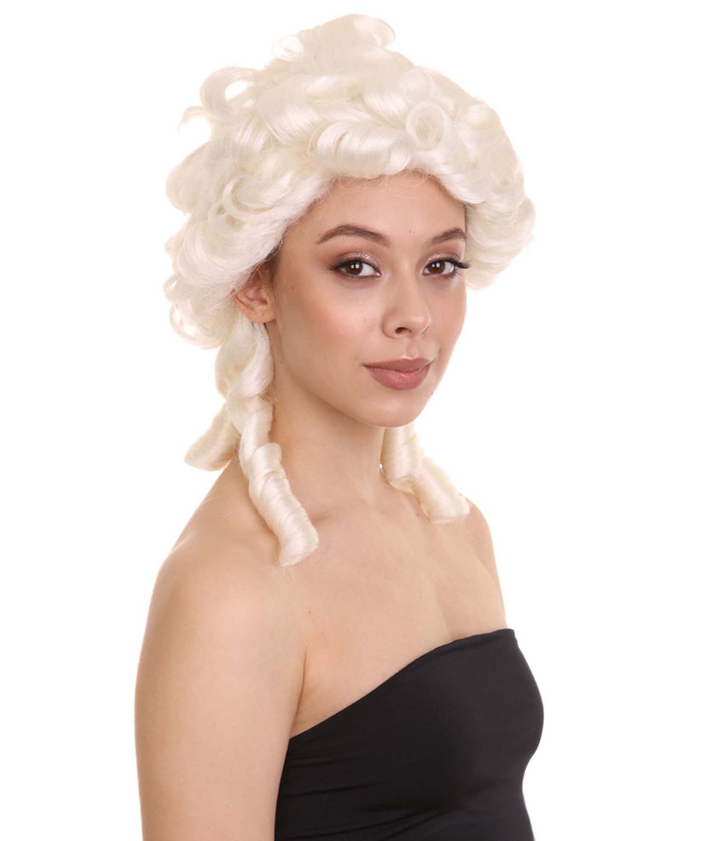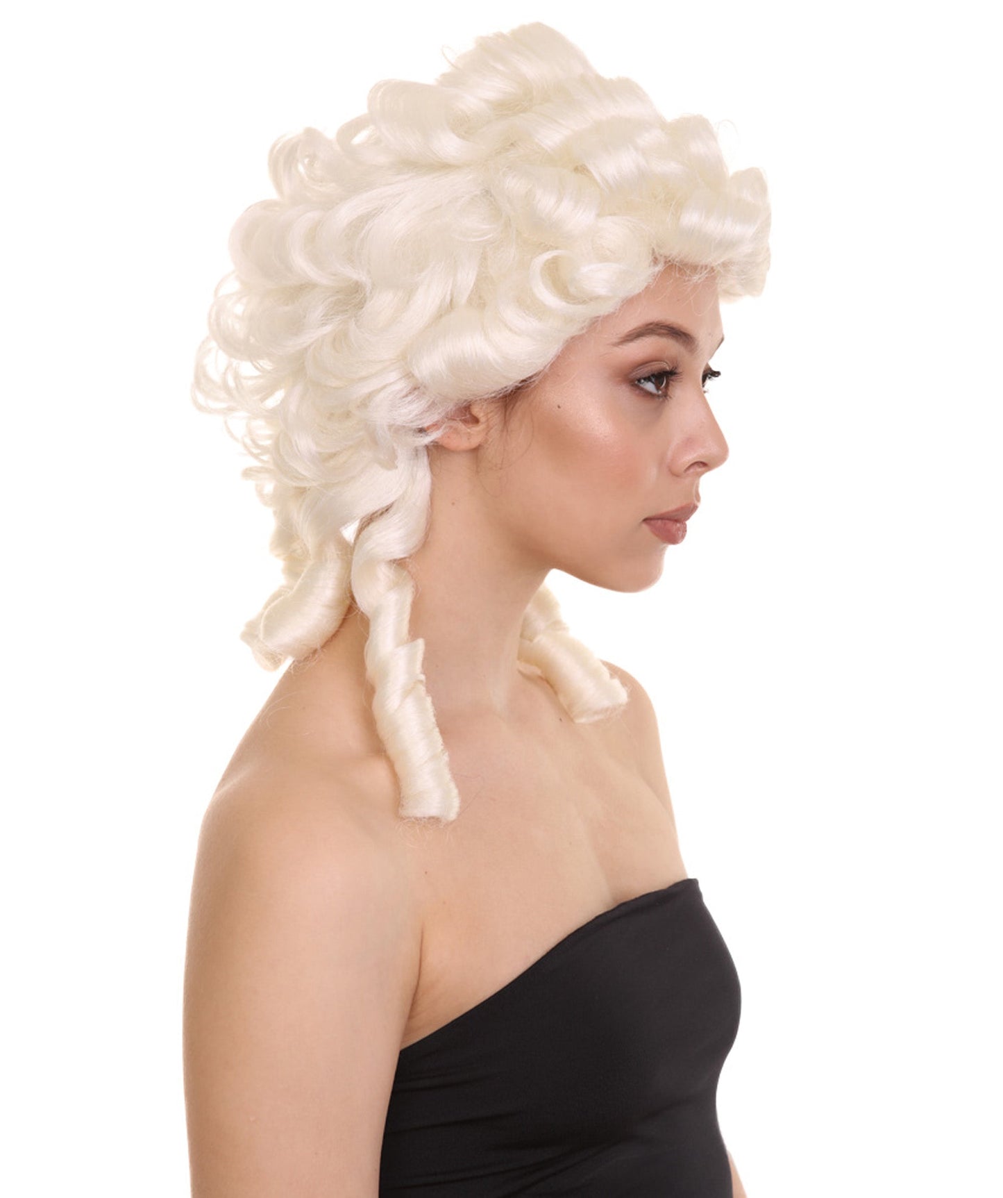 Women's Colonial Lady Curly Wigs | White Historical Fancy Wigs | Premium Breathable Capless Cap