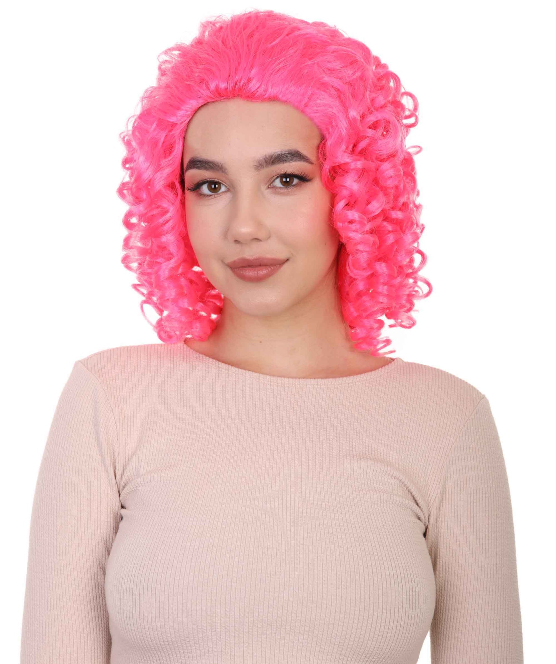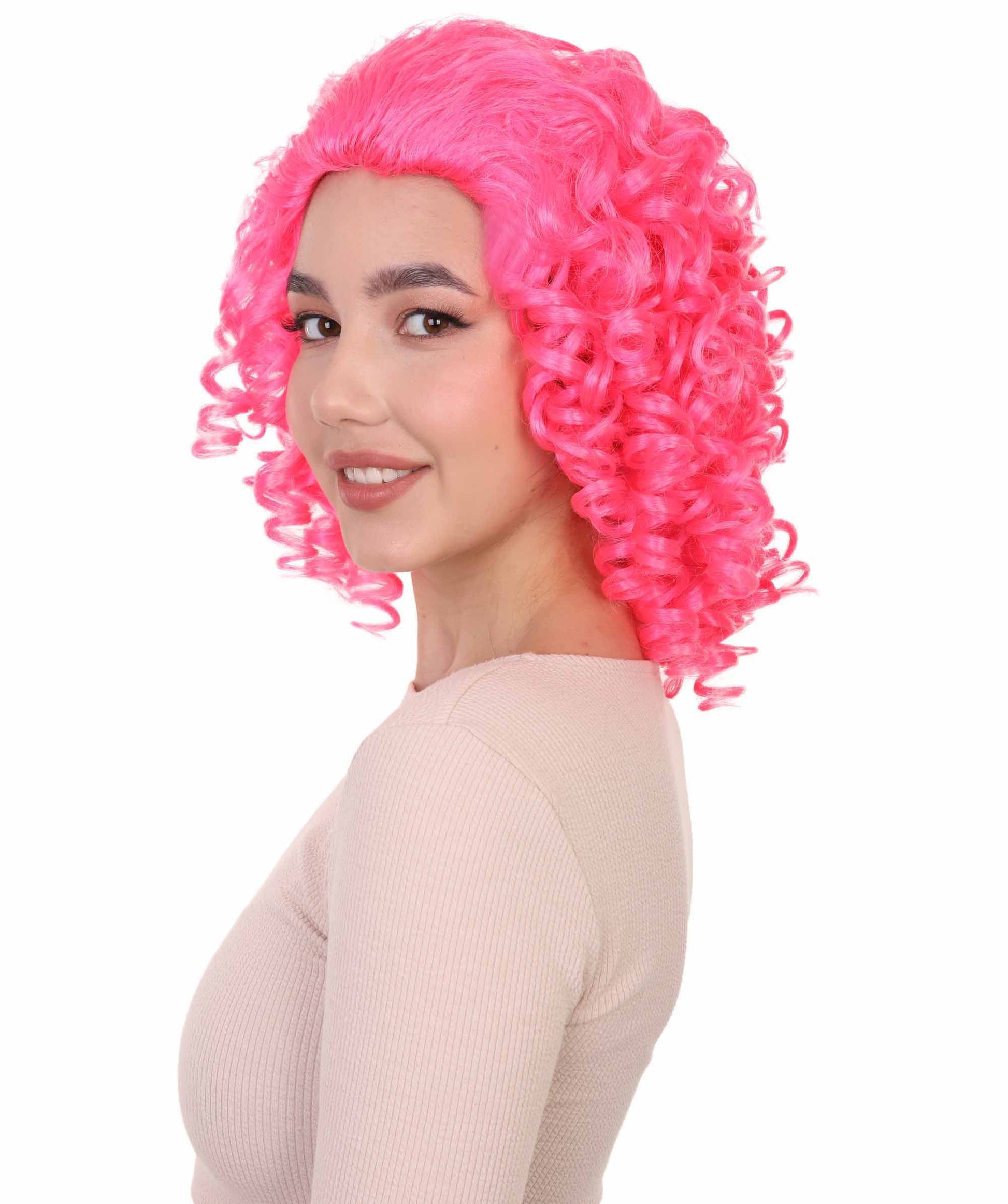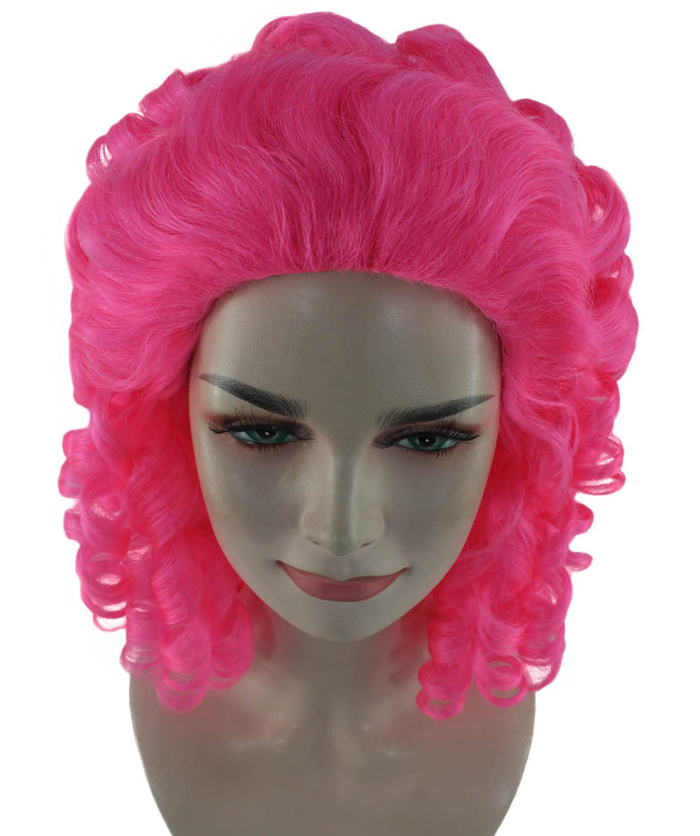Womens Colonial Ladies 18th Century Curly Wig | Pink Historical Wig | Premium Breathable Capless Cap