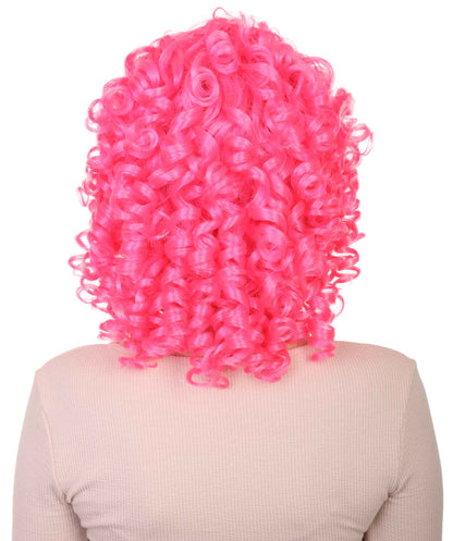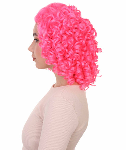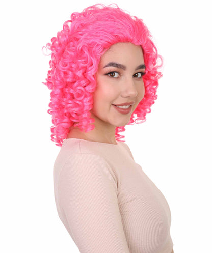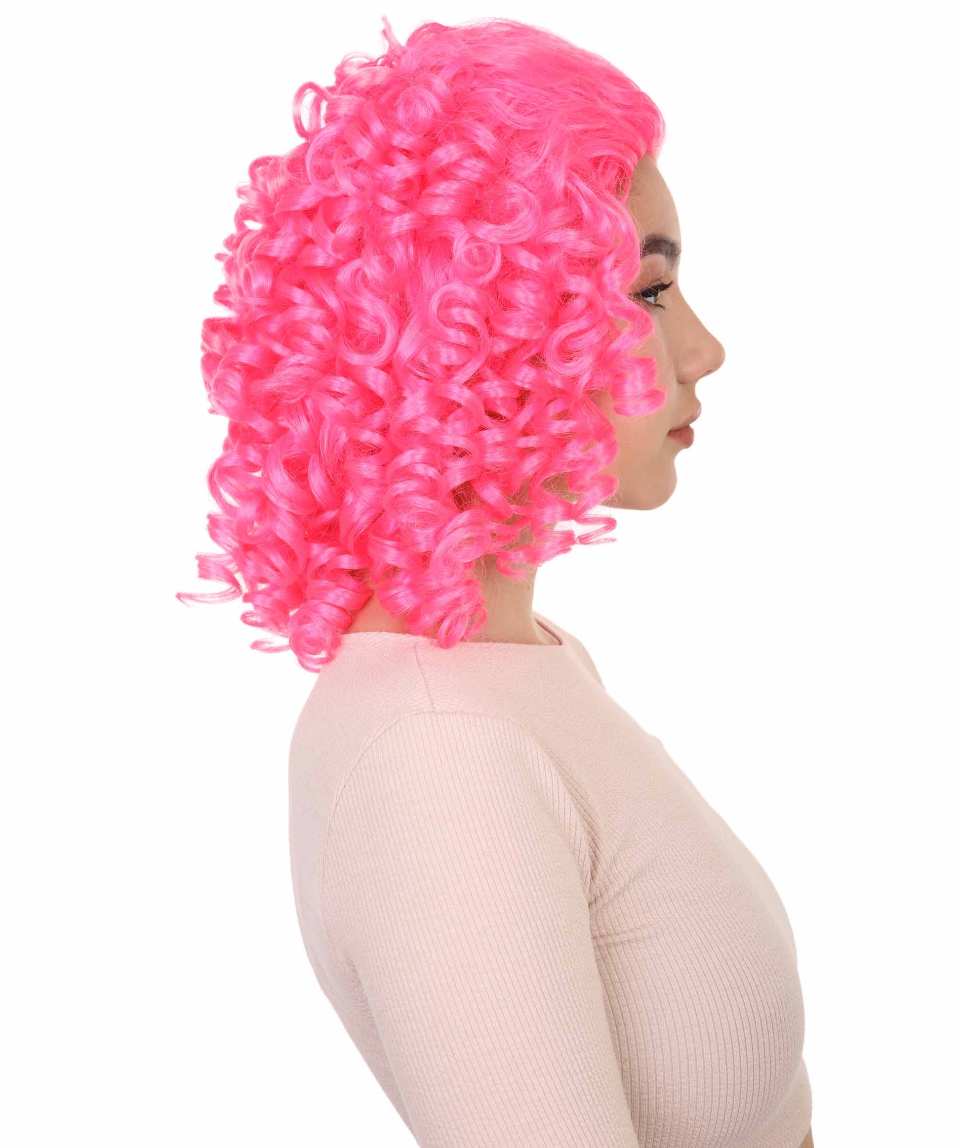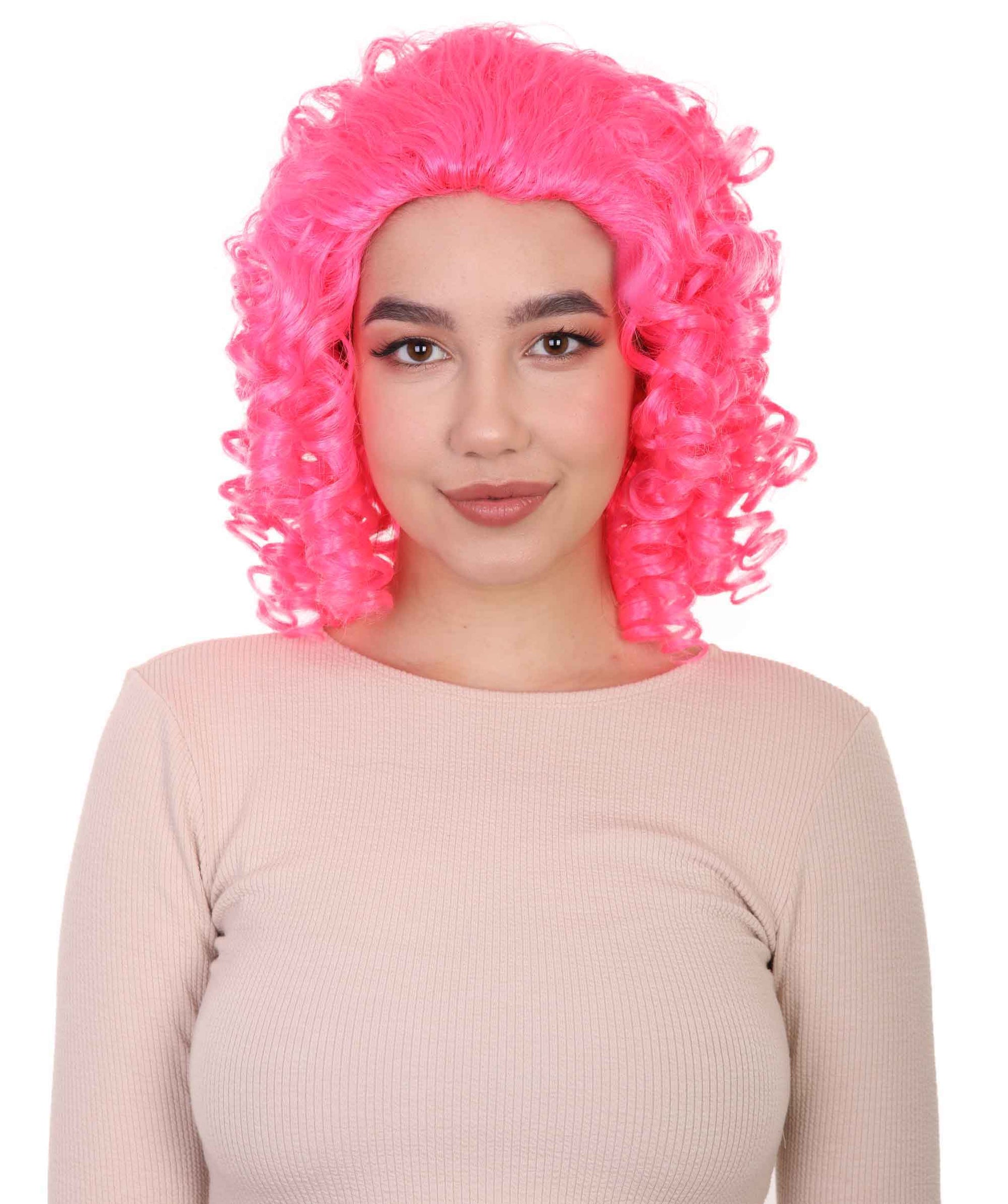 Womens Colonial Ladies 18th Century Curly Wig | Pink Historical Wig | Premium Breathable Capless Cap