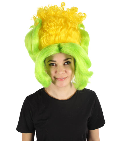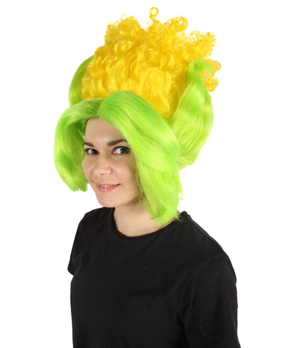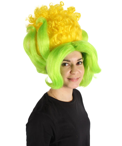 HPO Women's Yellow & Green Corn Shape Beehive Wig | Cosplay Wig | Flame-retardant Synthetic Fiber