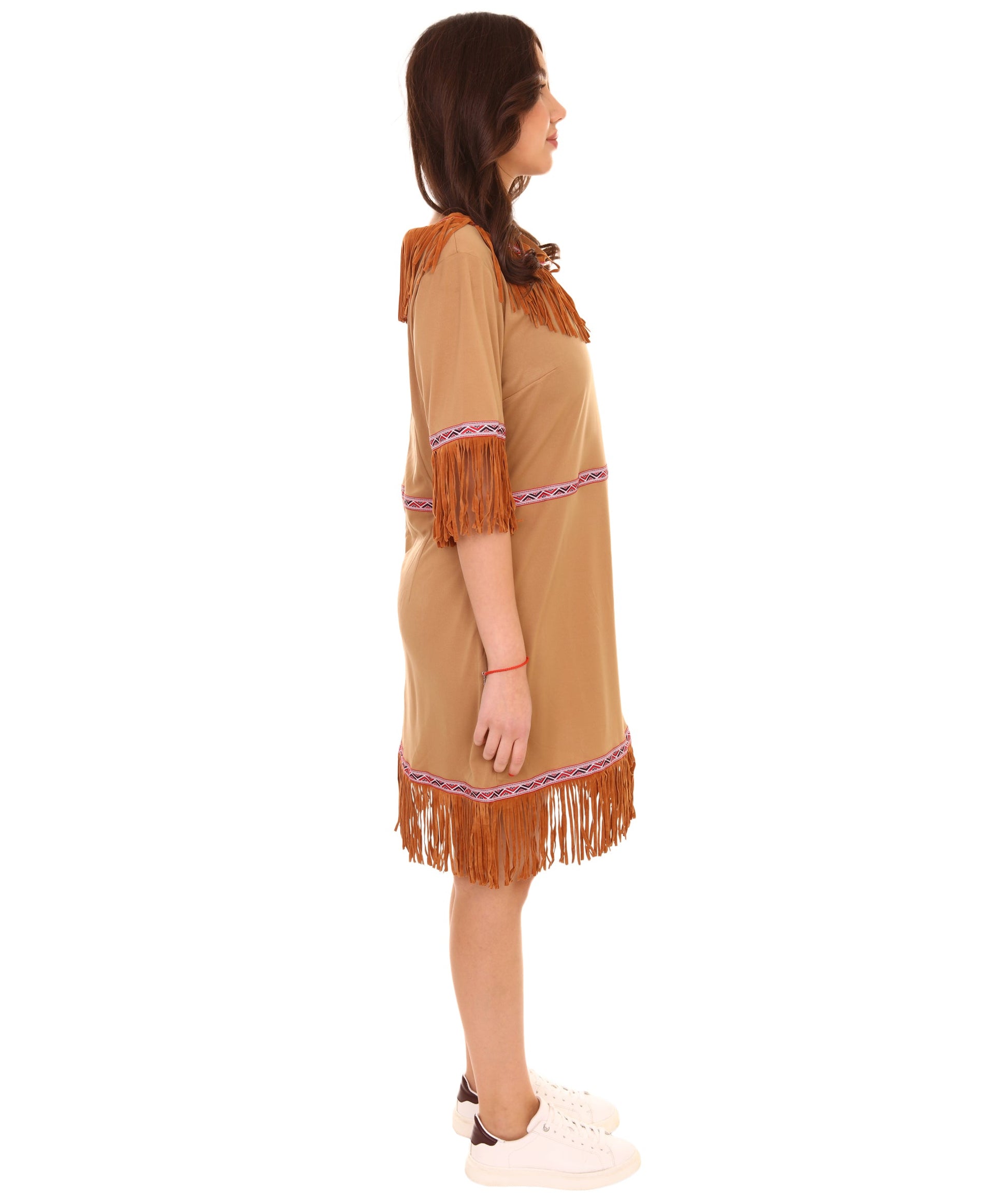 The centerpiece of this costume is the brown cowgirl dress, crafted with attention to detail and a nod to western style. The dress features a flattering silhouette with a fitted bodice and a flared skirt, allowing you to move with ease and grace. The rich brown color exudes warmth and authenticity.
