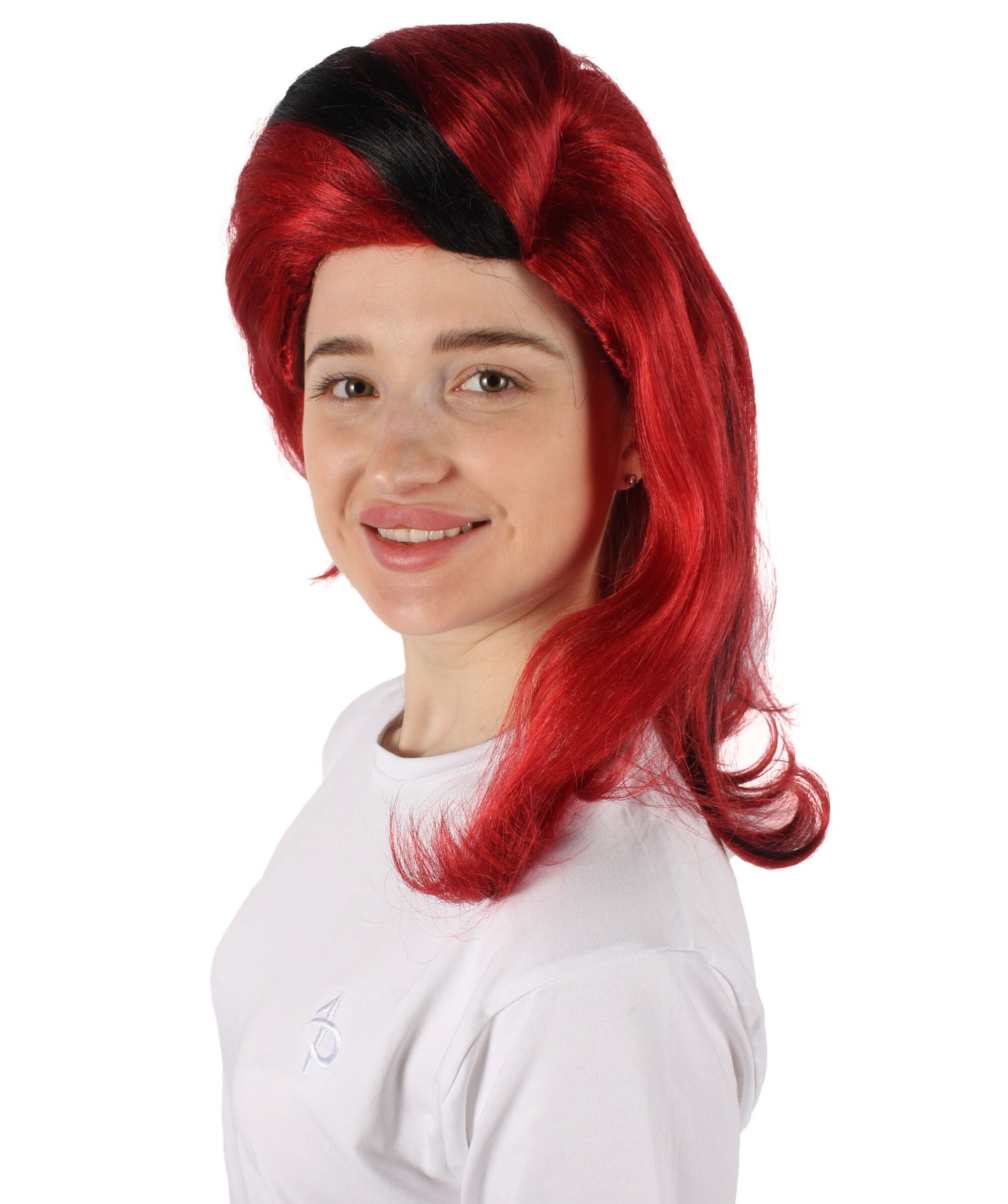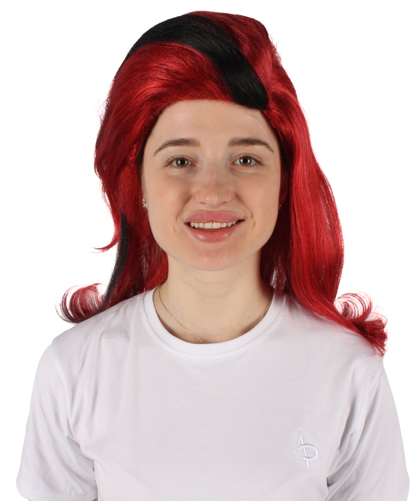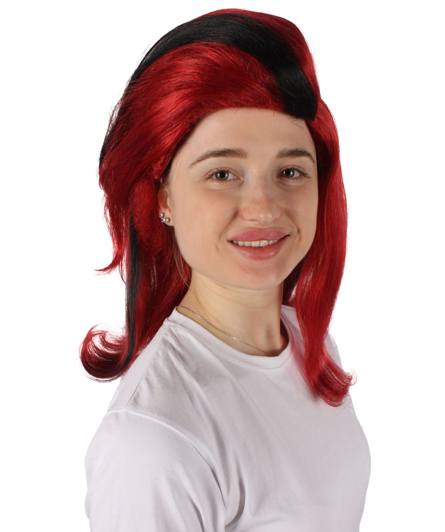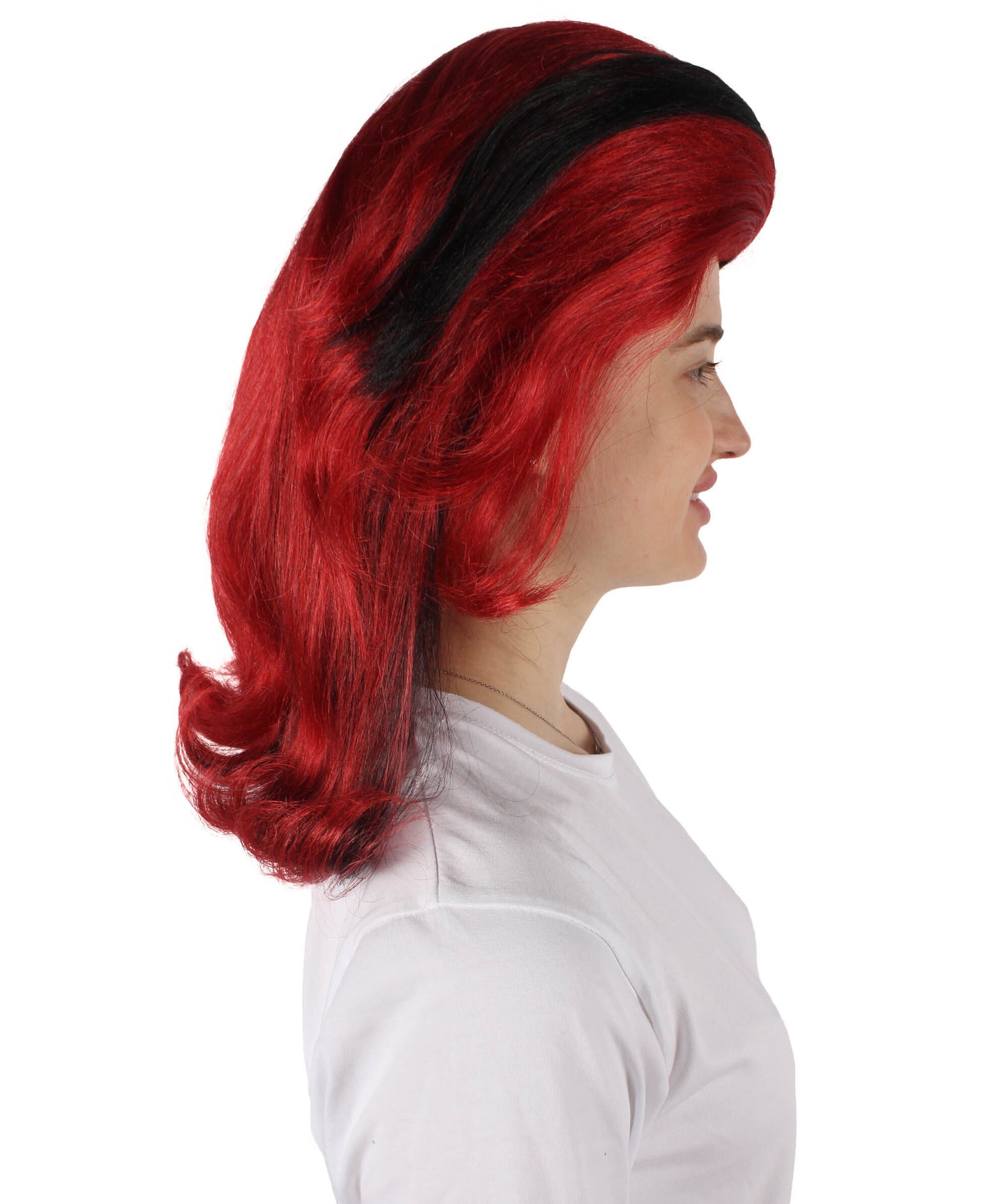HPO Women's Crimson Red Wig with Black Streaks I Perfect for Halloween I Flame-retardant Synthetic Fiber