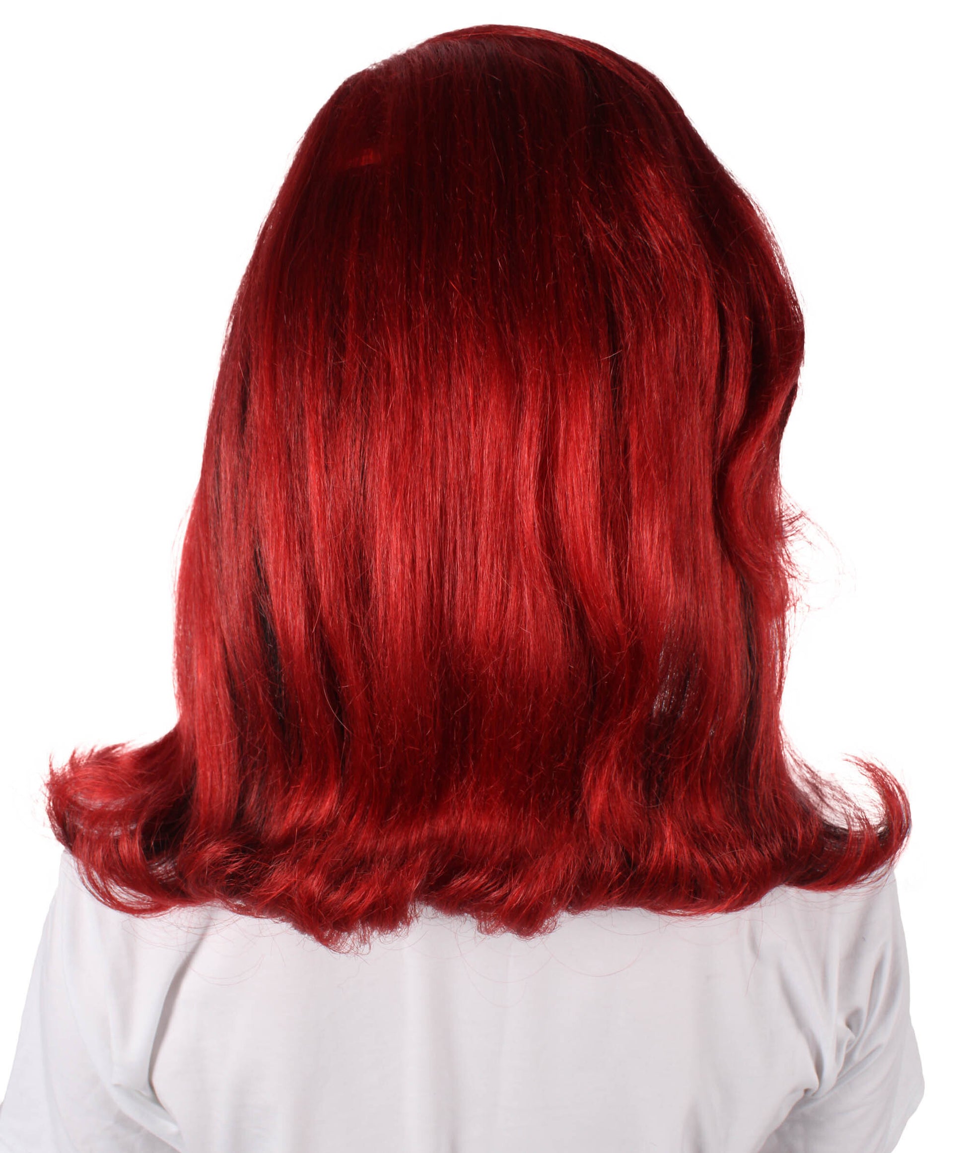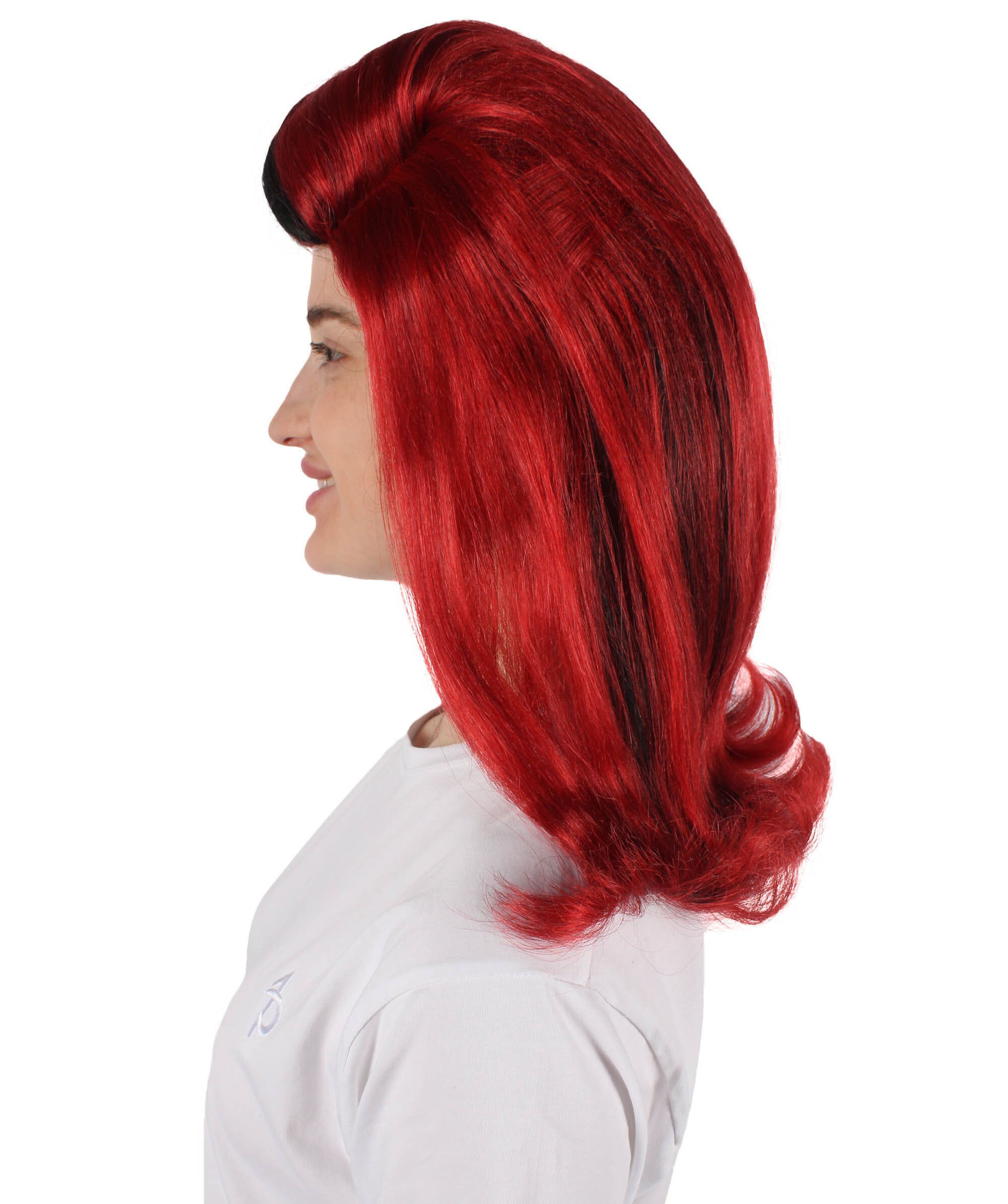 If Sophistication is your main focus for any Halloween, or theme parties then our crimson red wig with black streaks will win your heart. It is mid-length and has a small amount of wavy shape on the bottom. Its elite crimson-red color and high hair volume give the wig a different level of ghastly beauty. This crimson red wig has a hint of black streaks on the front of the wig that makes the wig dramatic. This wig is perfect for those women who love dramatic bold ghastly or even evil characters. It gives an elegant and fashionable look without any hassle.