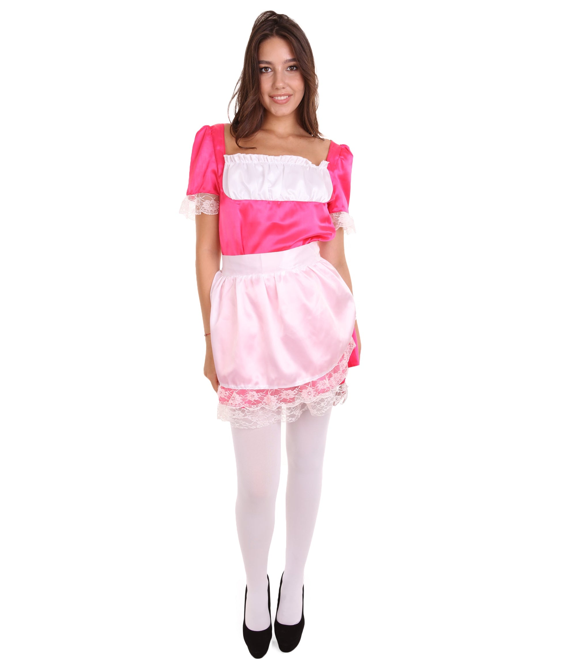 Women's Traditional Maid Uniform Costume | Dark Pink Fancy Costume