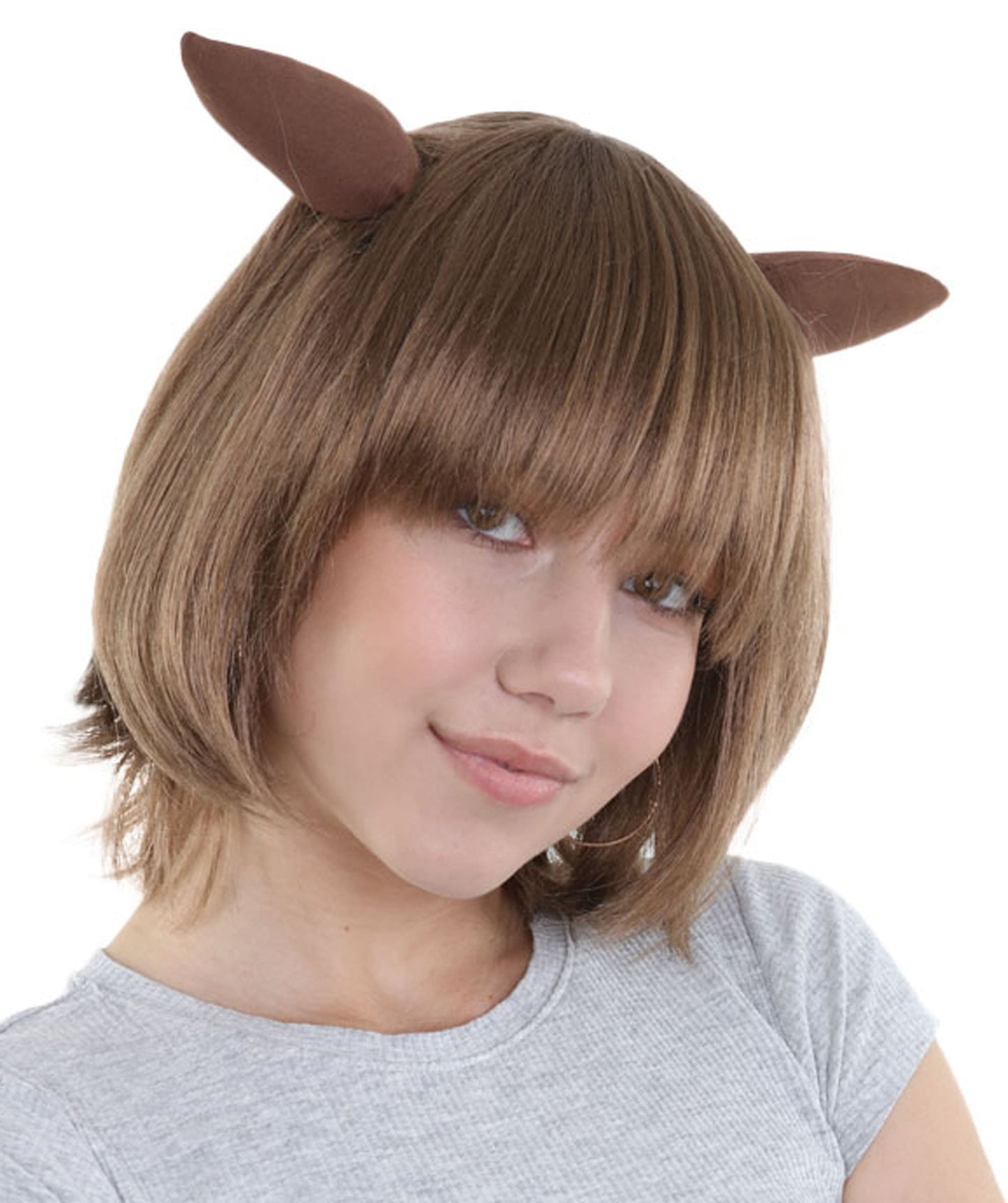 Deer Angel Womens Wig | Brown Halloween Wig Ears | Premium Breathable Capless Cap