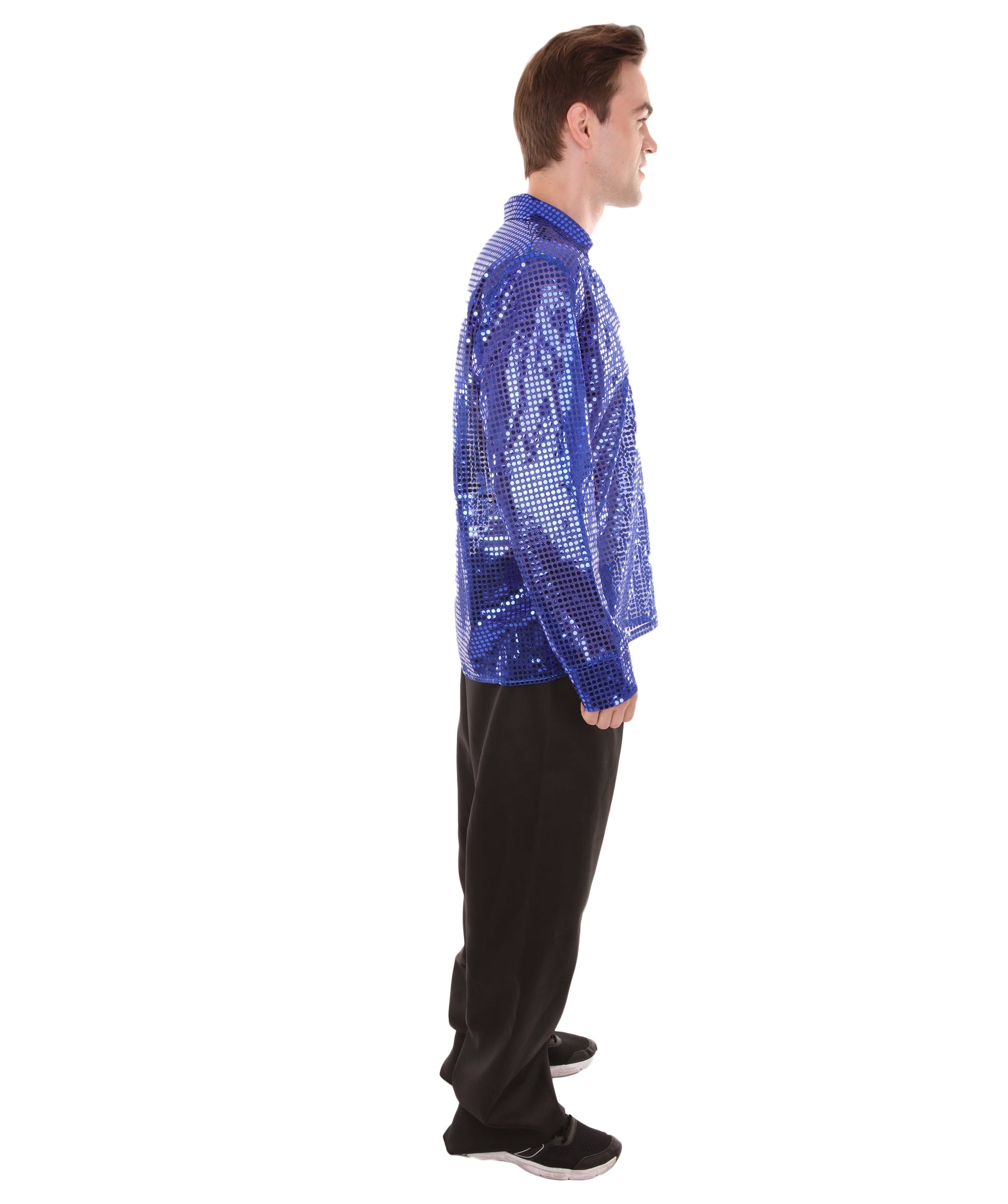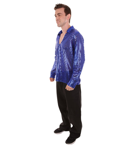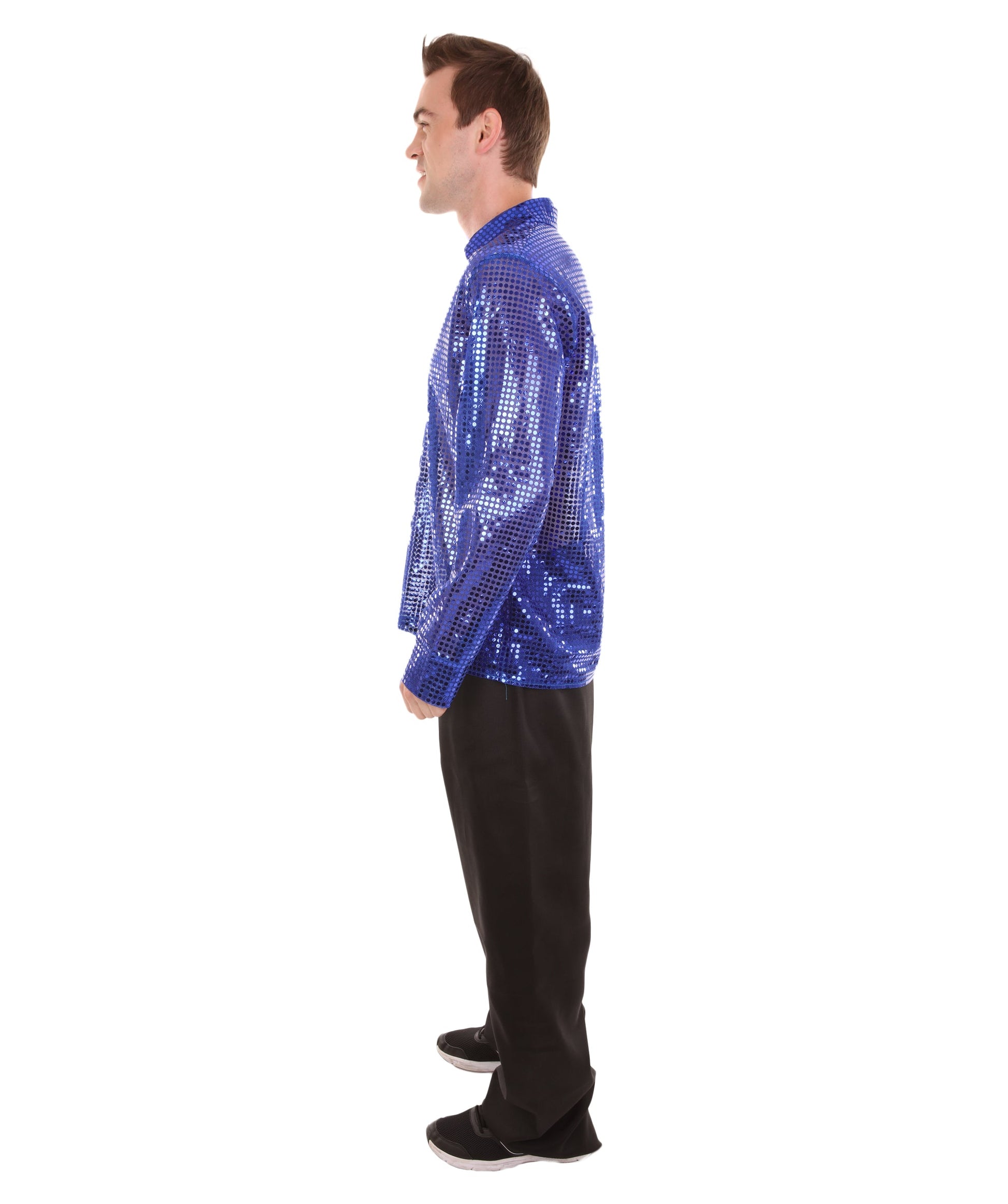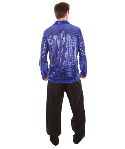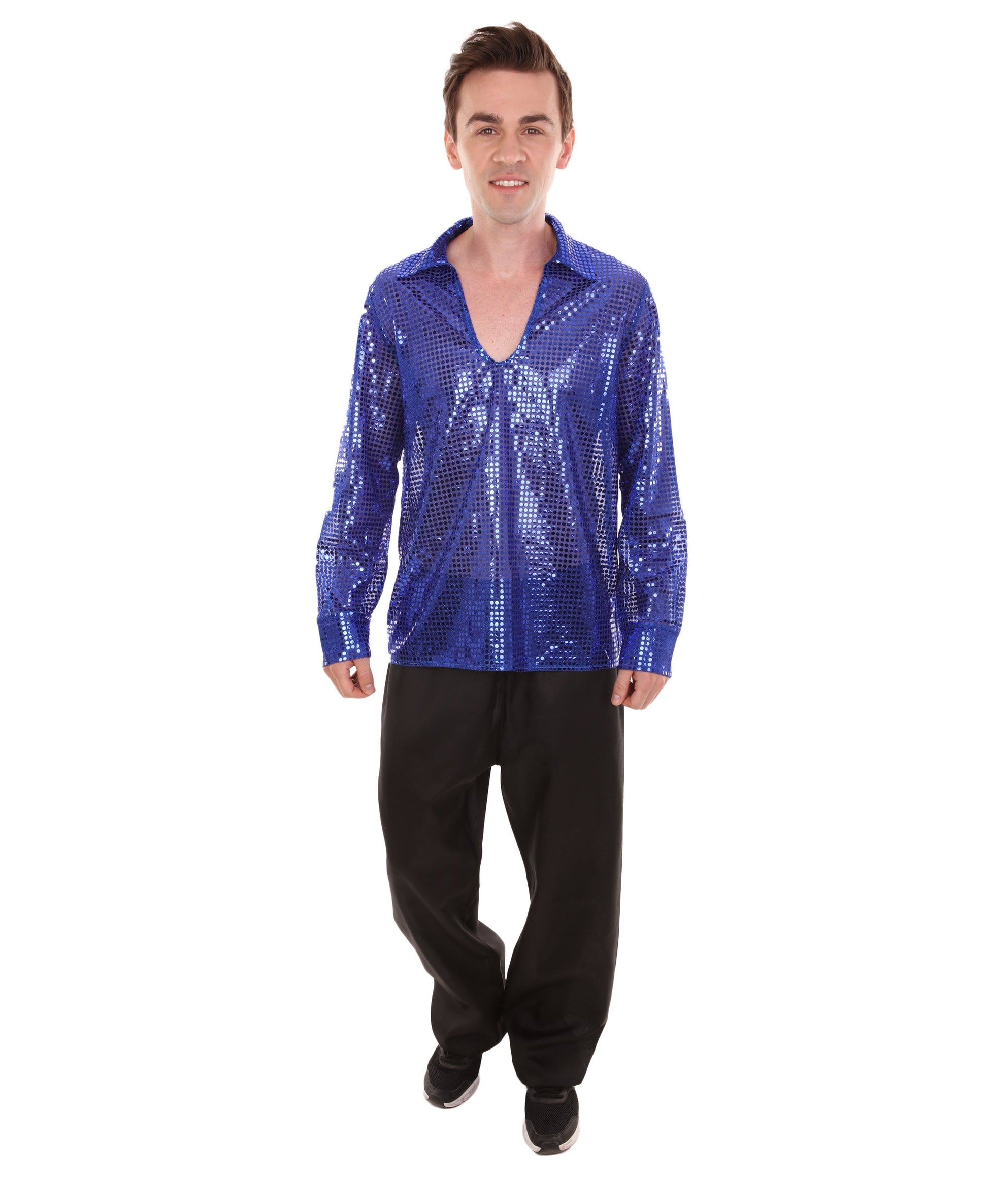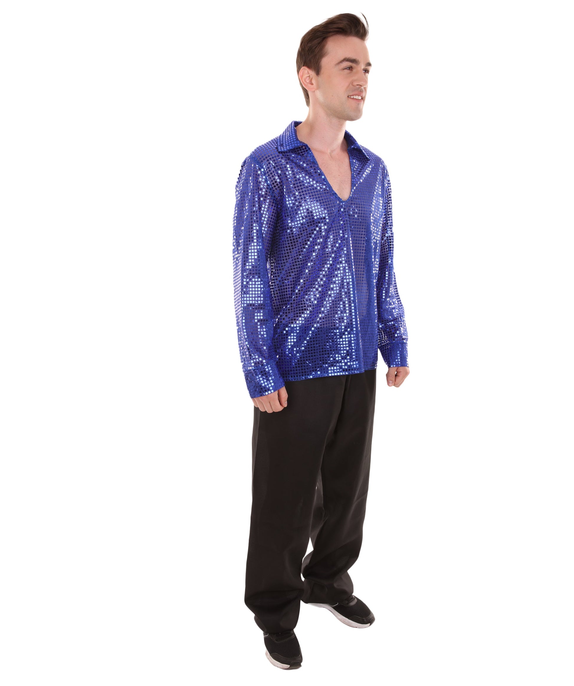 Men's 70's Disco Sequin Shirt Costume | Blue Vintage Costume