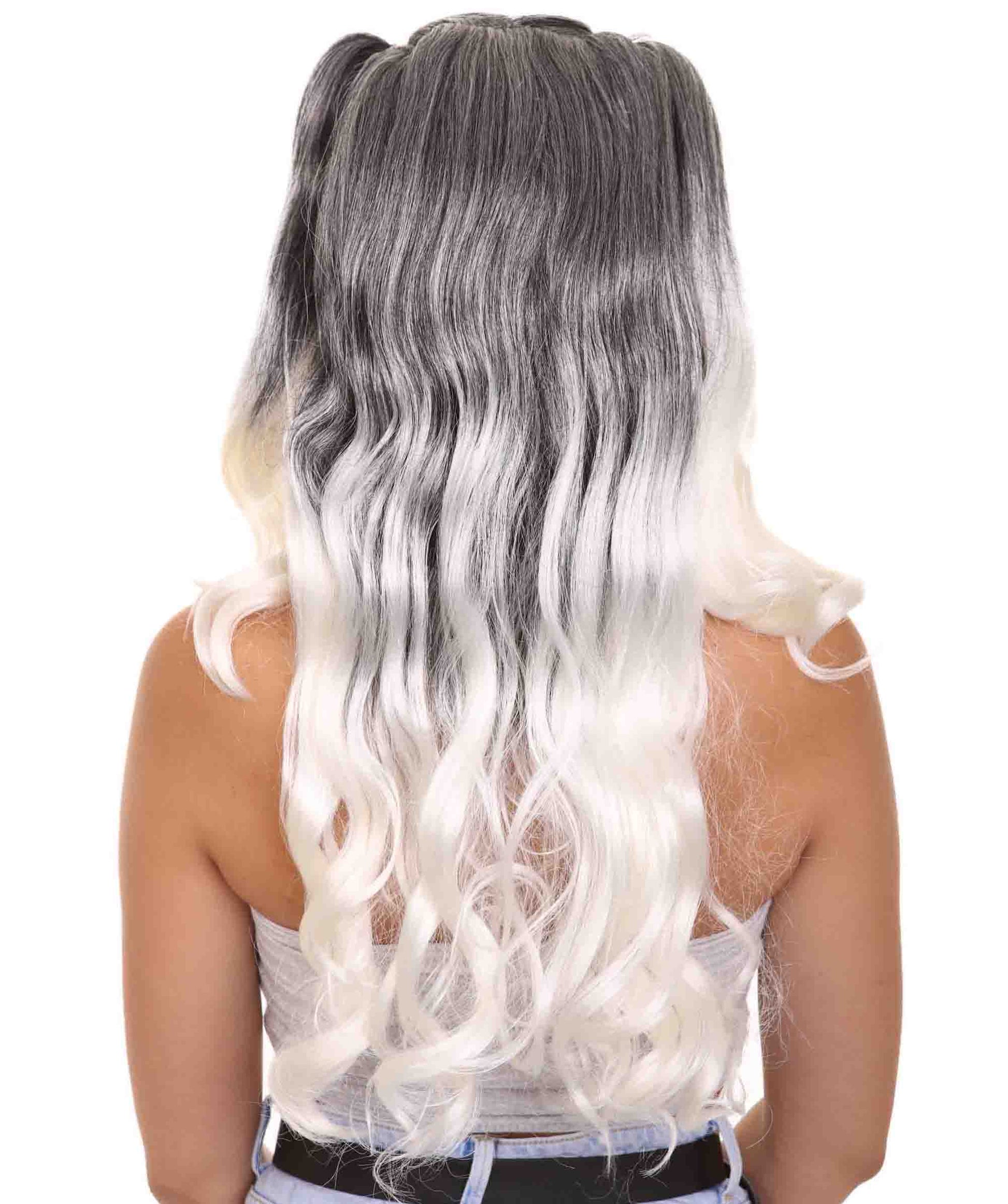 Make a bold statement with this Dolly Womens Wig. This stunning wig features two-tone coloring, with one half in a bright and eye-catching color and the other in a complementary shade, creating a unique and dynamic look. The long, wavy locks add a touch of glamour and sensuality, making it a great accessory for any costume or outfit. Made from high-quality synthetic materials, this wonderful and unique wig is comfortable to wear and easy to care for, so you can focus on having lots of fun at your party. An adjustable lining is included with the wig that can be stretched up to 22 inches in diameter to fit adults and kids above 5. Along with cosplay or Halloween events, you can easily use this wig in Mardi Gras, theme parties, and Instagram reels.