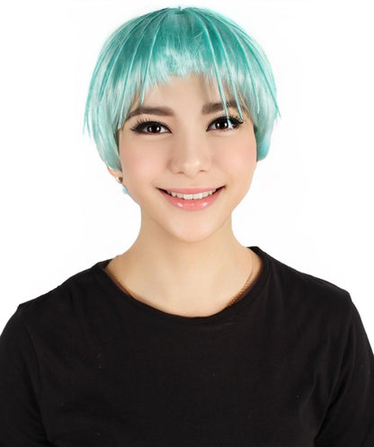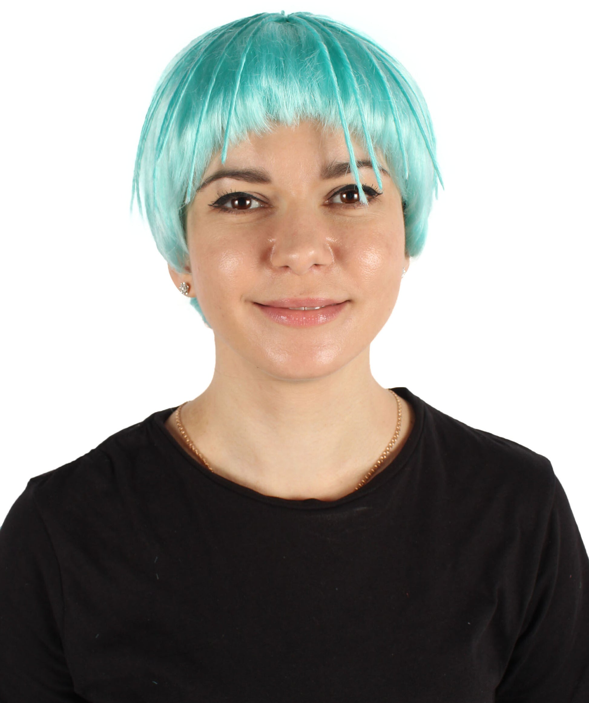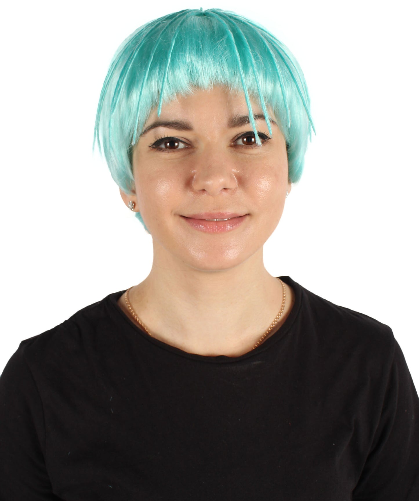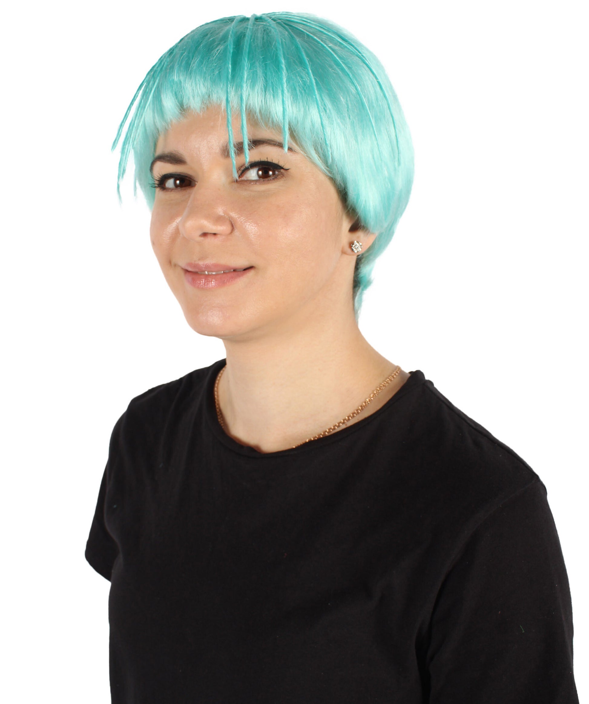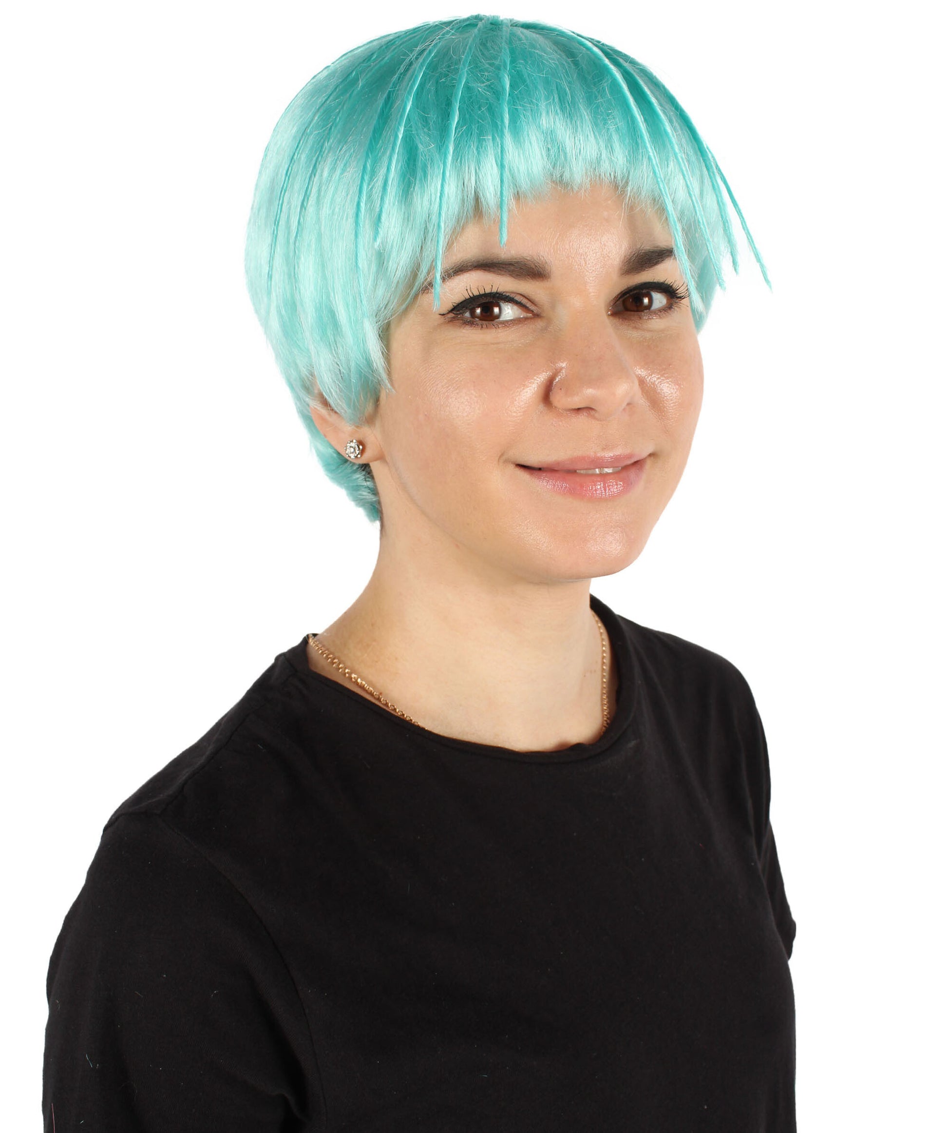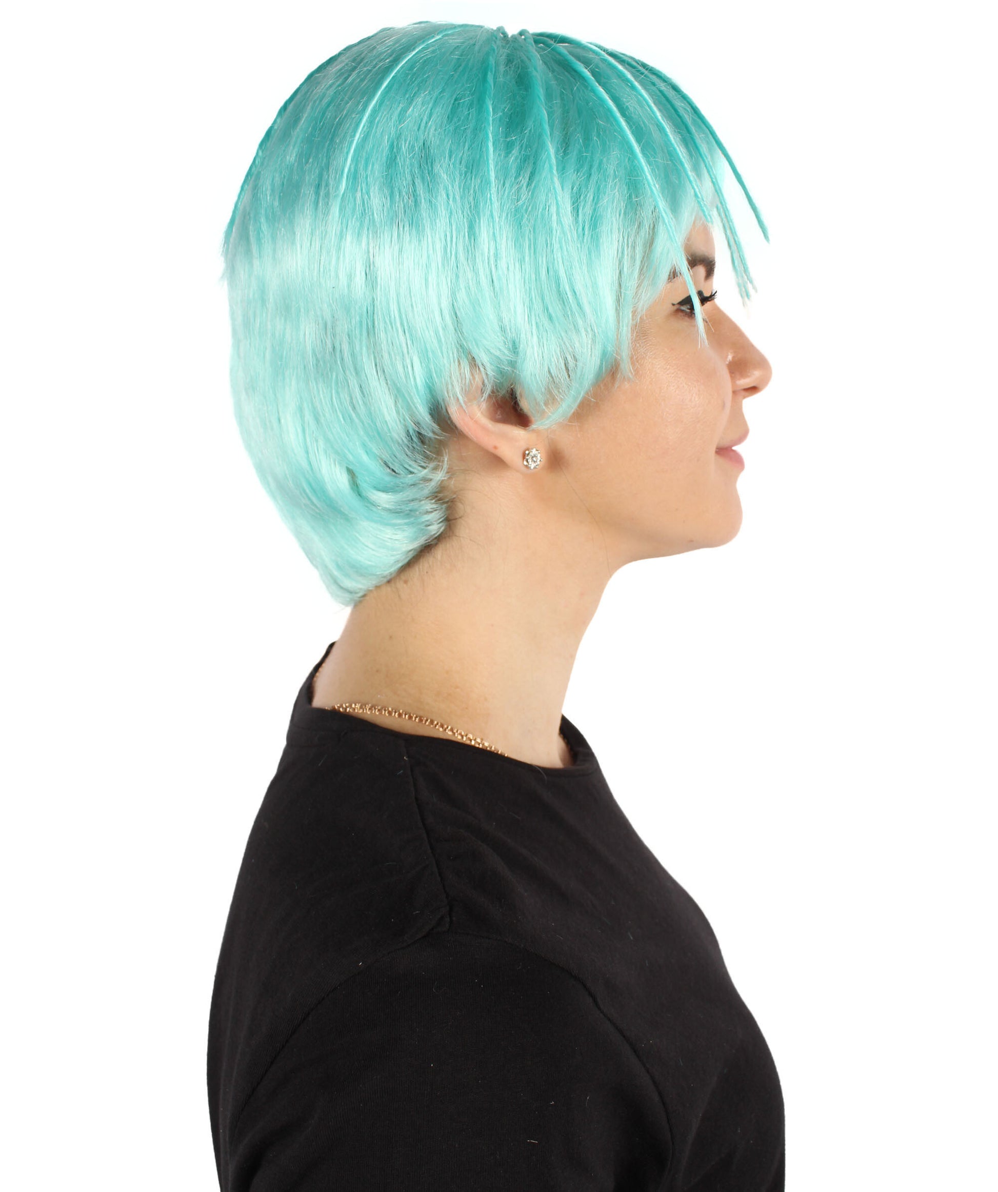 HPO Adult Women's Drag Race Performer Short Blue Wig| Perfect for Cosplay| Flame-retardant Synthetic Fiber