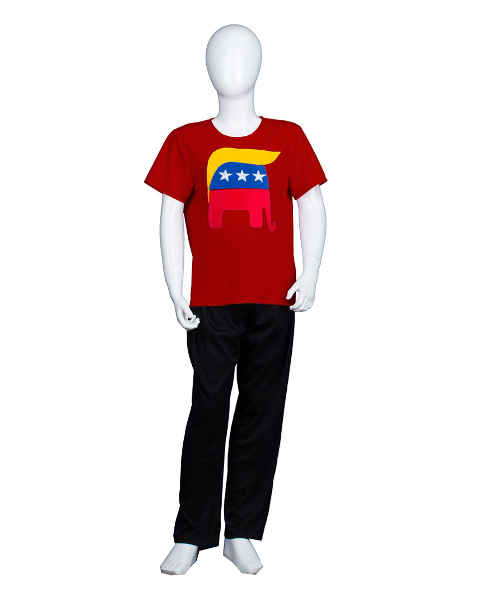 Are you planning to do something distinctively awesome at the upcoming cosplay party you attend? Check out this cool t-shirt costume. This is a very comfortable fit for kids that comes in red with an elephant president logo imprinted on it. The hairstyle impersonates one of the most talked-about presidents of the USA. To politically support the party you can dress up your kid with this t-shirt. Pants are not included.