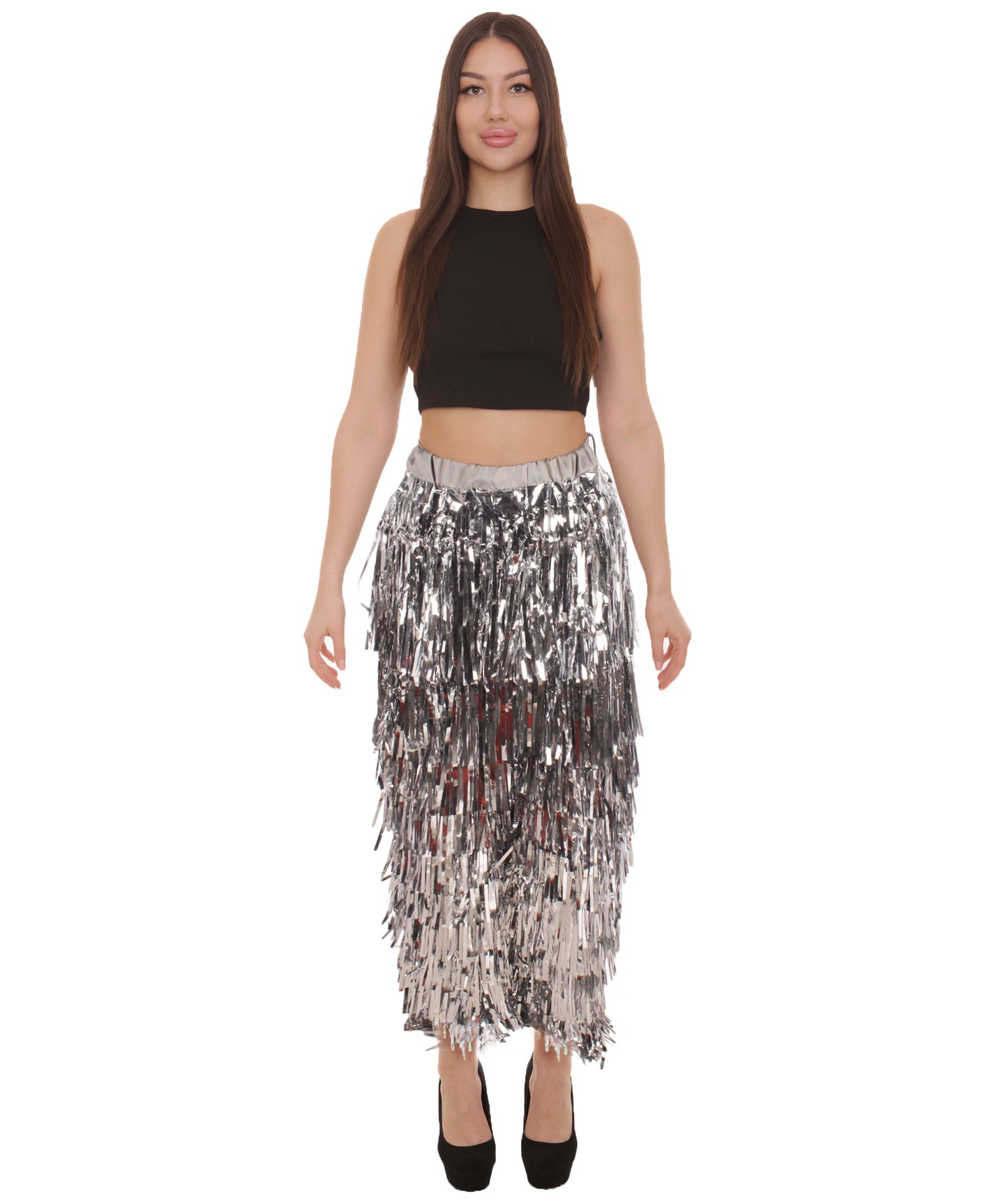 HPO Women's Fancy Metallic Tinsel Pant, Perfect for Halloween, Flame-retardant Tinsel Material