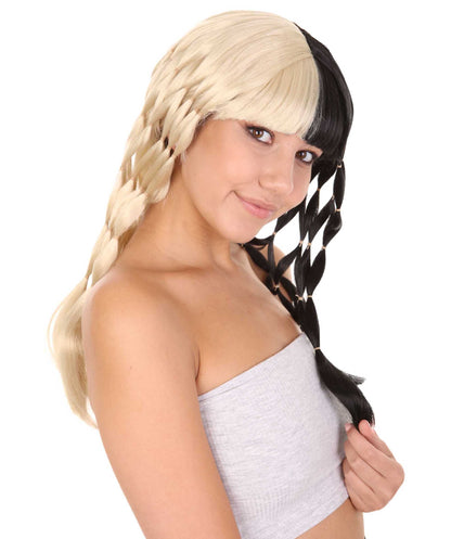 Want to look like your favorite music icon without spending a lot? The black and blonde mixed-color fancy wig for women from HPO is a perfect choice for it! Inspired by a prominent singer, this synthetic wig is the best way to bring your favorite looks to life and stand out at Halloween parties, parades, cosplay competitions, and more. Fancy Style Blonde Black Wig
