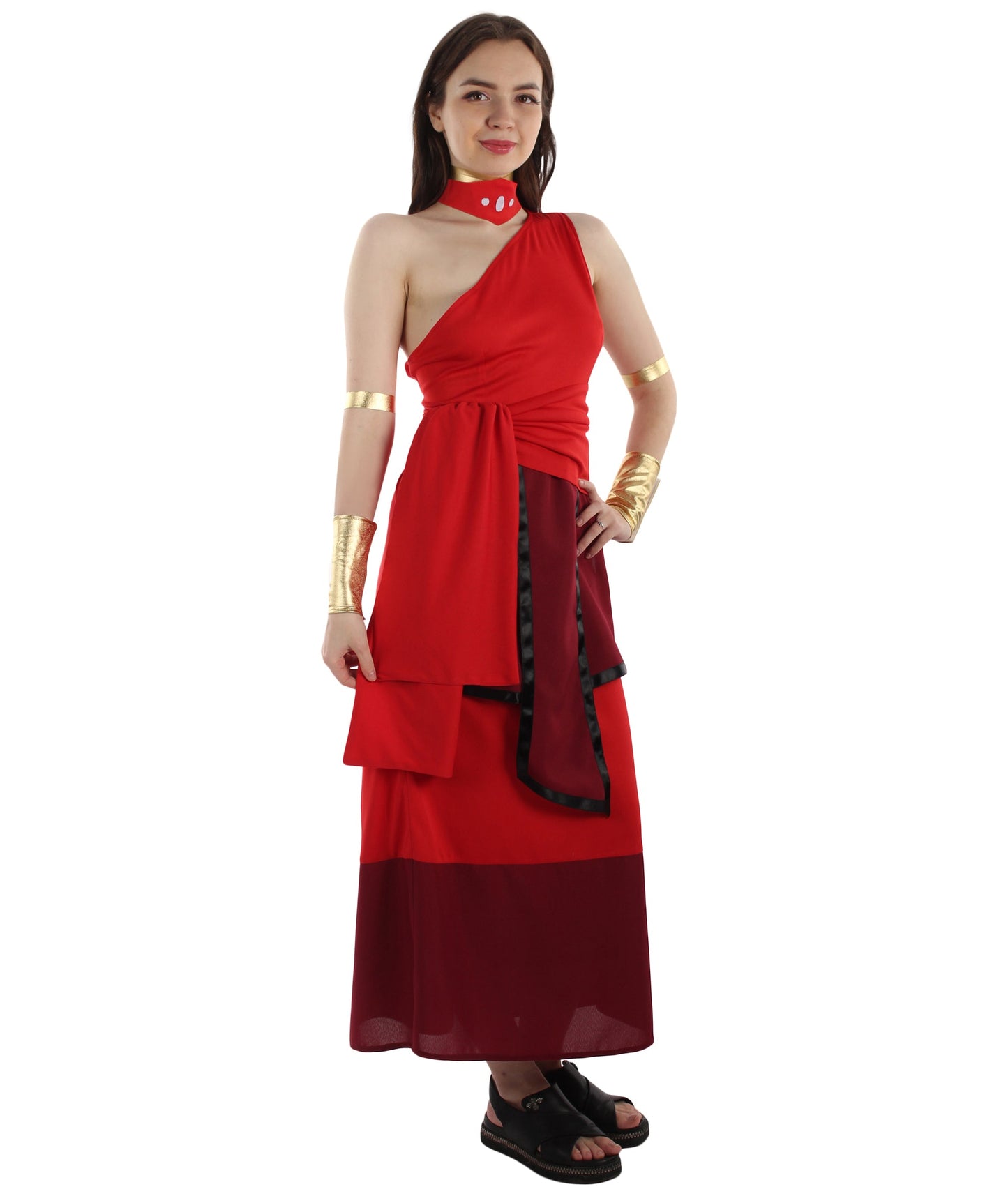 This beautifully made Waterbender Costume perfectly captures the essence of the recognizable Fire Nation look. The beautiful straight-long design lends a touch of grace and sophistication to your appearance, while the flowing and brilliant red fabric symbolizes the strength and power of fire.