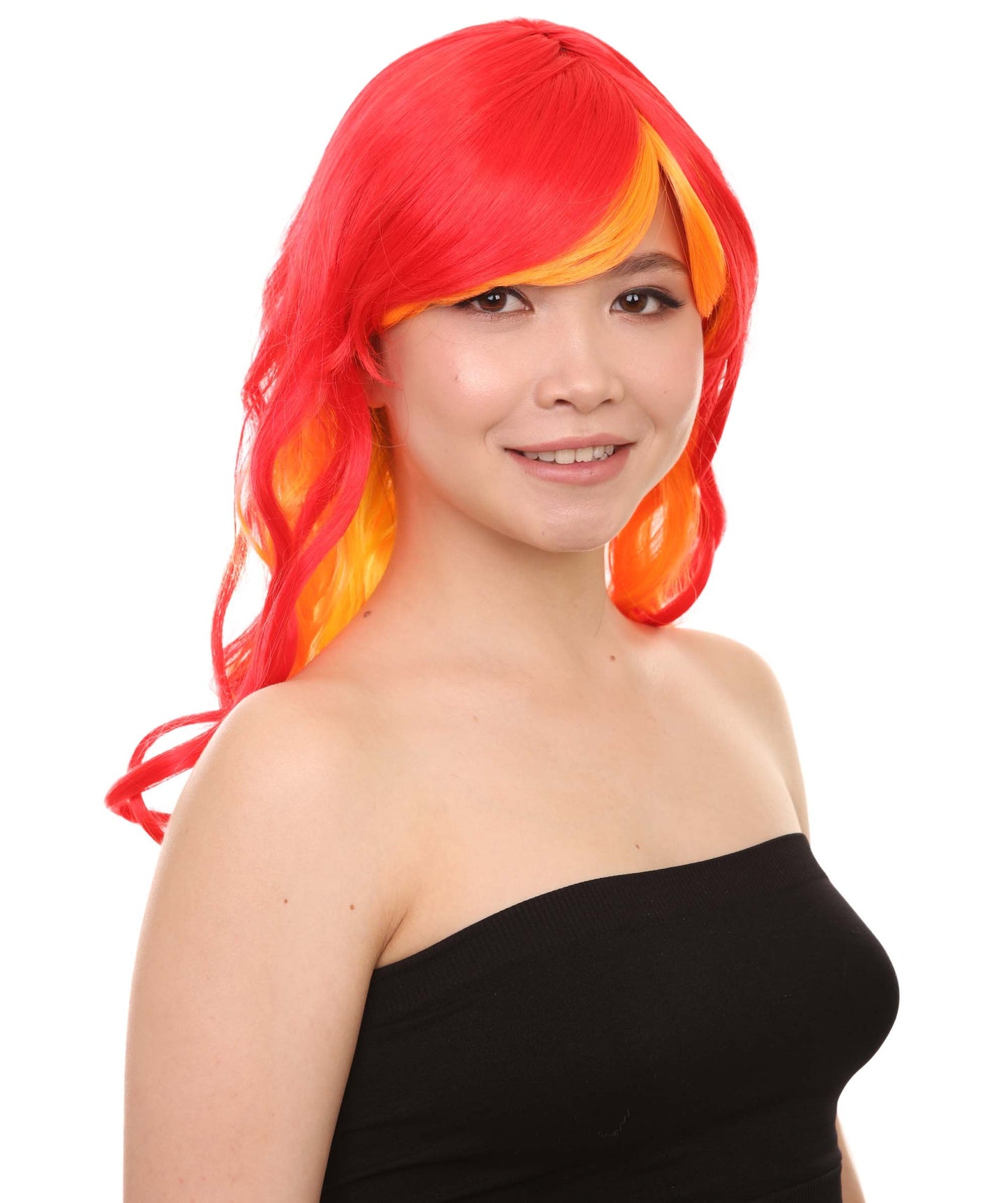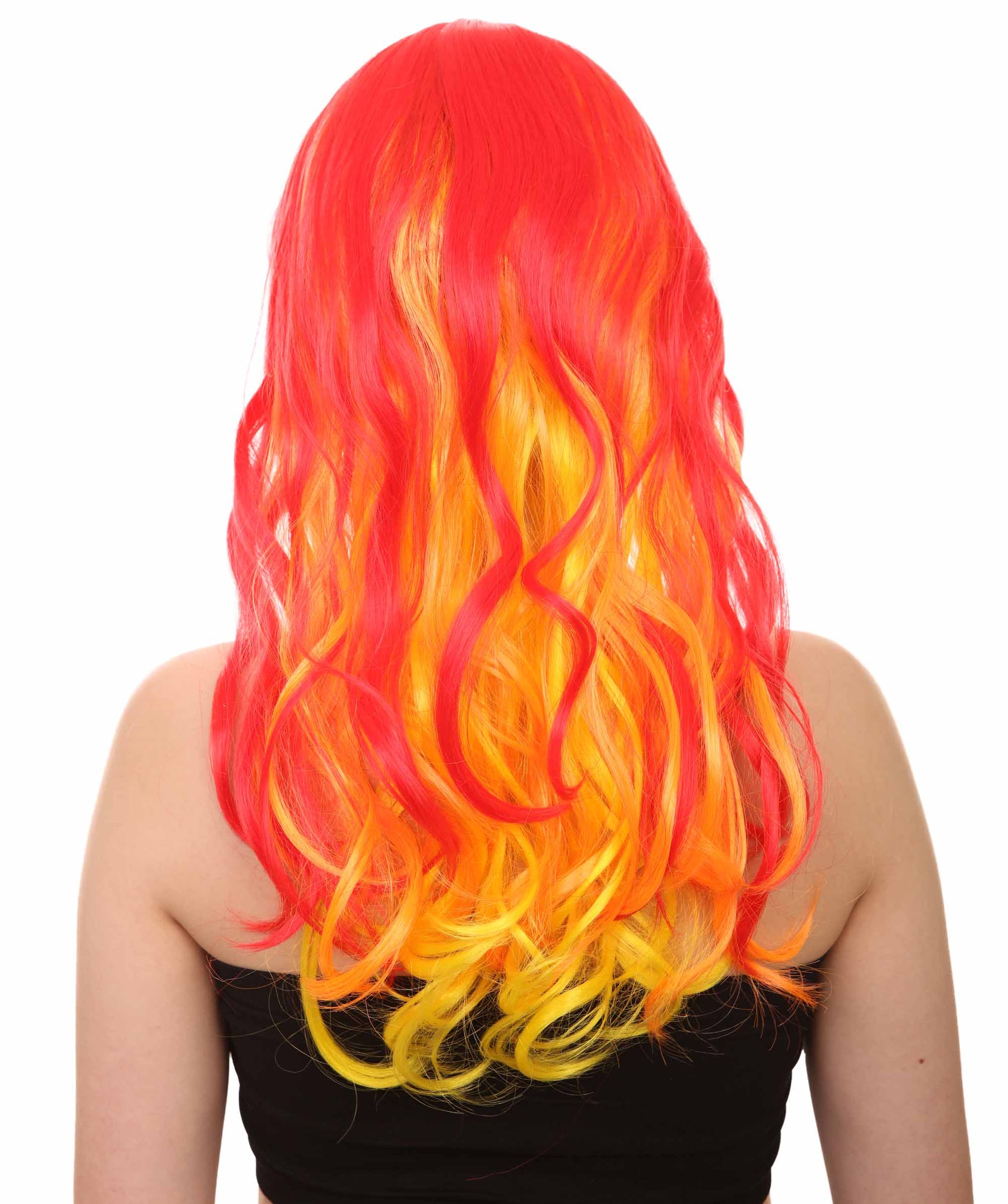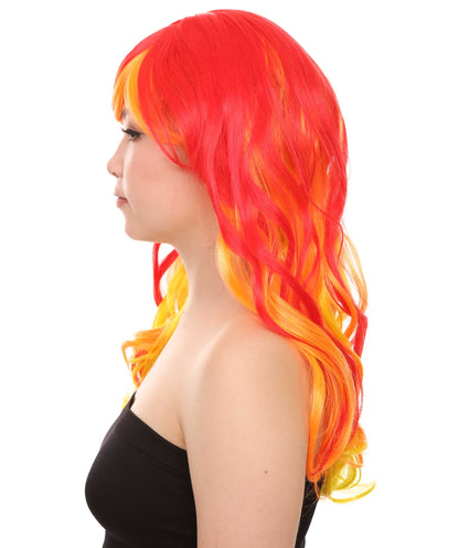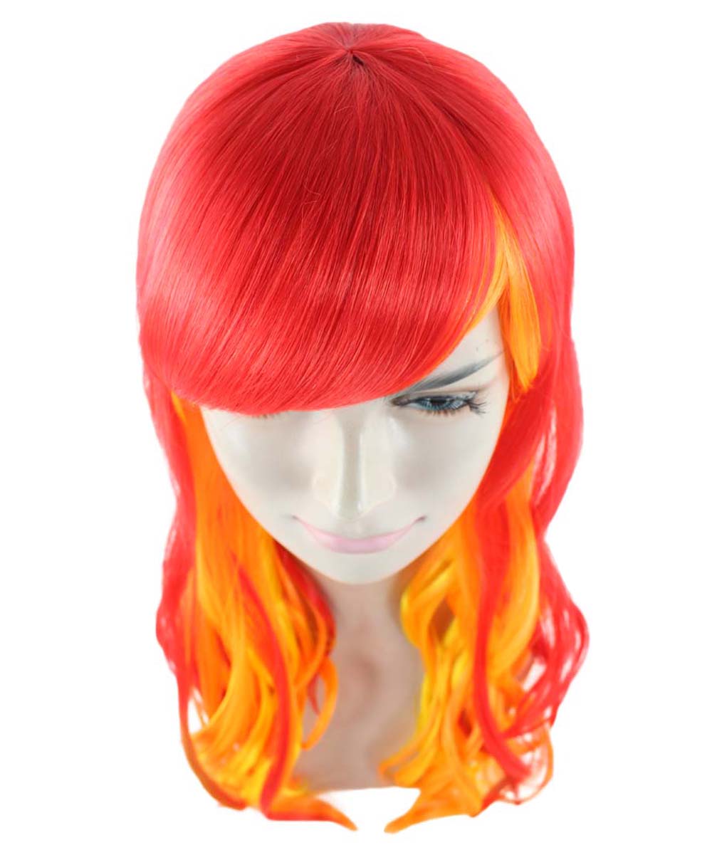 Flame Womens Wig | Fancy Stage Appropriate Fire Orange Event Wig | Premium Breathable Capless Cap