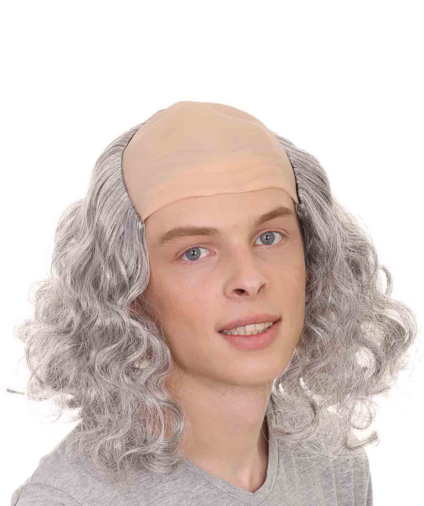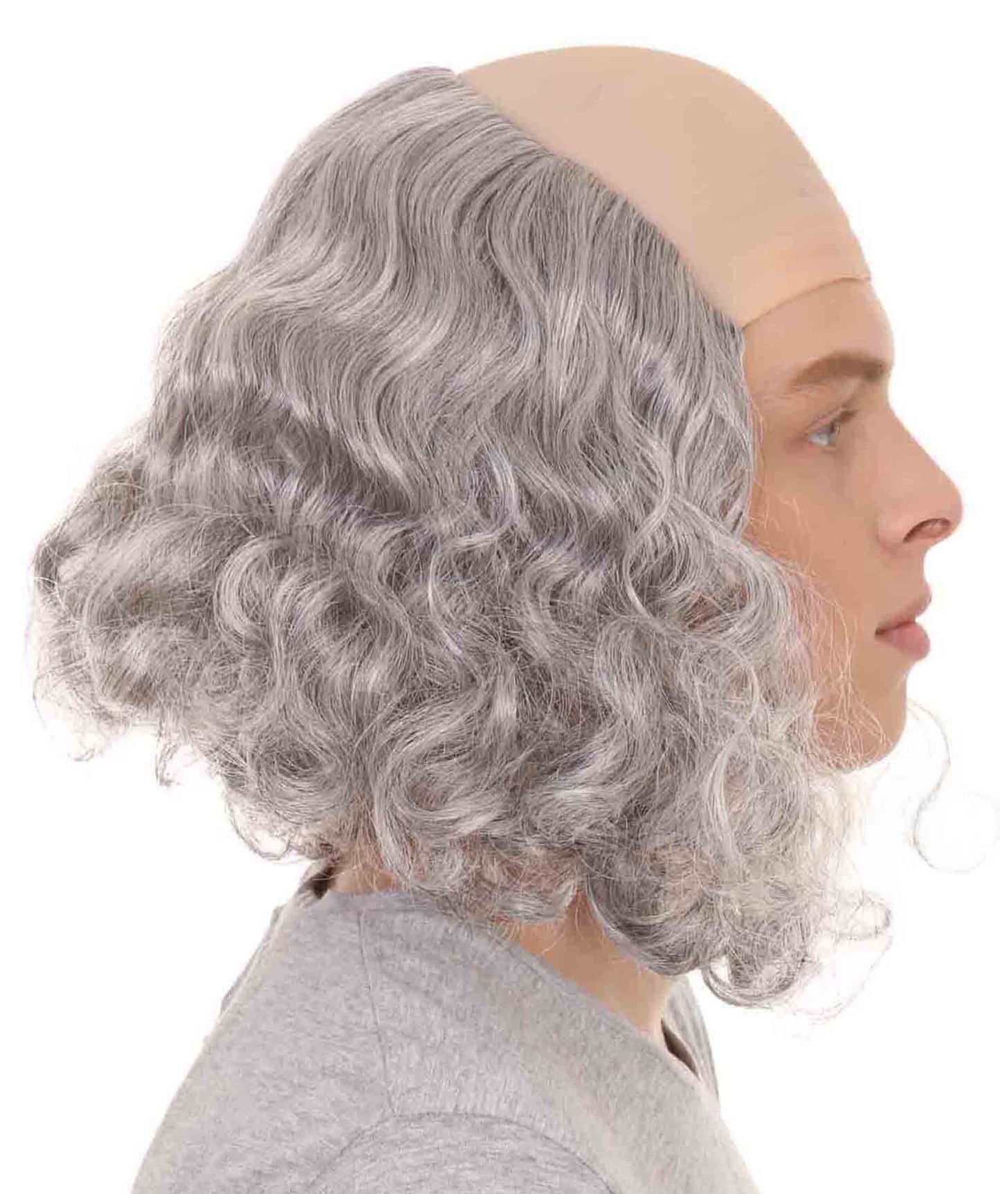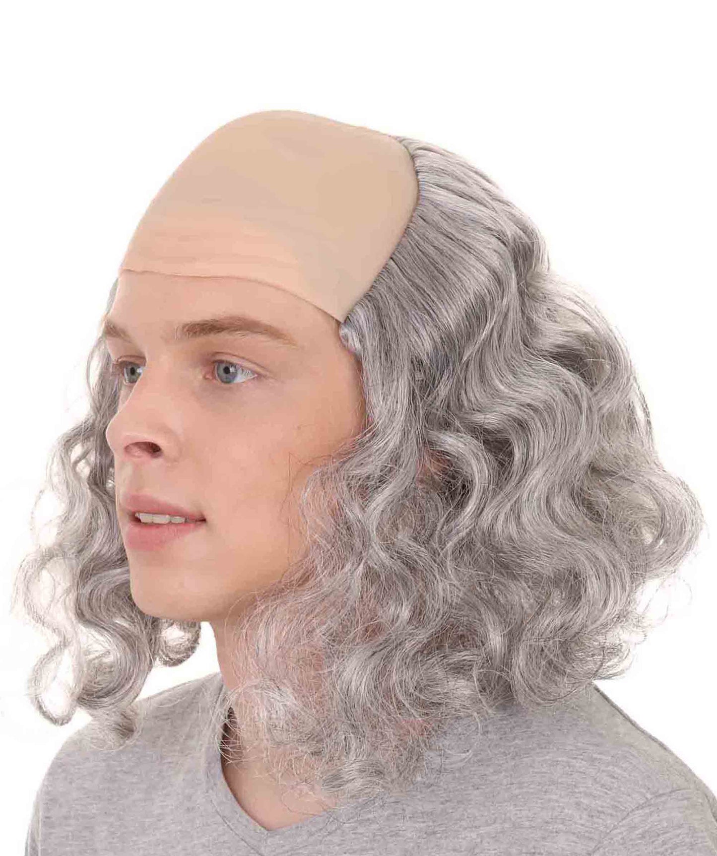 Founding Father Mens Wig | Grey Wig With Bald Cap | Flame-Retardant Synthetic Fiber
