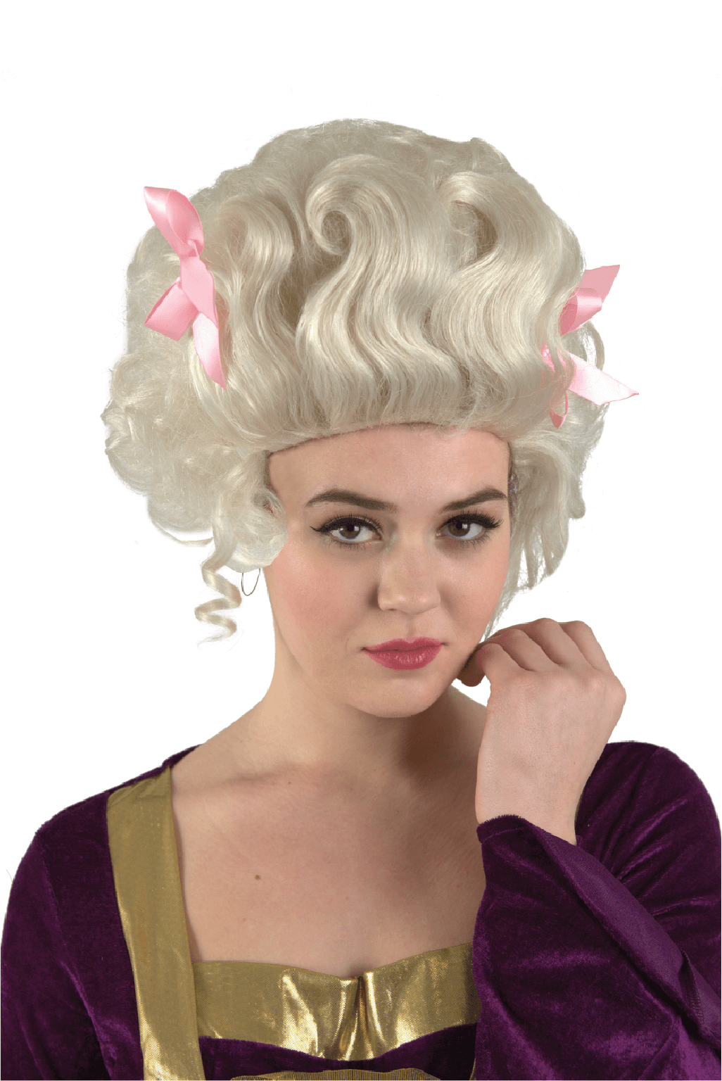 Rule the room in this fanciful updo. Complete with ribbons and curls, this wig is fit for a queen. Ideal for Halloween parties, Cosplay events, or theatrical productions