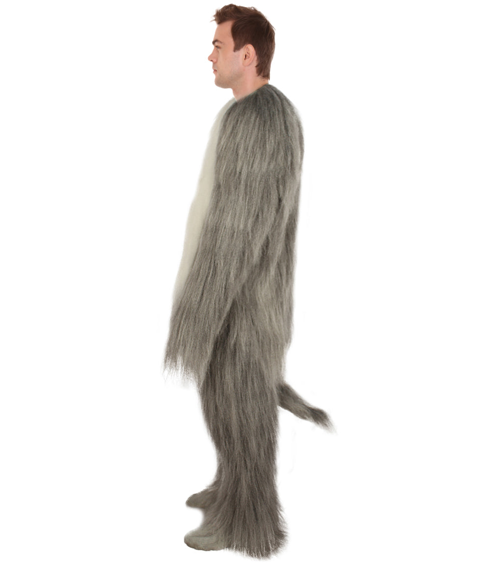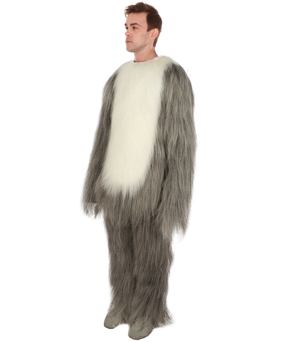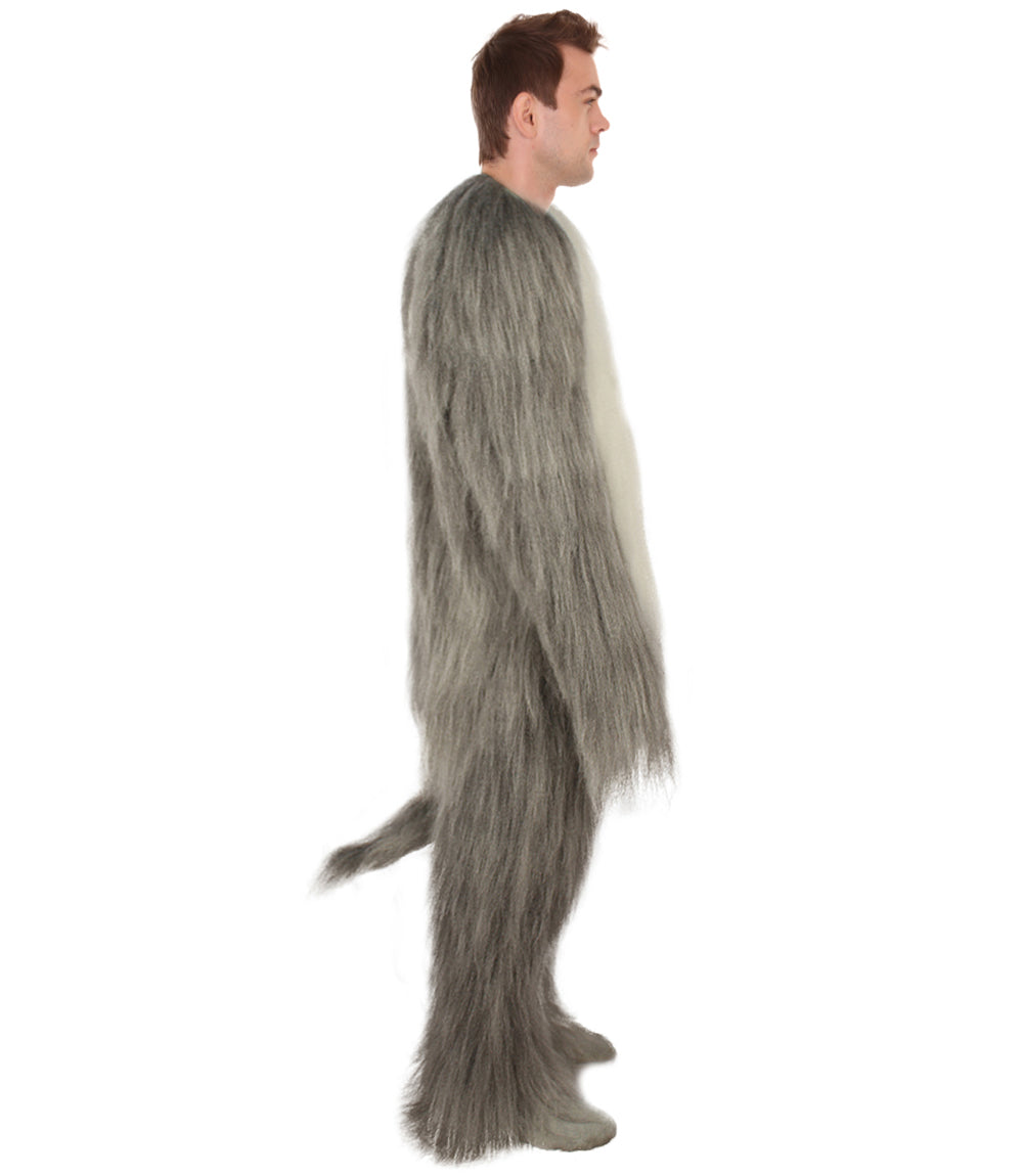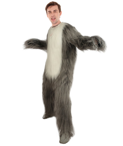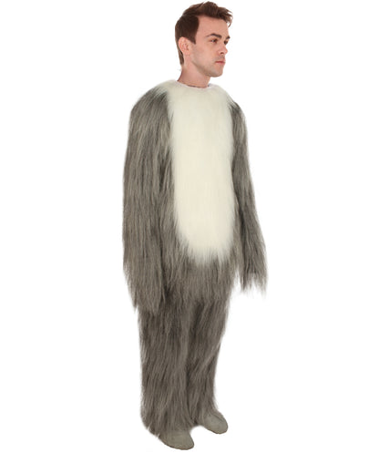 Furry Dog Collection | Men's White and Grey Straight Long Furry Dog Costume with Tail | Fancy Costume