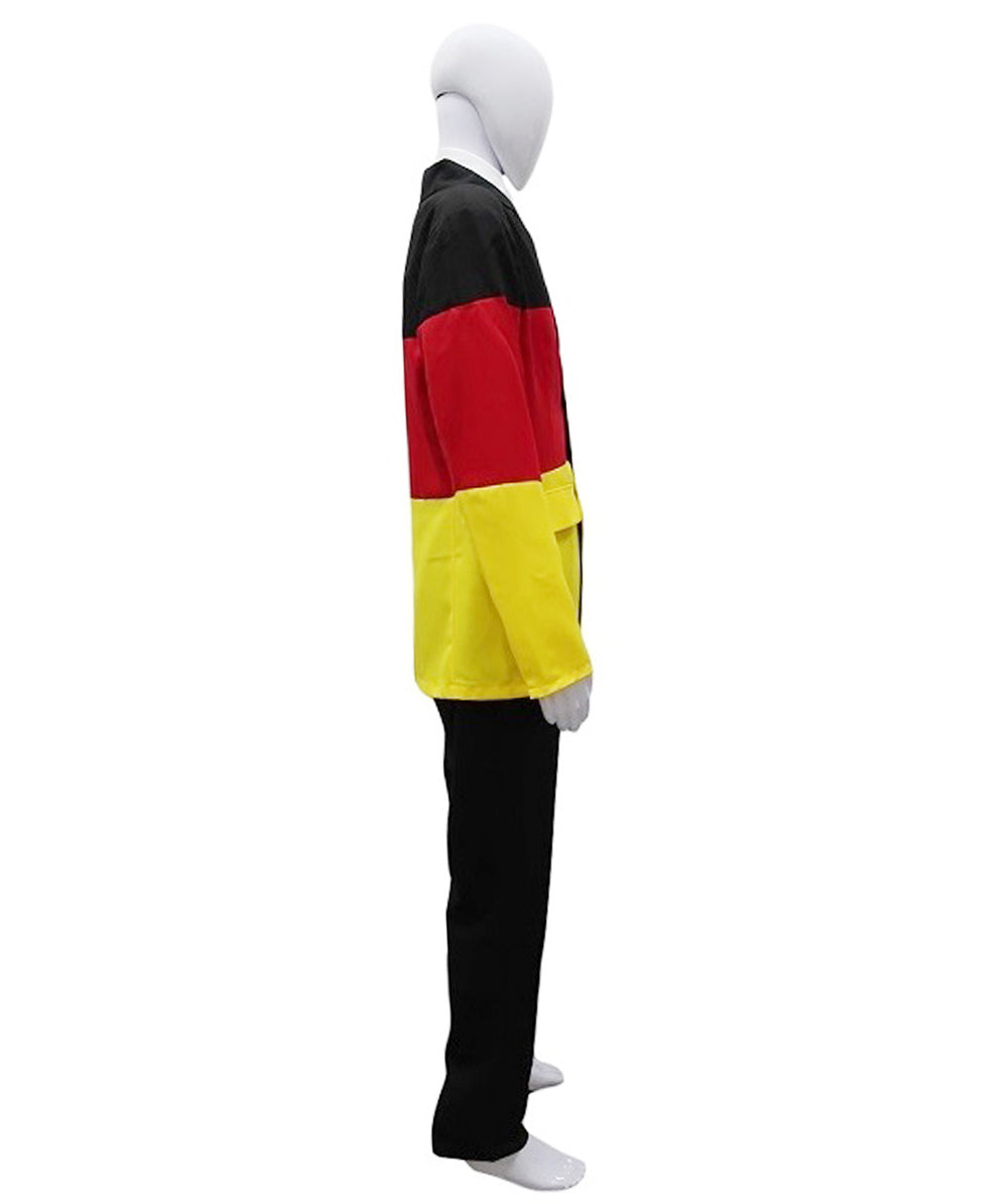 Gear up for a party experience like never before with the Germany Flag Party Suit Sports Costume – your all-in-one ticket to Halloween hilarity, cosplay coolness, and anime con awesomeness! This dynamic ensemble includes a jacket, pants, shirt, and tie, giving you the perfect blend of sporty flair and German pride.