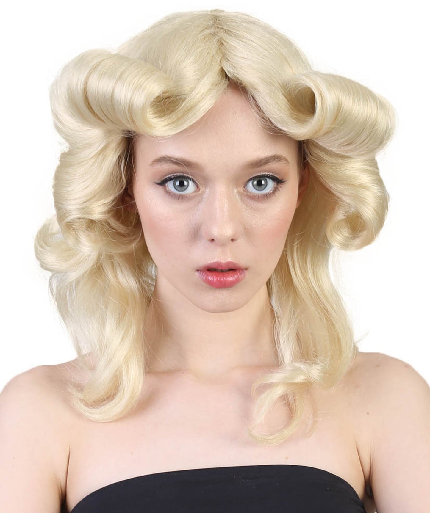 If you are looking for the perfect wig to make a statement at your next Halloween or party, look no further than the Fancy Blonde Long Curly Goddess Wig! This wig is suitable for those who want to add a touch of glamor and sophistication to their costume. The blonde color of the wig will give you a goddess aura to the entire look.