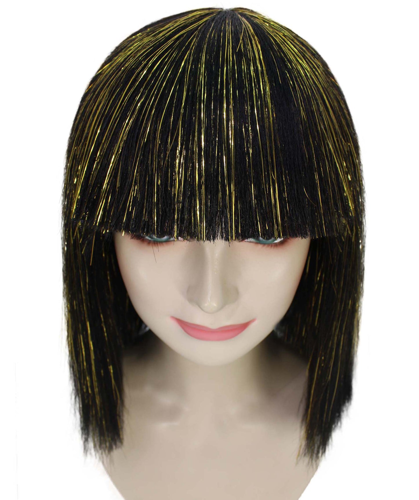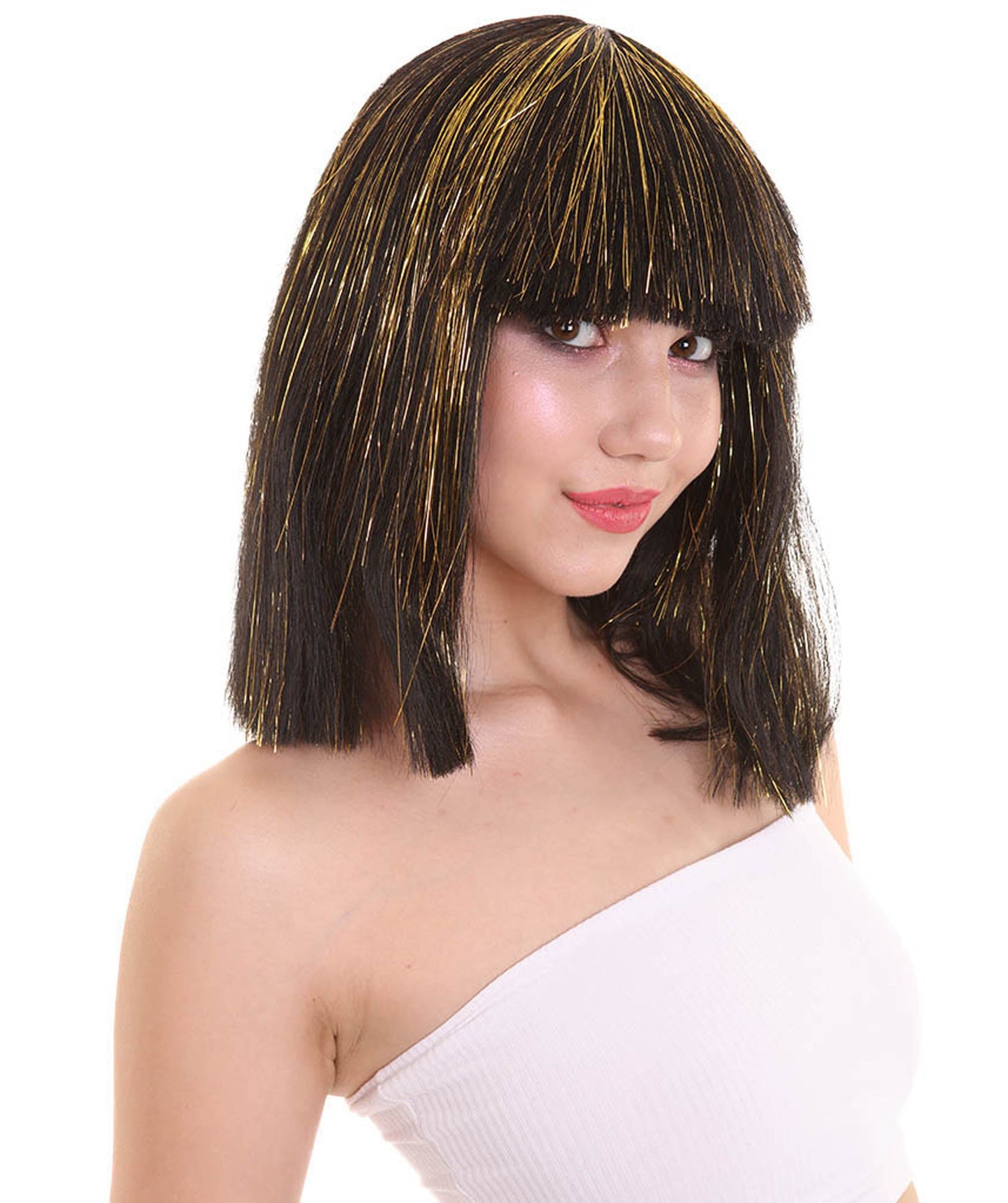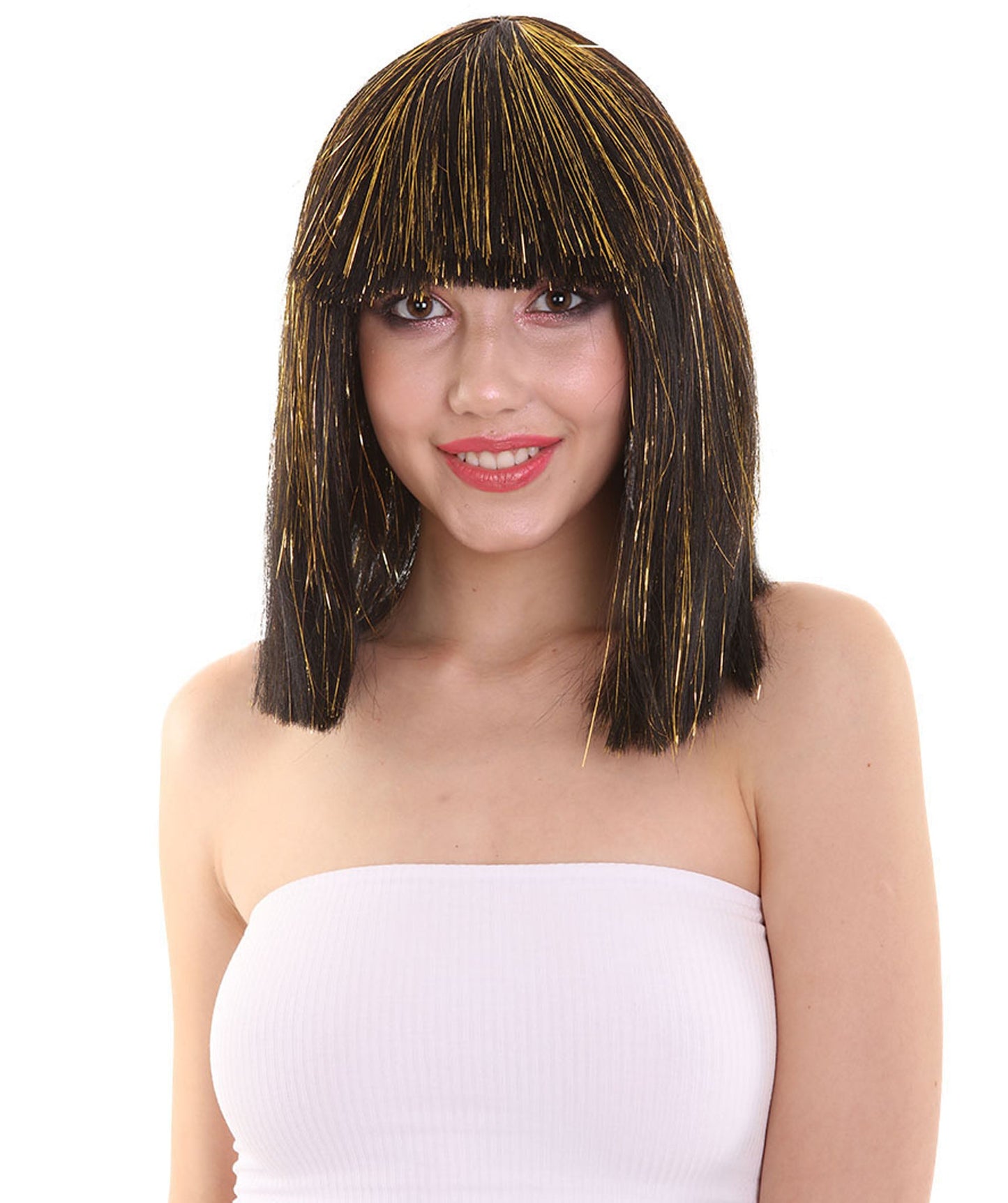 Cleopatra costume with Gold Bob Tinsel Wig Highlights | Halloween Rave Haircut