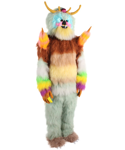HPO Unisex Multicolored Grumpy Furry Monster Costume with Fuzzy Horn| Perfect for Halloween| Flame-retardant Synthetic Fabric